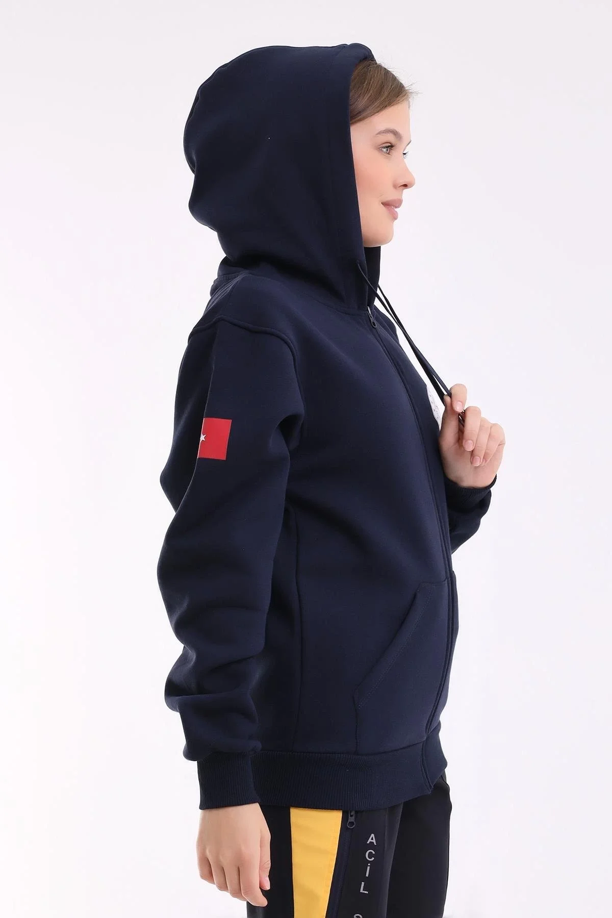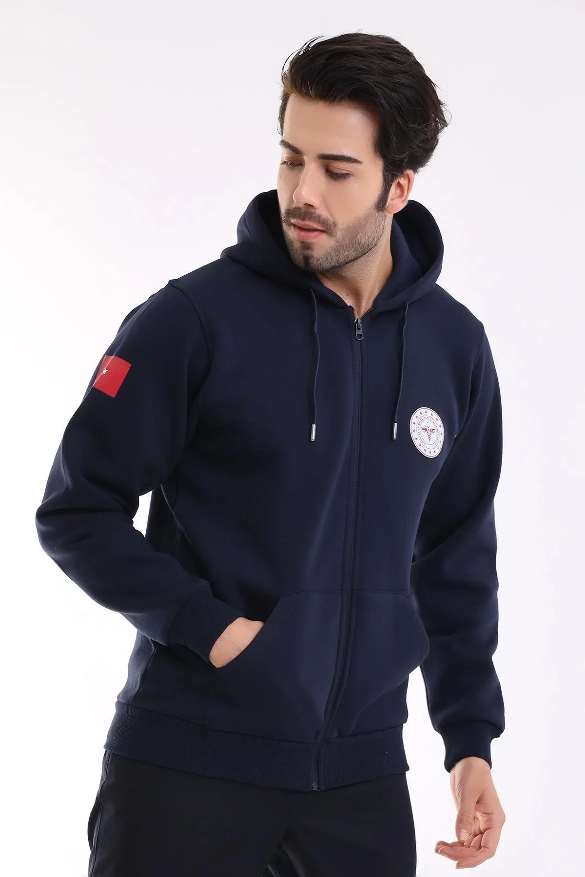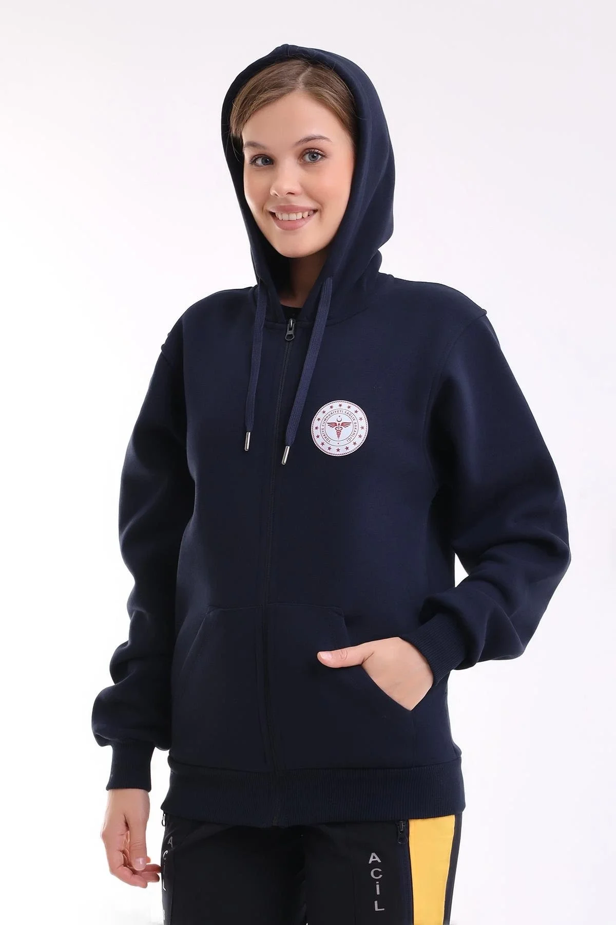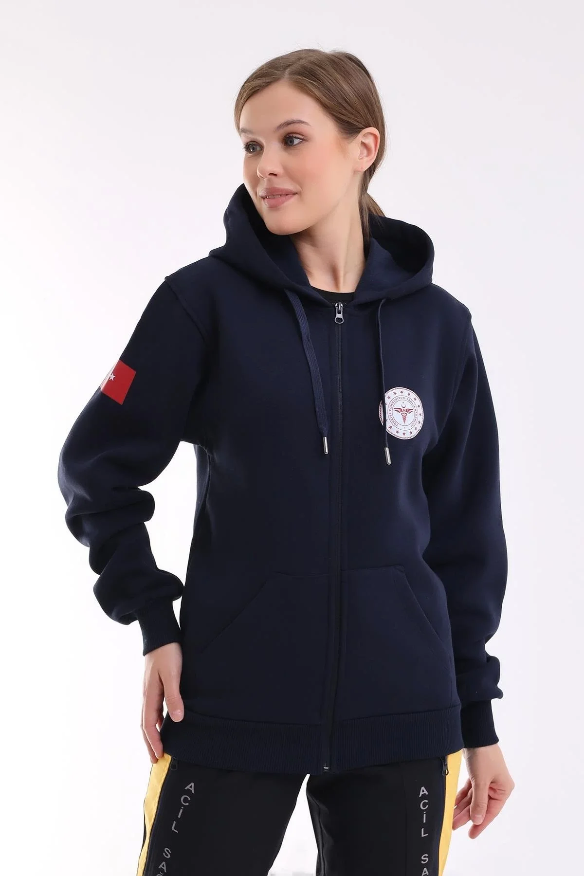 Paramedik Unisex Kapşonlu Hırka - Lacivert