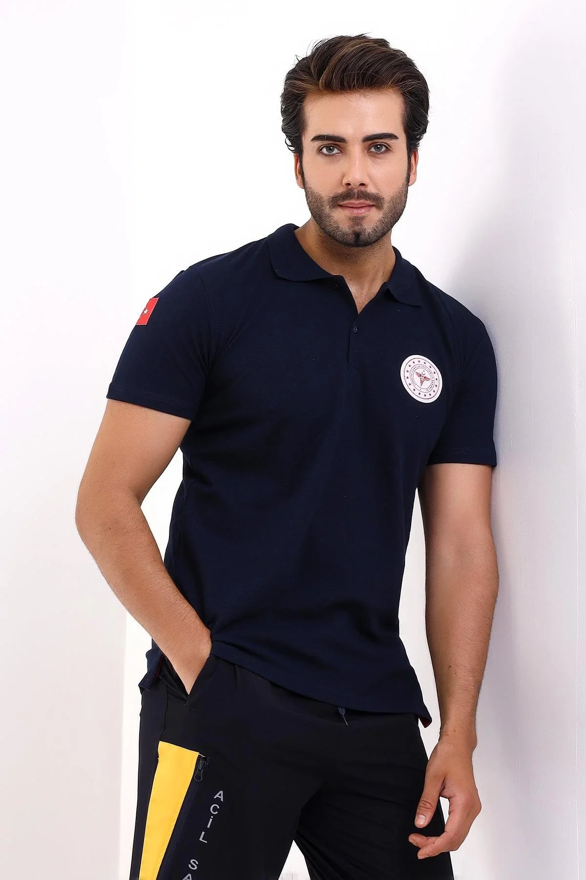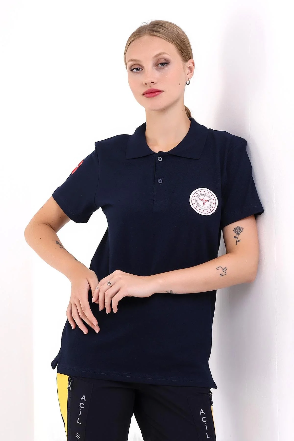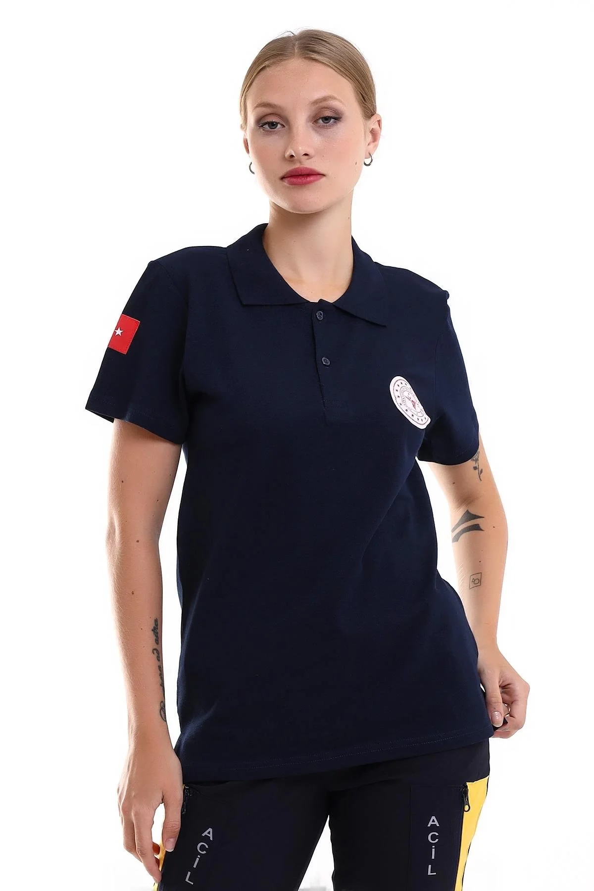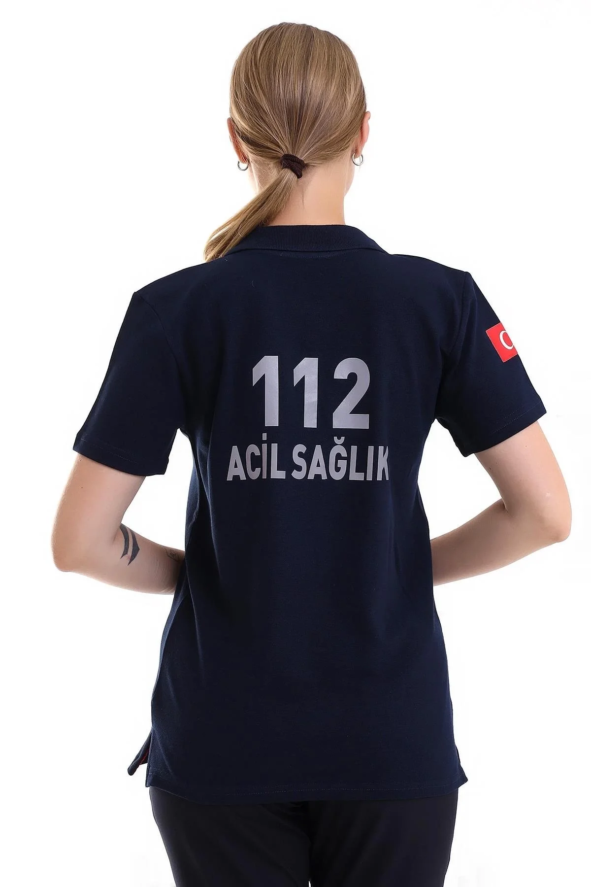 112 Acil Sağlık Yakalı Tshirt Tunik Baskılı - Lacivert