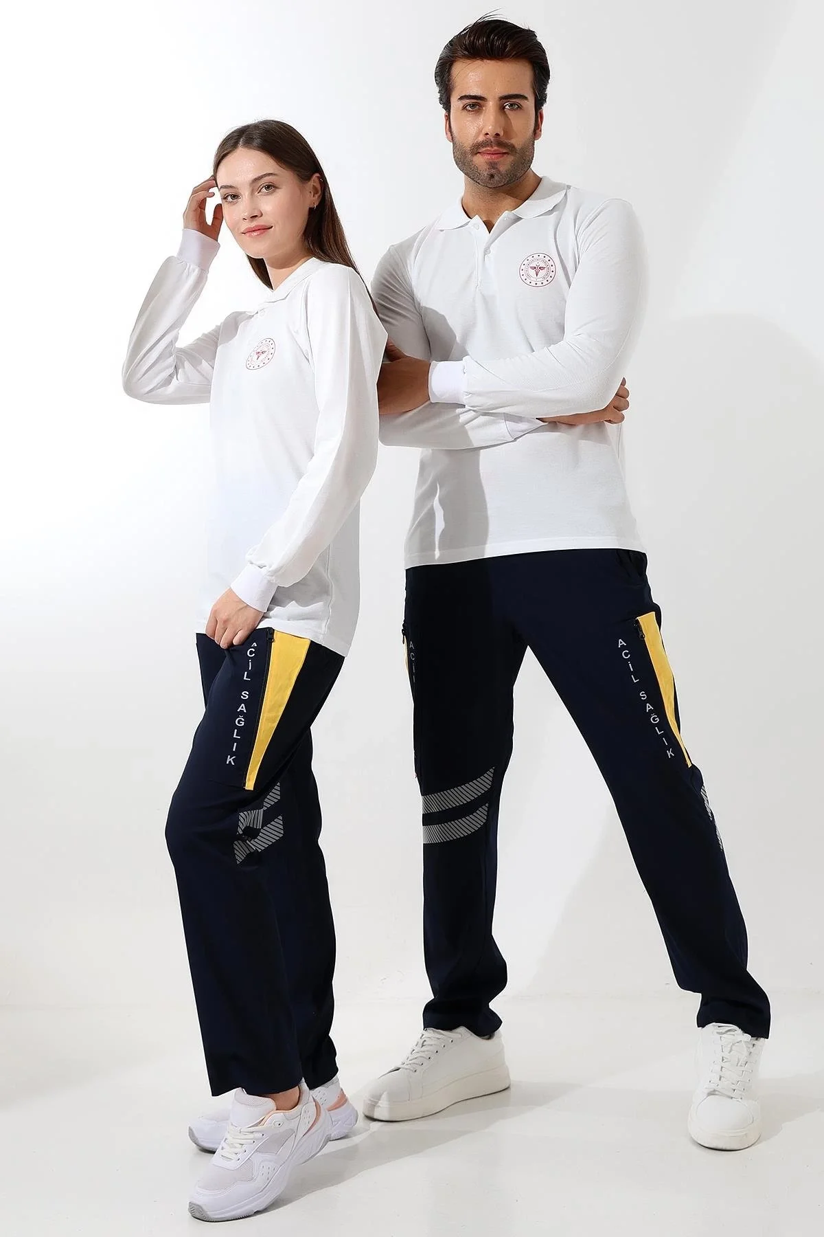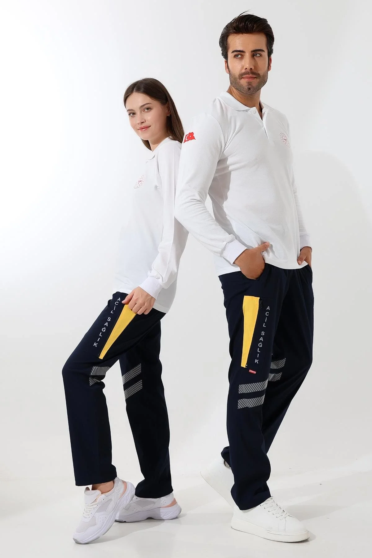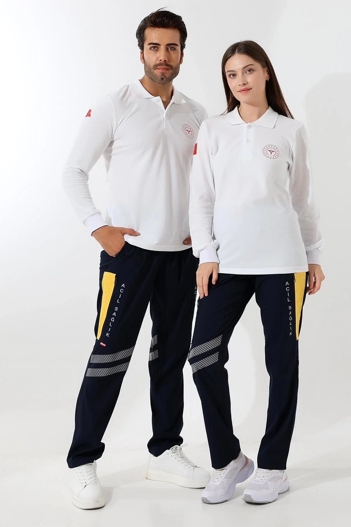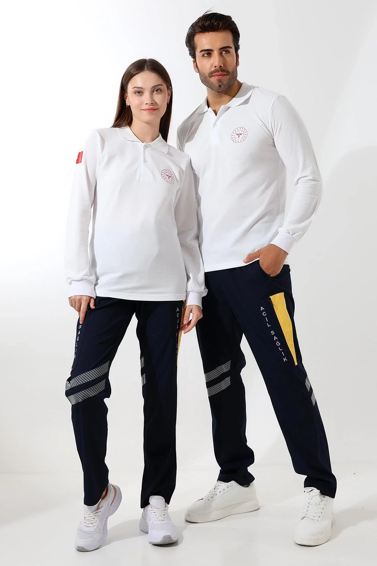 112 Acil Sağlık Yakalı Tshirt Uzun Kol Baskılı - Lacivert