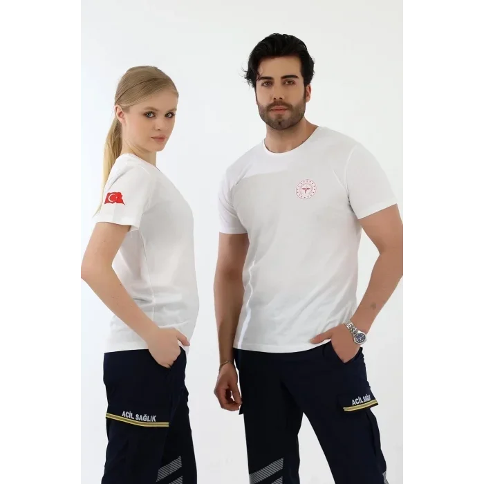 Acil Sağlık Yuvarlak Yaka Penye Kısa Kol Tshirt - Beyaz