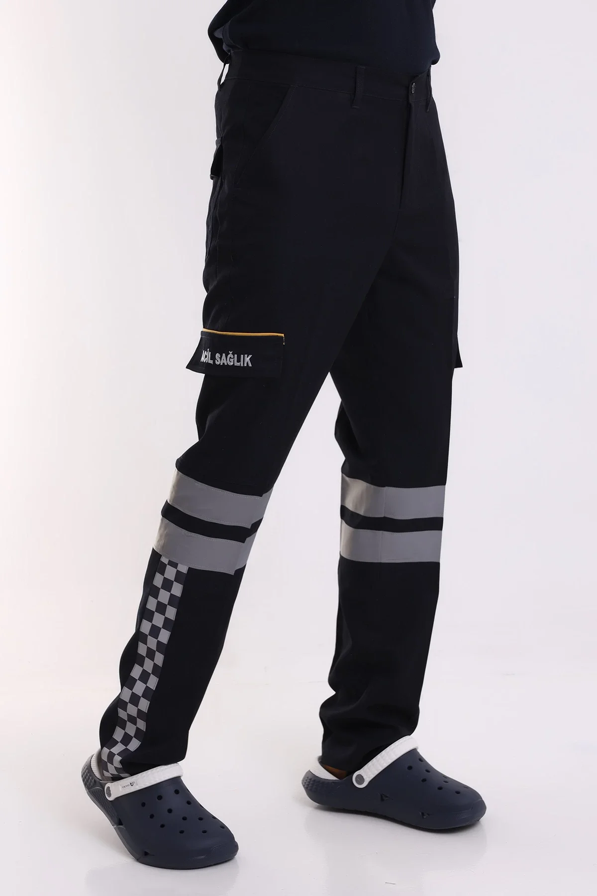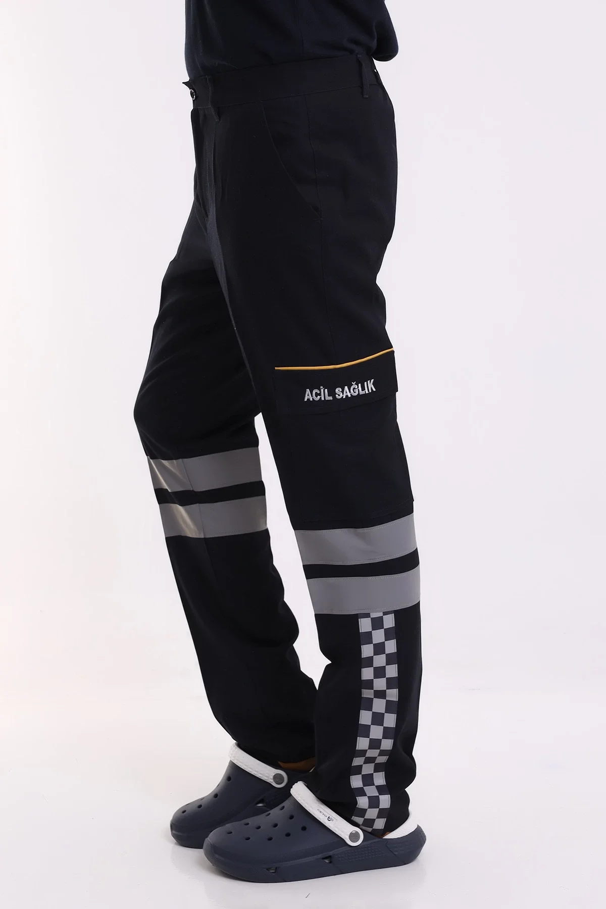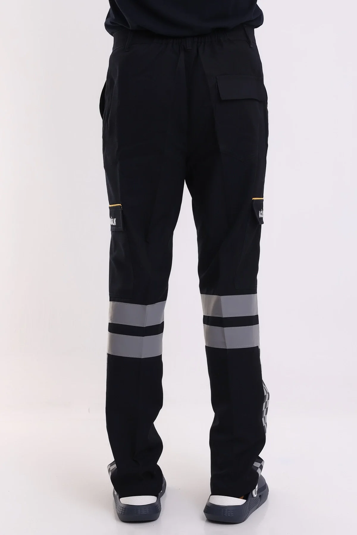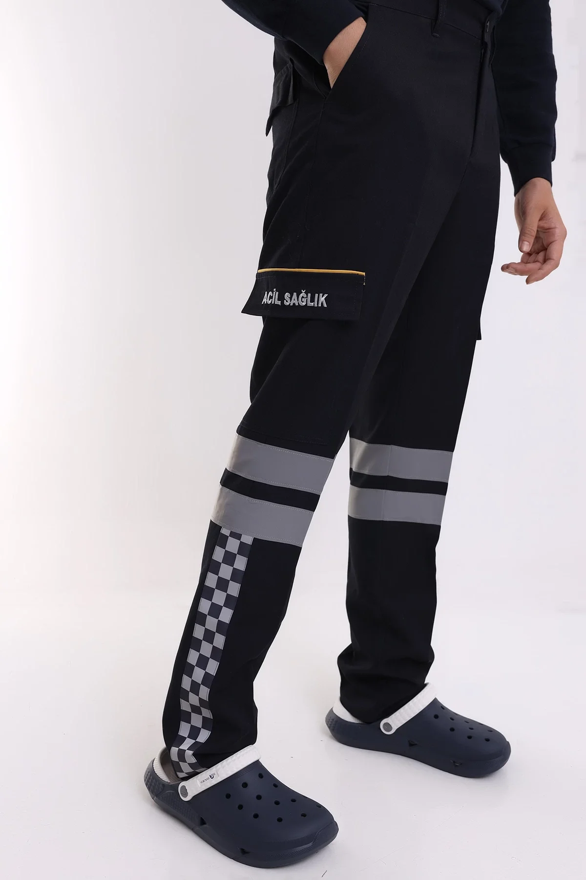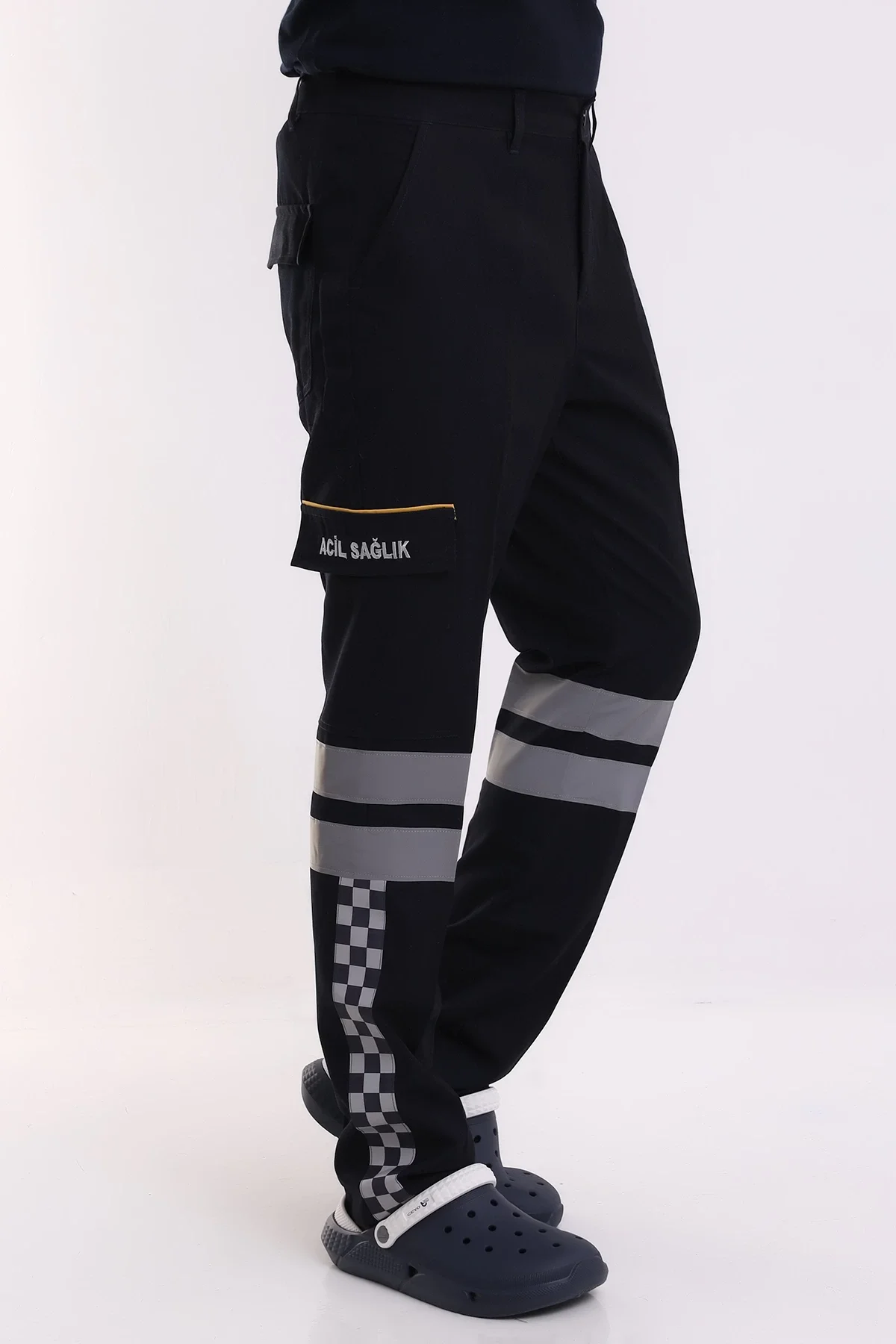 Paçalarda 5 er cm lik iki sıra yüksek yansıtıcı özellikli reflektif şerit bulunmaktadır.Ayrıca sağ ve sol yanda dizden aşağıya damalı reflektif şeritler mevcuttur.