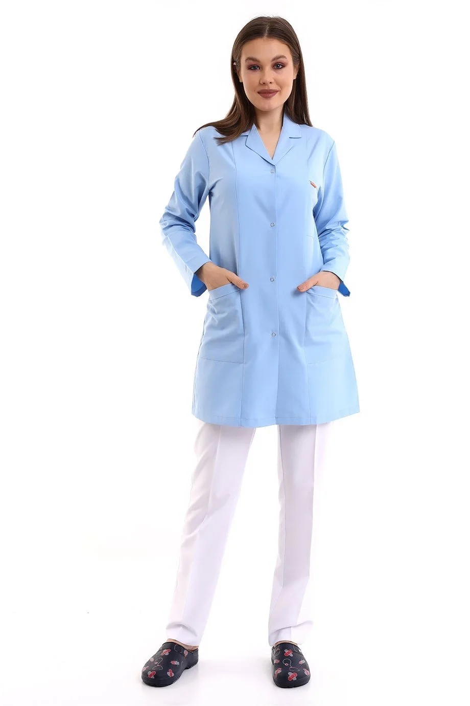 Doktor Öğretmen Kadın Önlük Ara Boy Ceket Yaka - 12 Açık Pembe