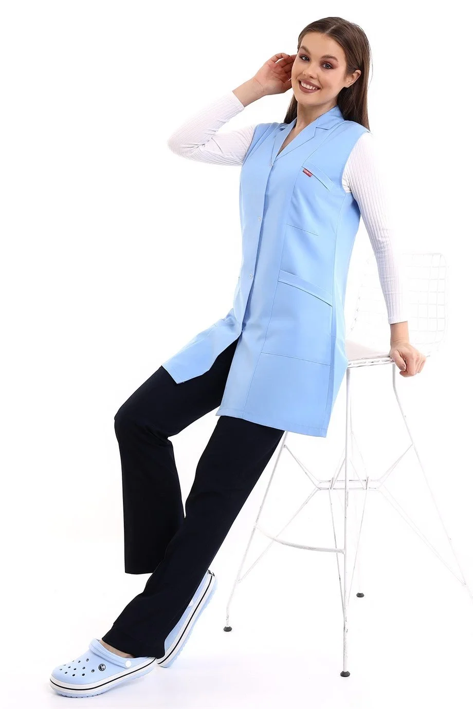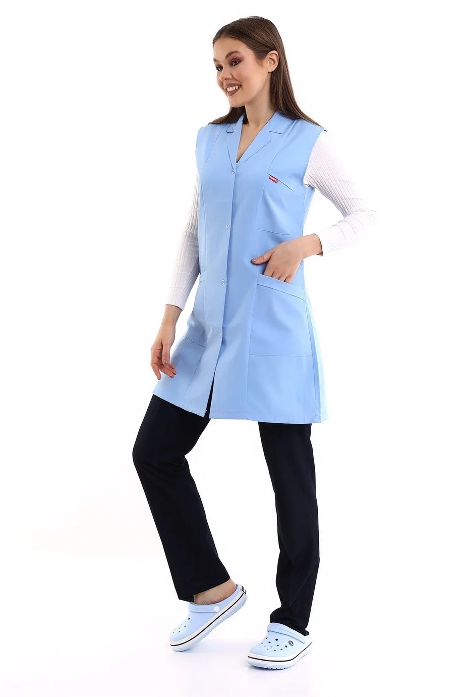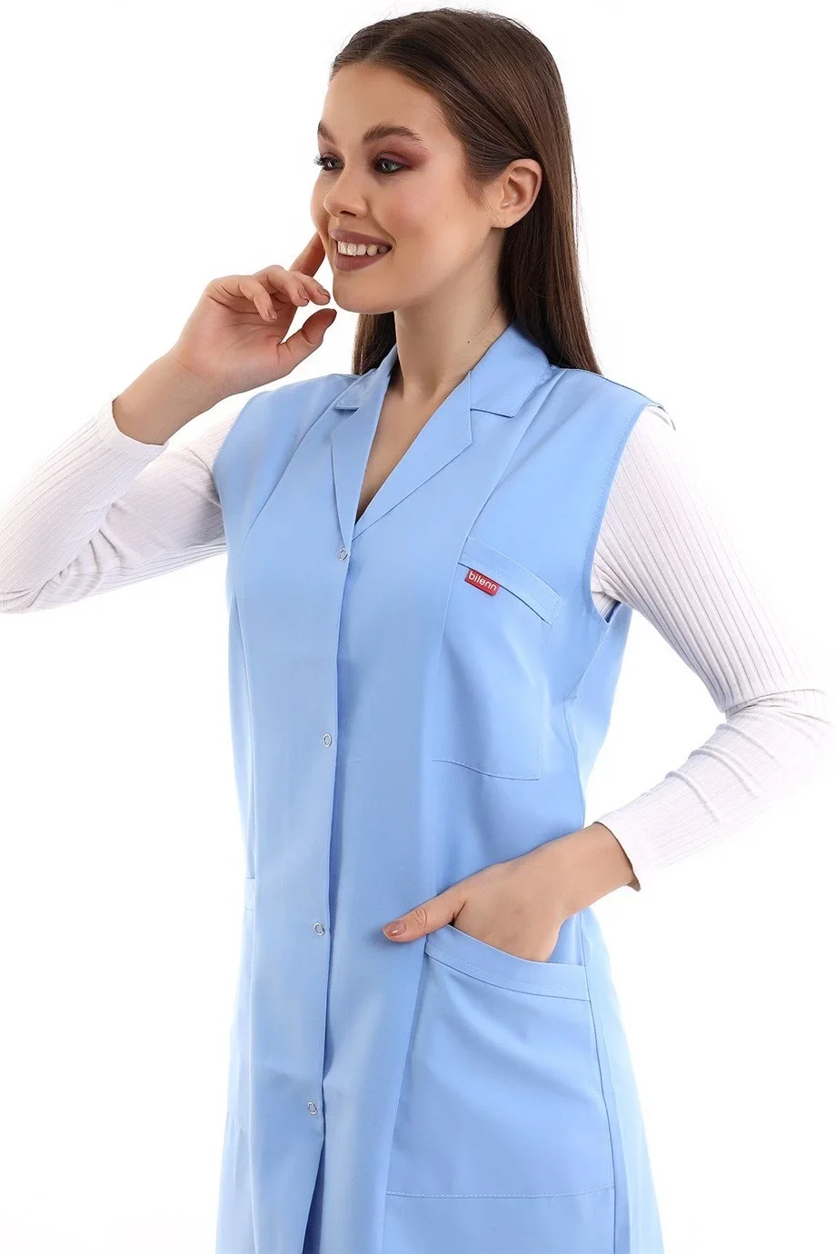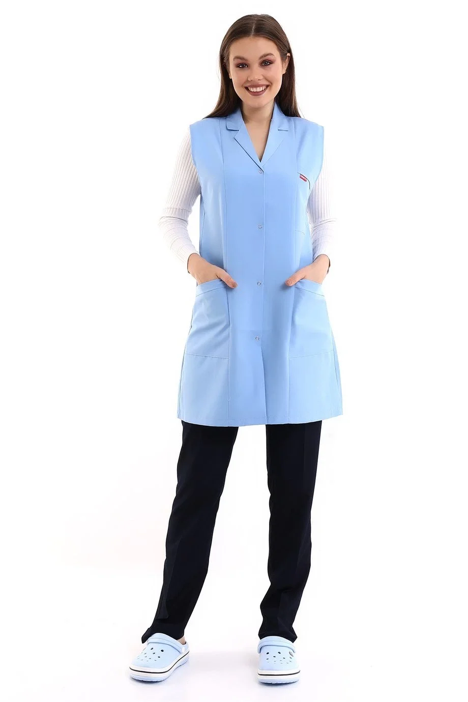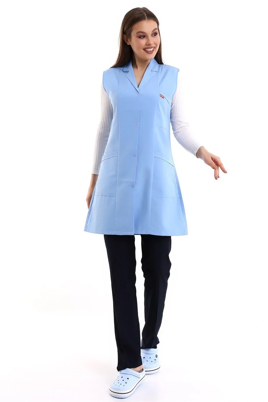 Doktor Öğretmen Kadın Önlük Ara Boy Ceket Yaka - 31 Açık Mavi