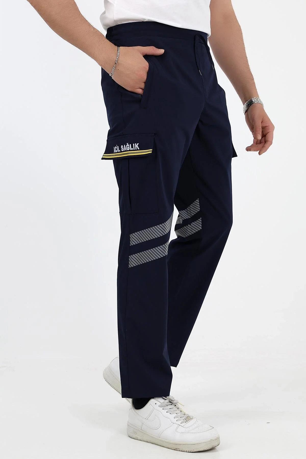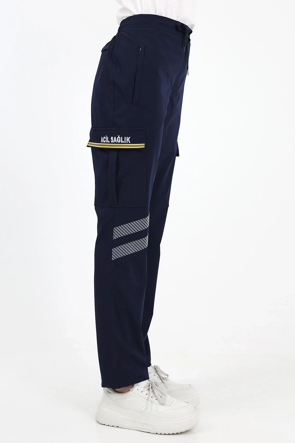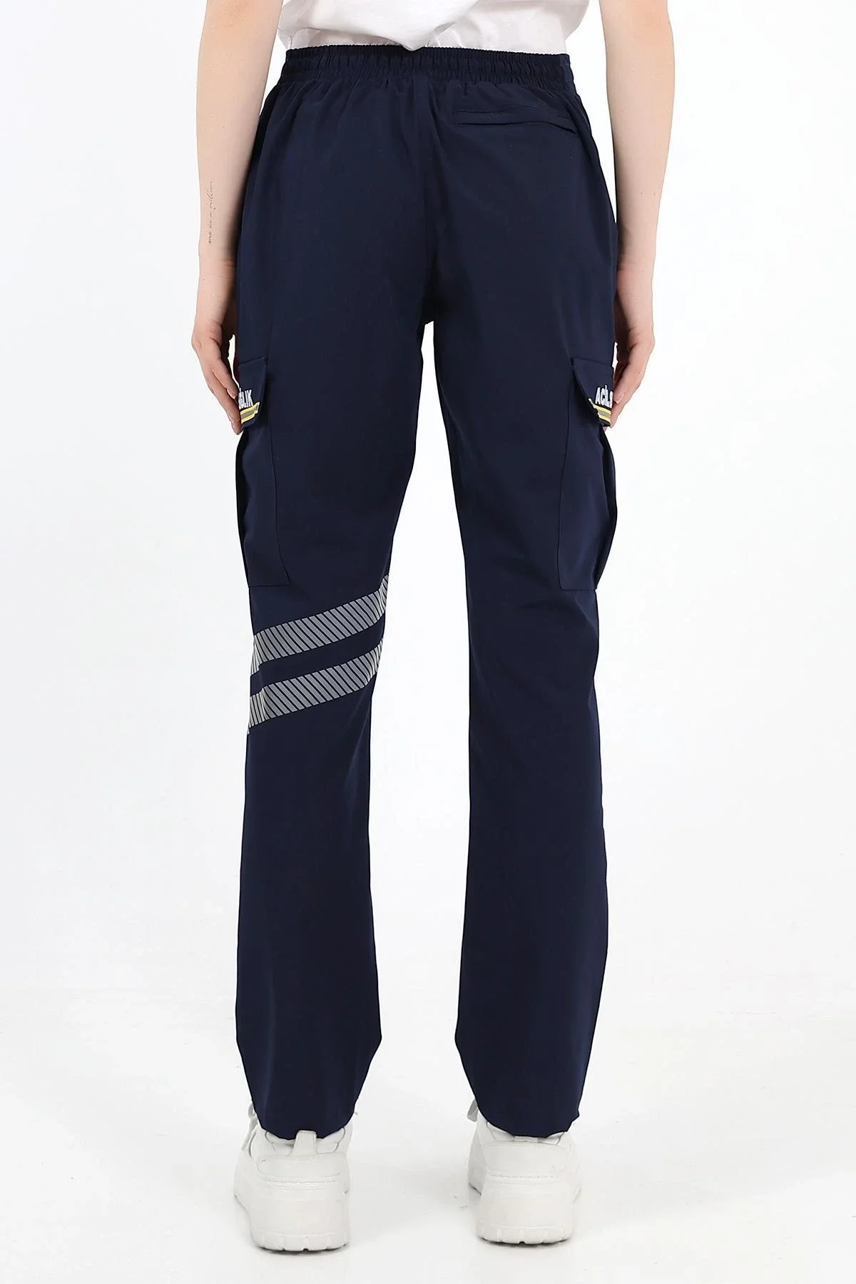 Kargo cep kapaklarındaki sarı şerit özel reflektörlü olup gece ışık yansıtma özelliğine sahiptir.