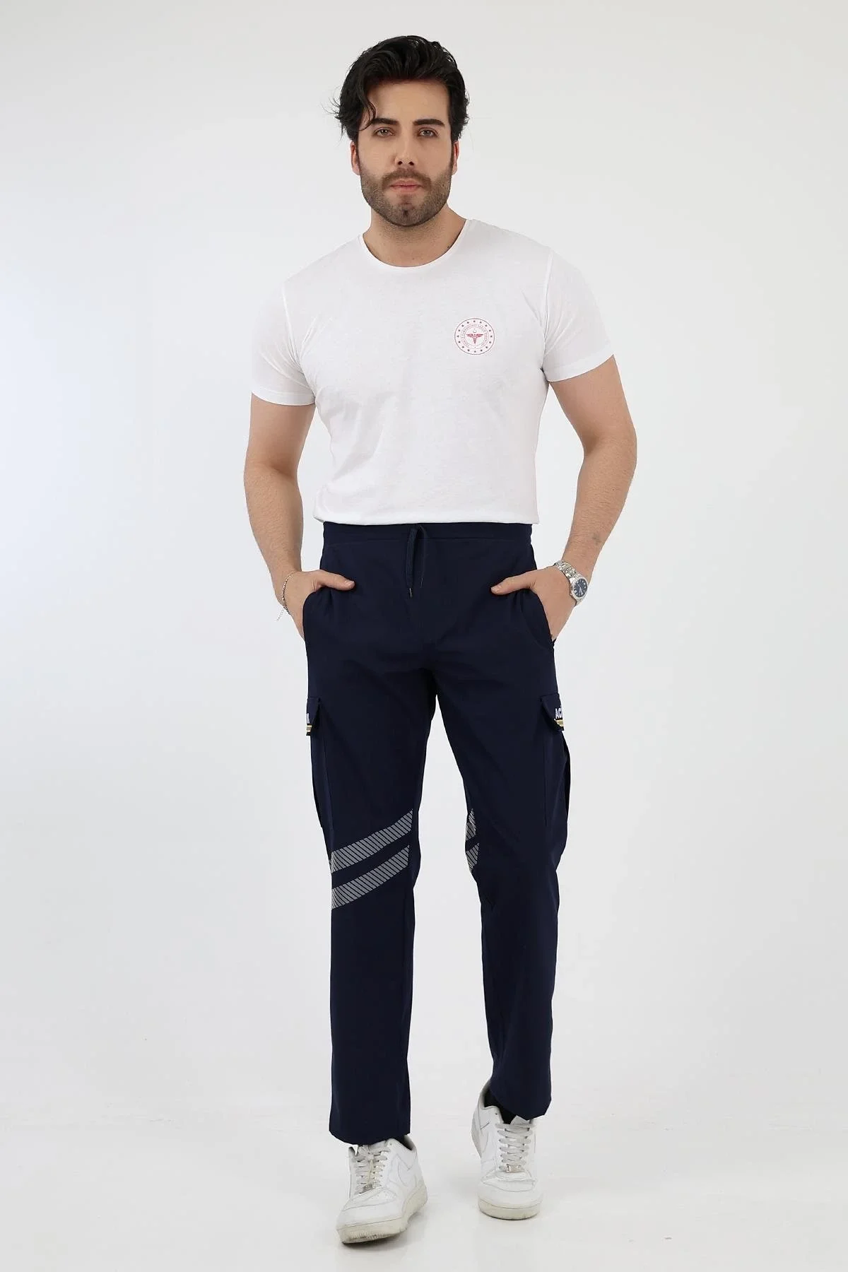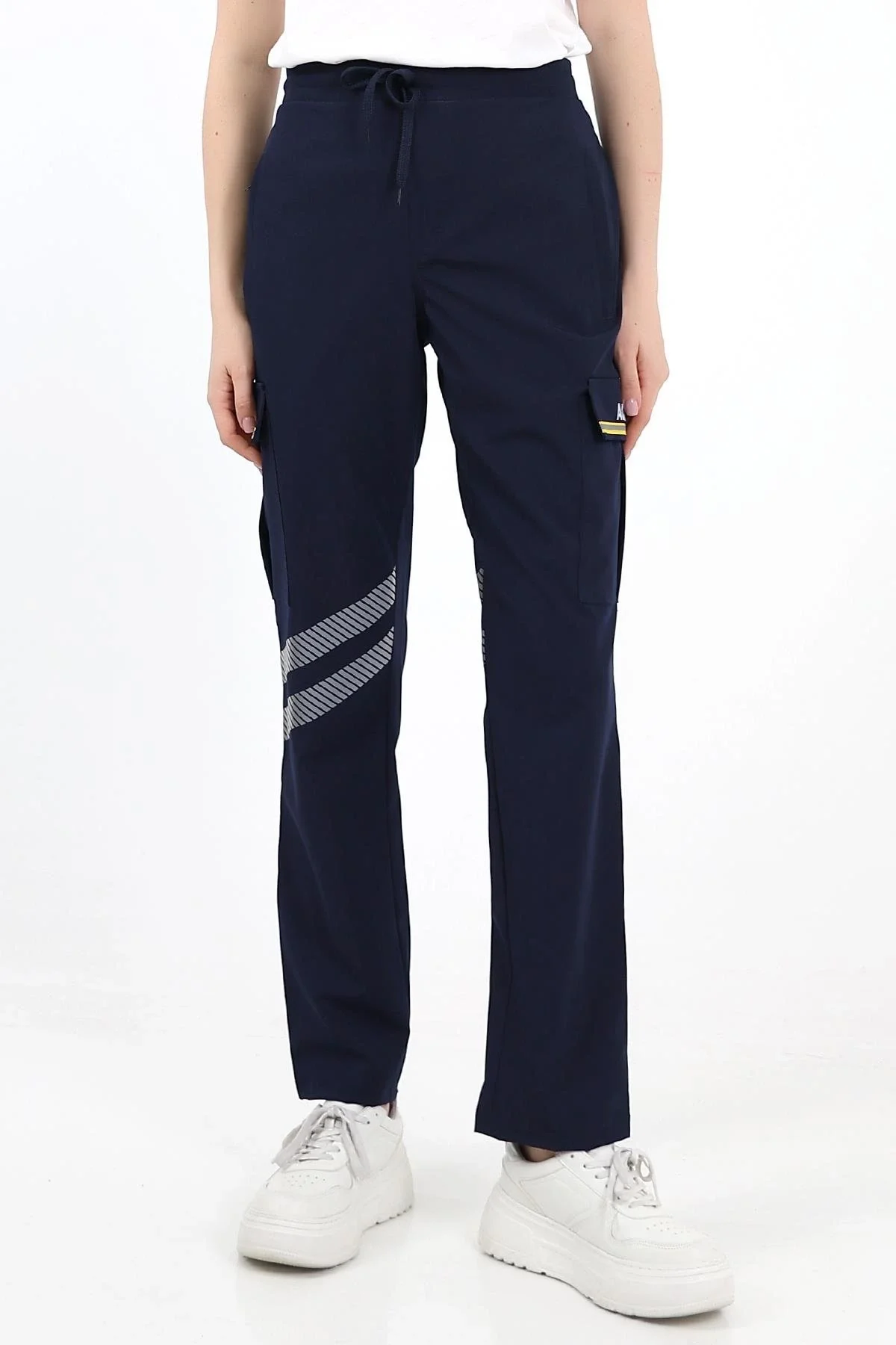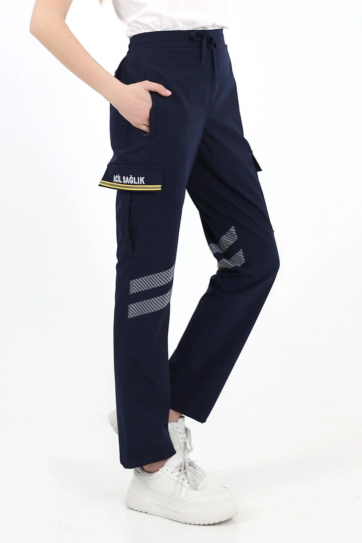 Kargo cep kapaklarındaki sarı şerit özel reflektörlü olup gece ışık yansıtma özelliğine sahiptir.