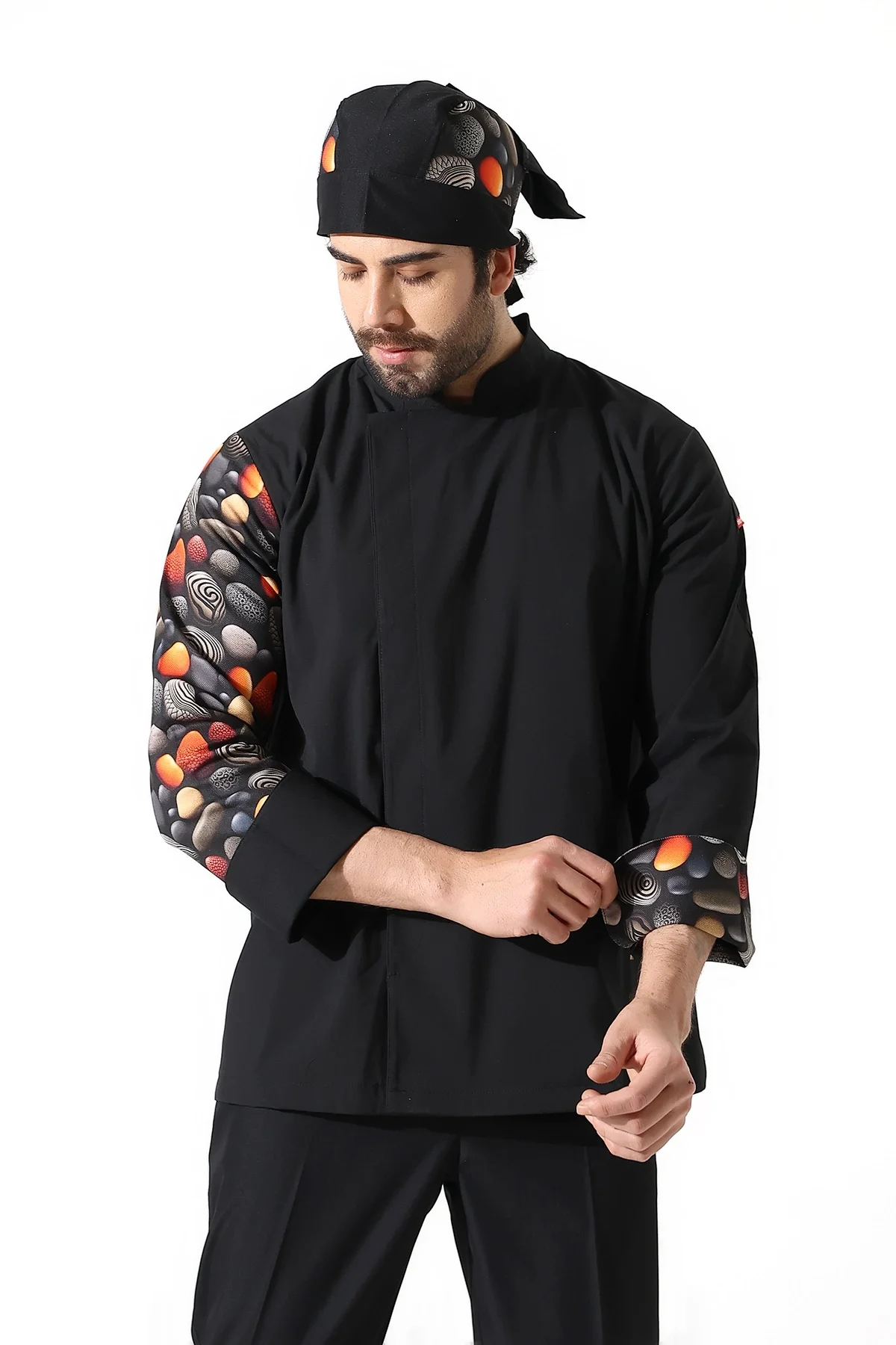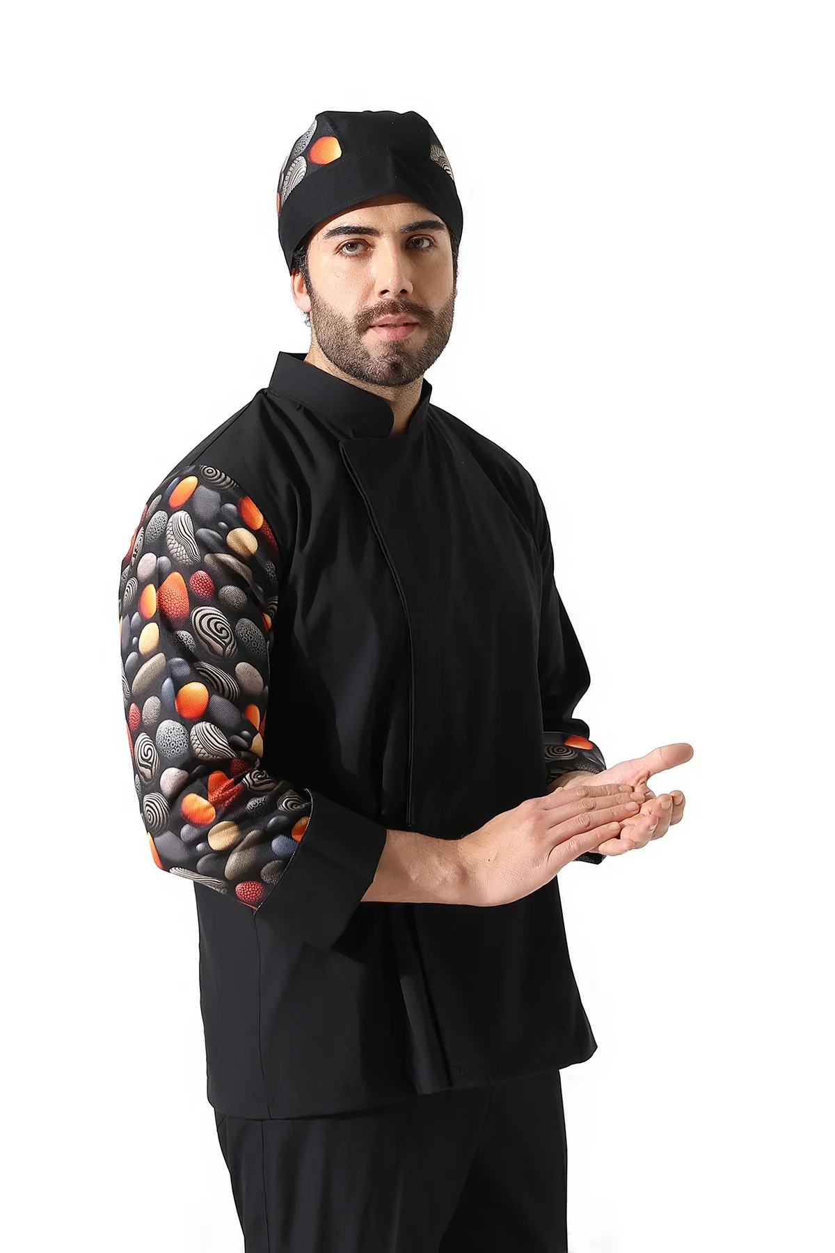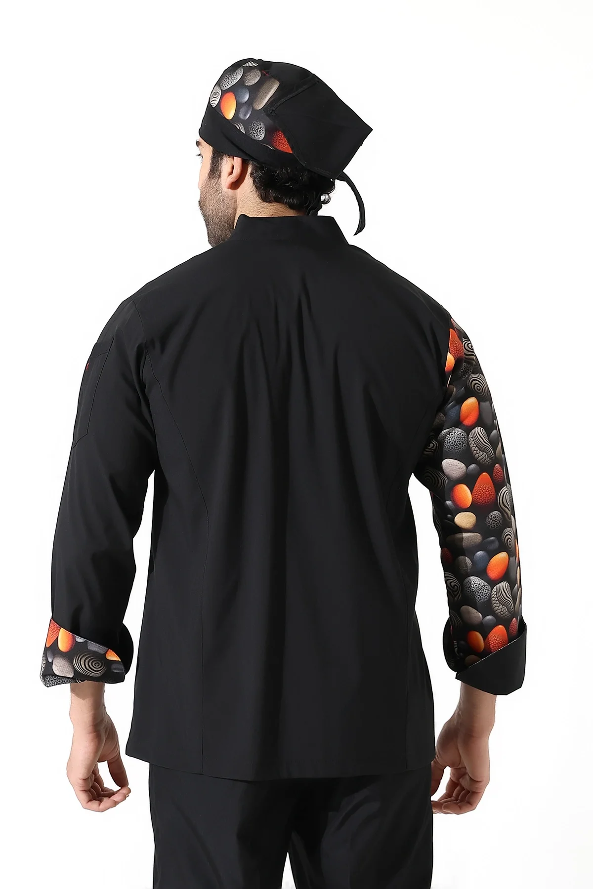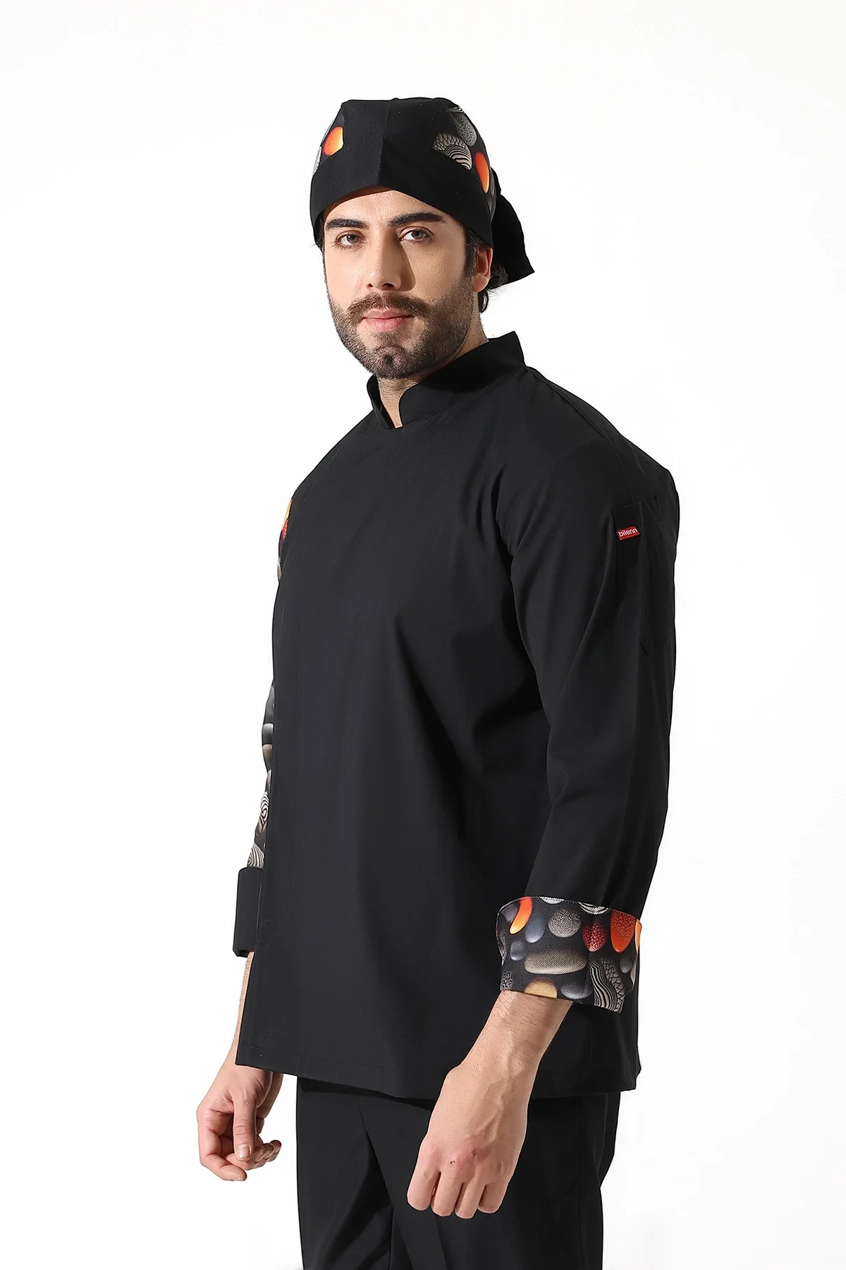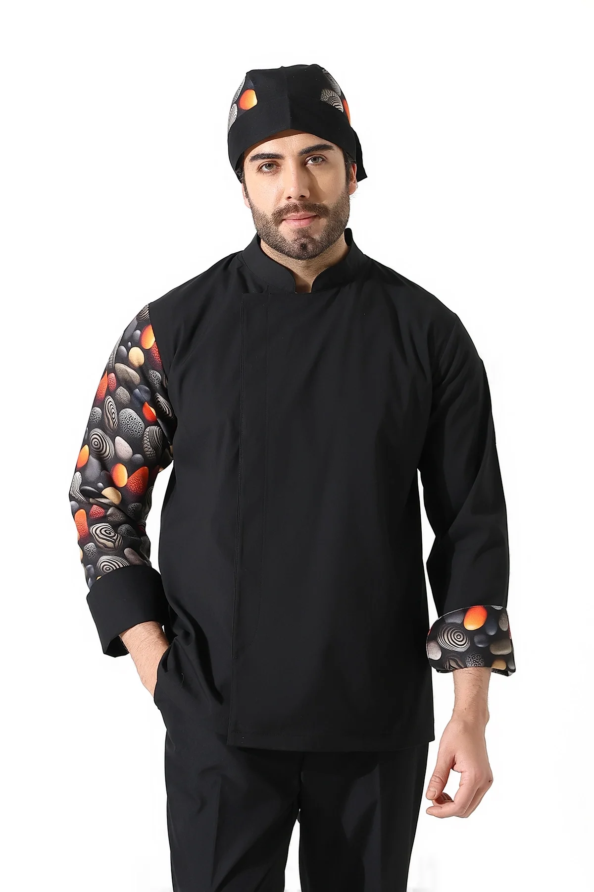 Erkek Likralı Kol Desenli Aşçı Ceket - 6403 Siyah Renkli Daire