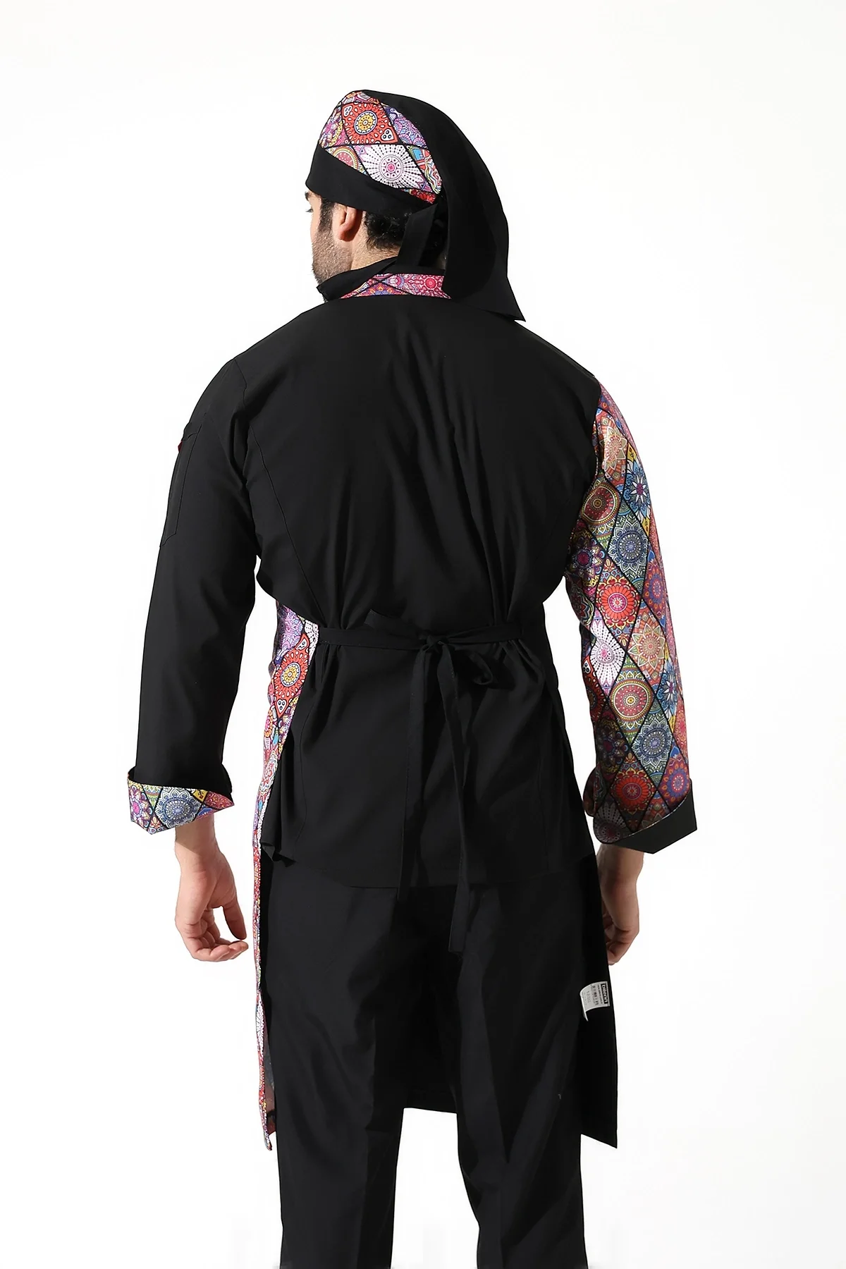 Desenli Askılı Önlük - 2502 Siyah Merdane