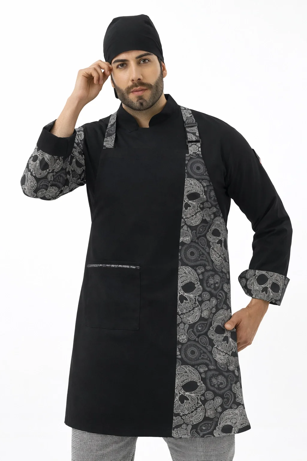 Desenli Askılı Önlük - 2502 Siyah Merdane