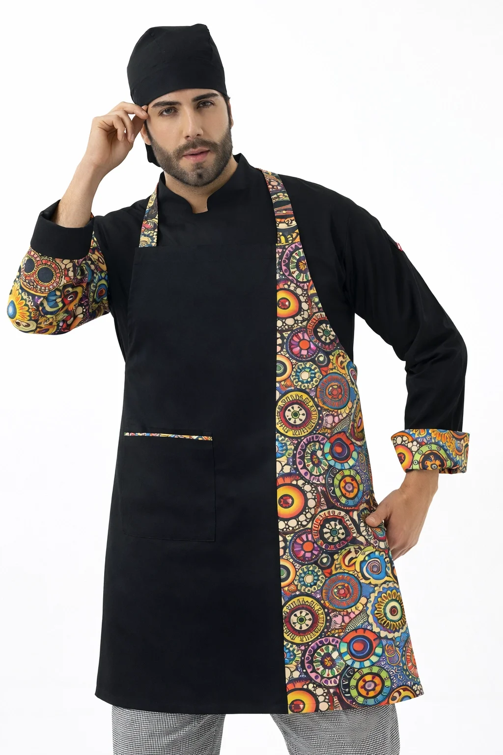 Desenli Askılı Önlük - 2502 Siyah Merdane
