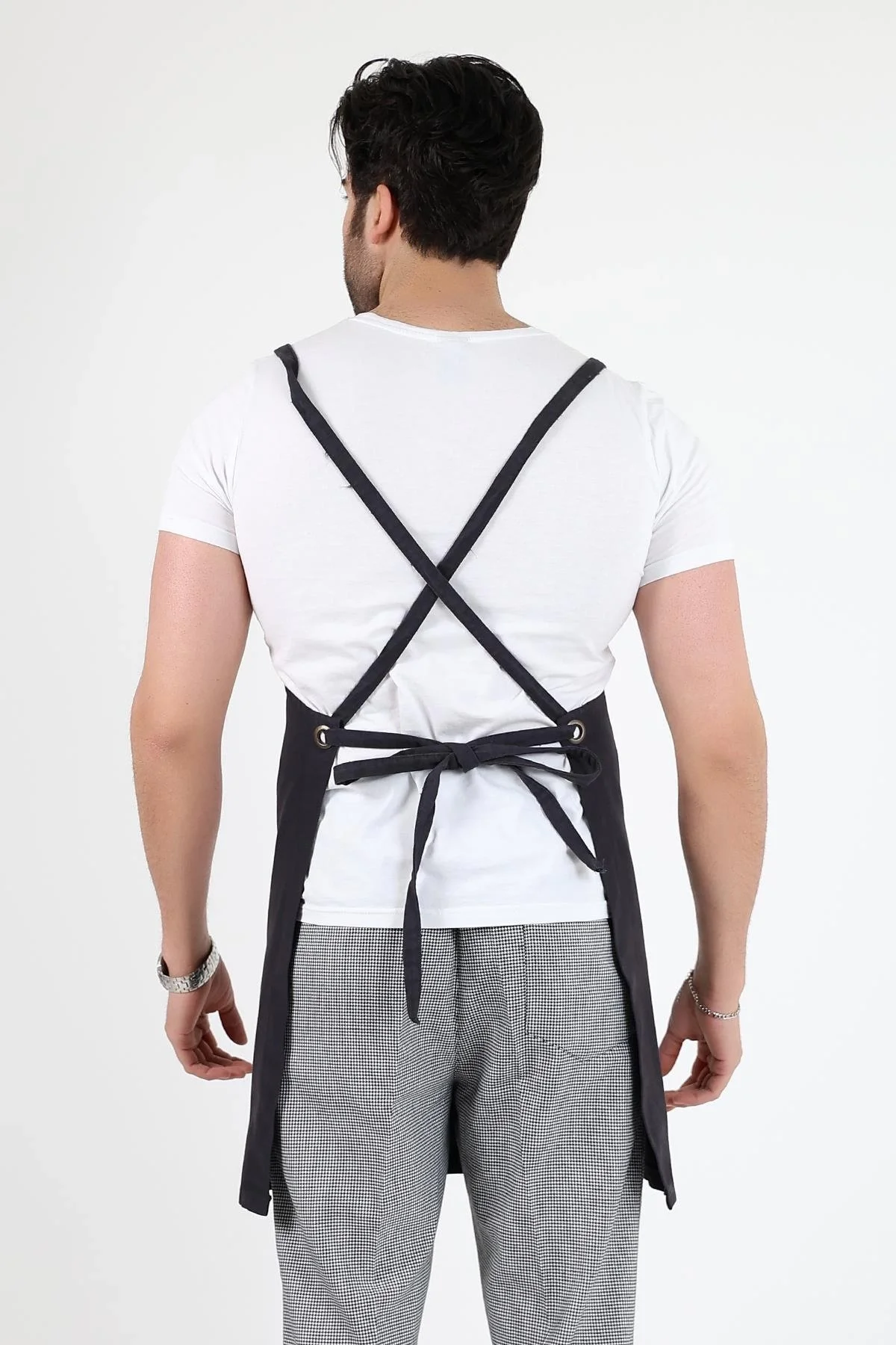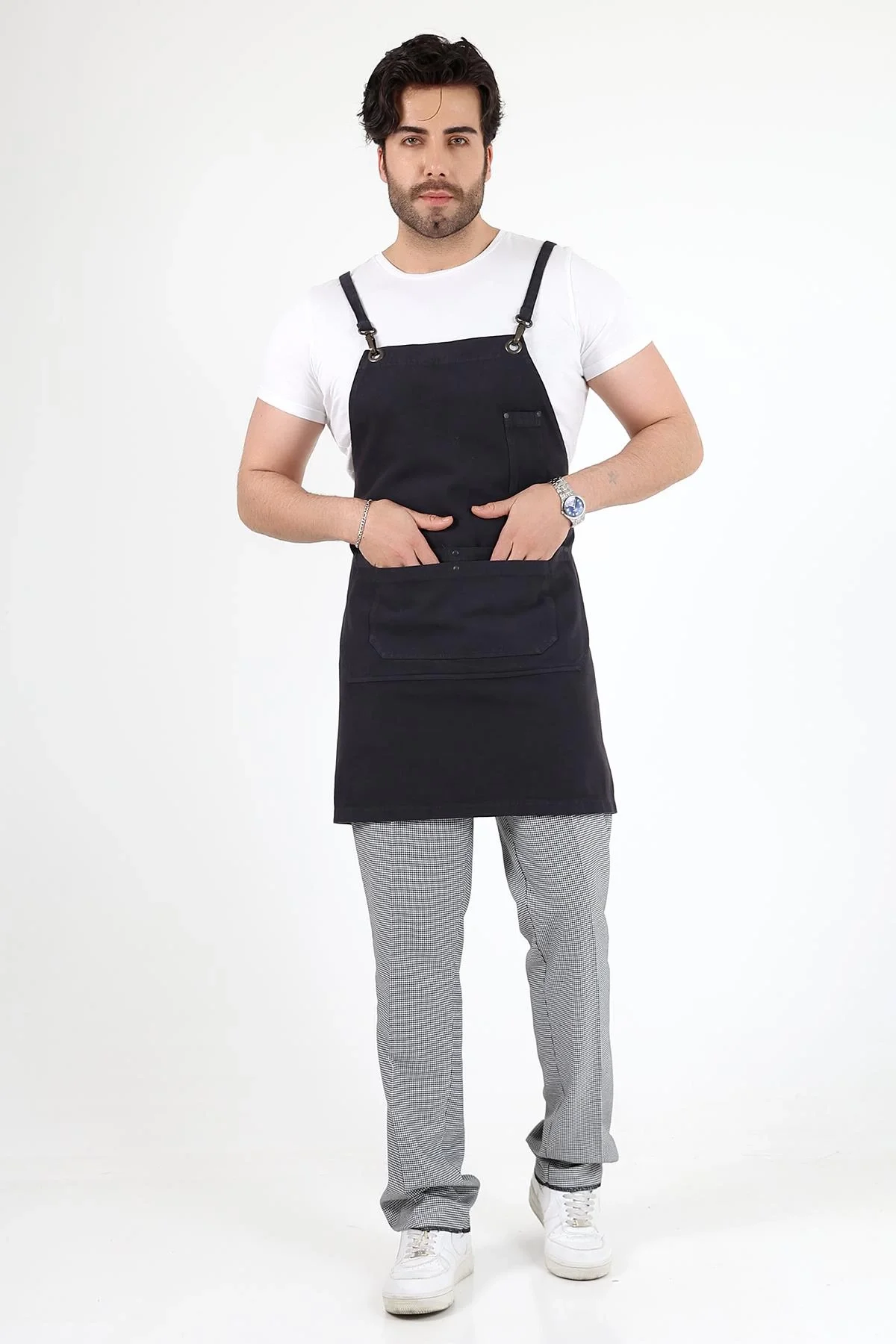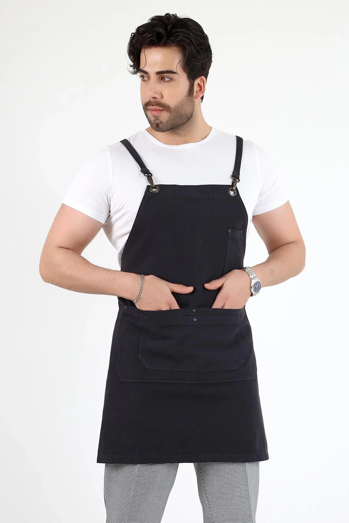 Barista Askılı Önlük Kanguru Cepli - Füme