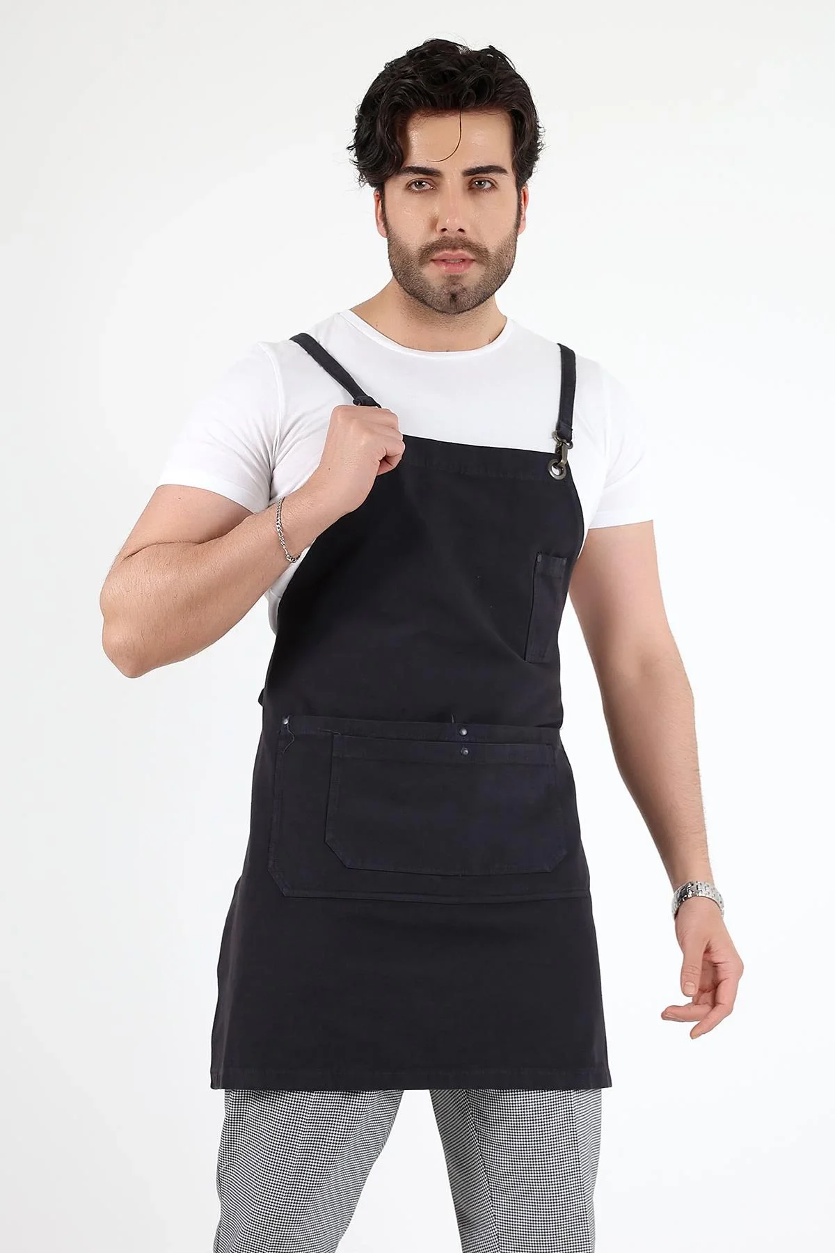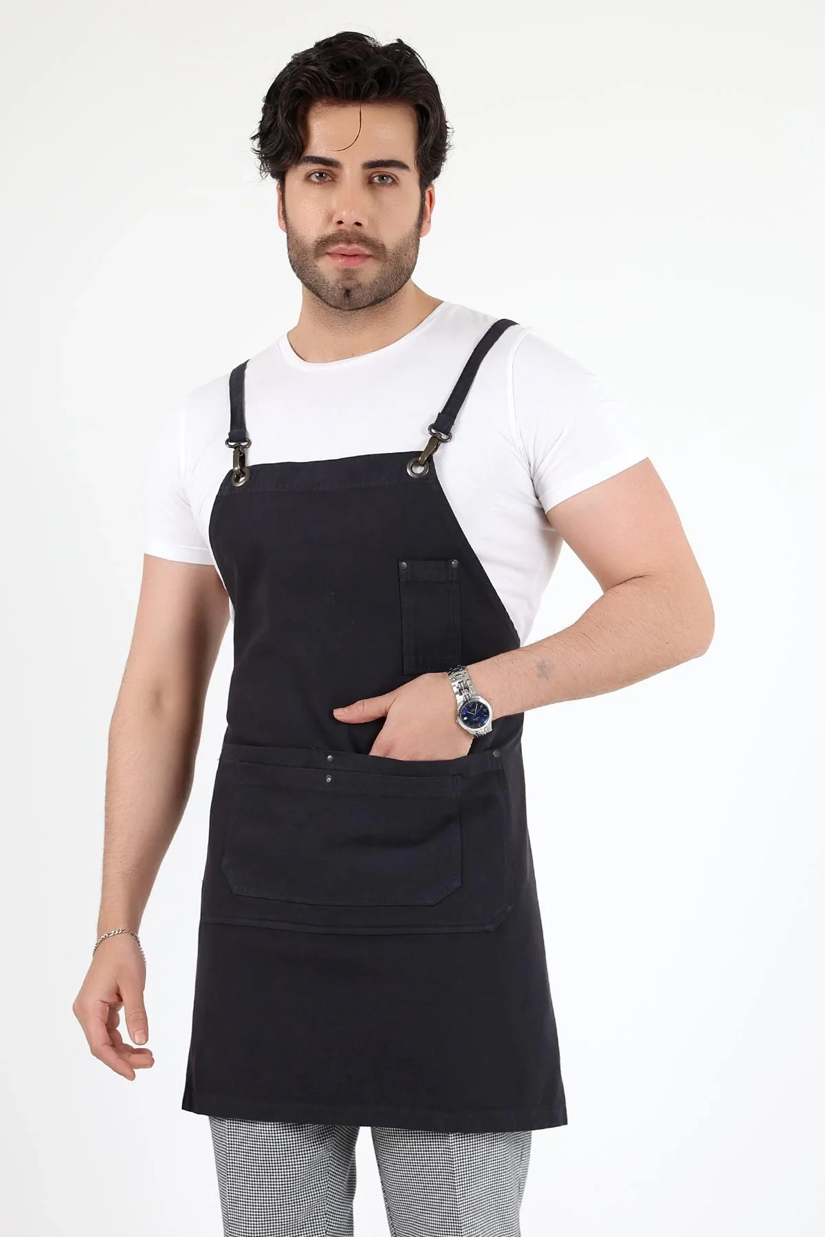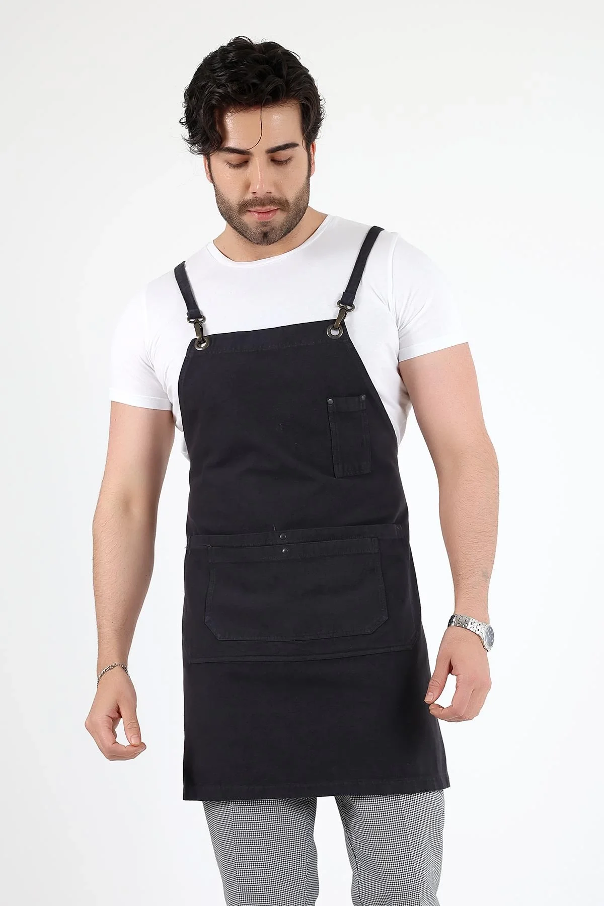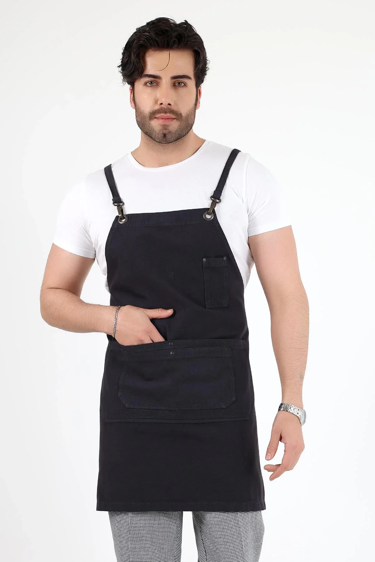 Barista Askılı Önlük Kanguru Cepli - Füme