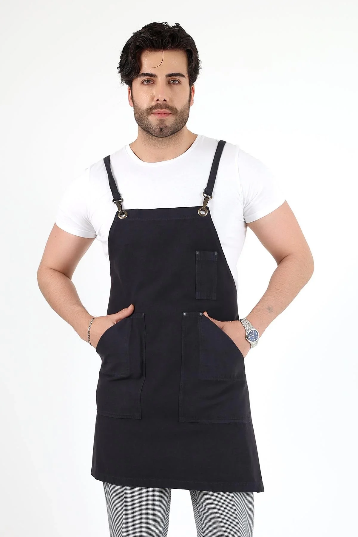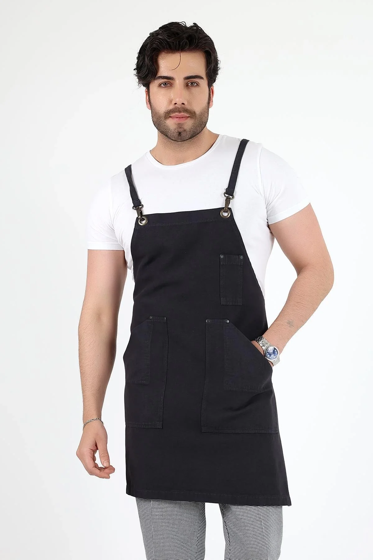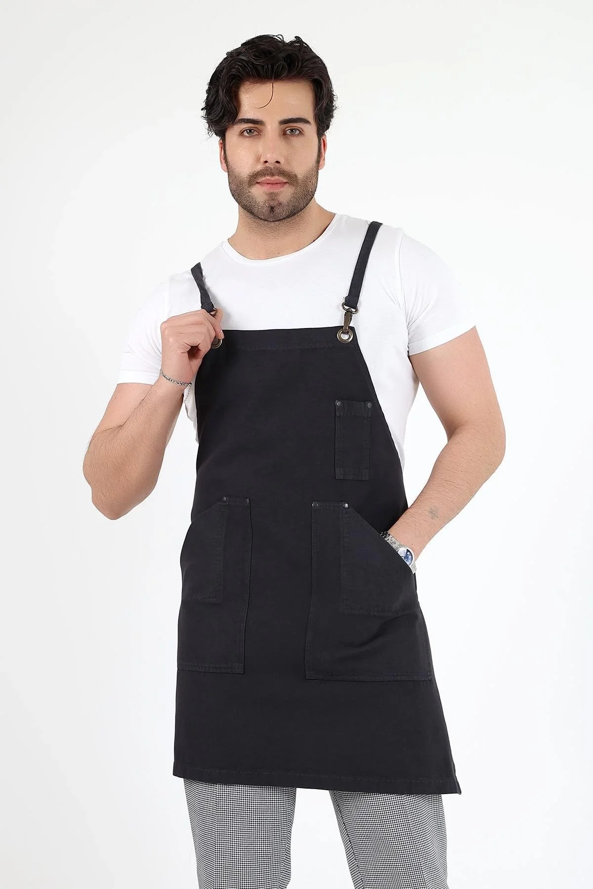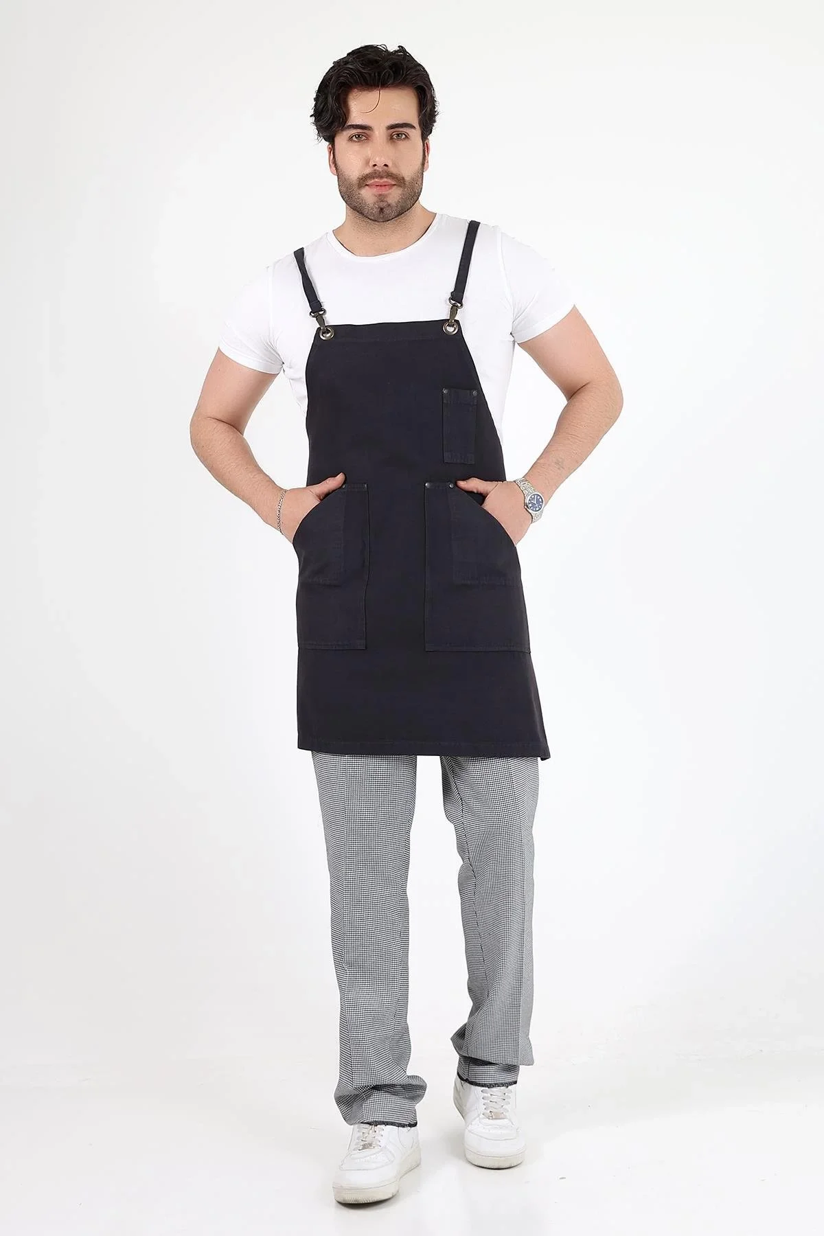 Barista Askılı Önlük Kanguru Cepli - Kahve