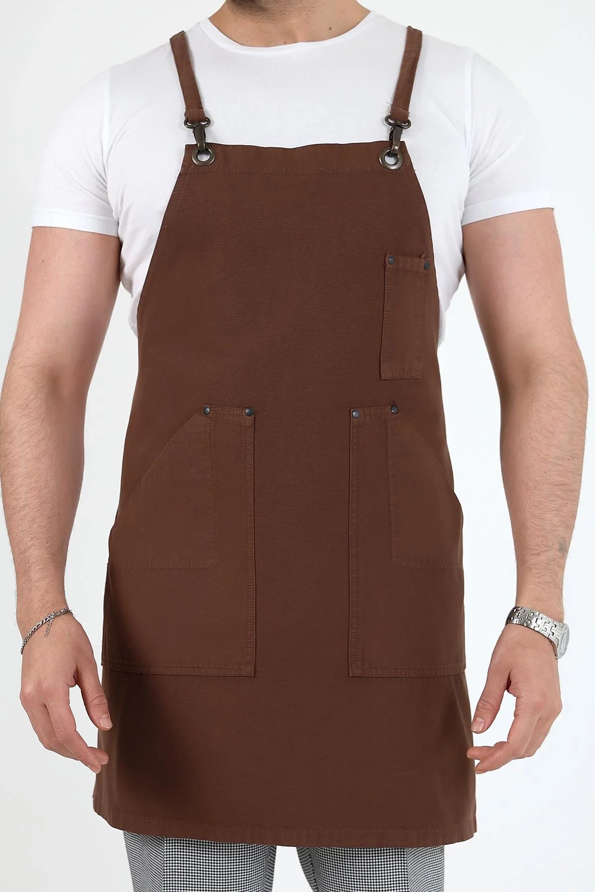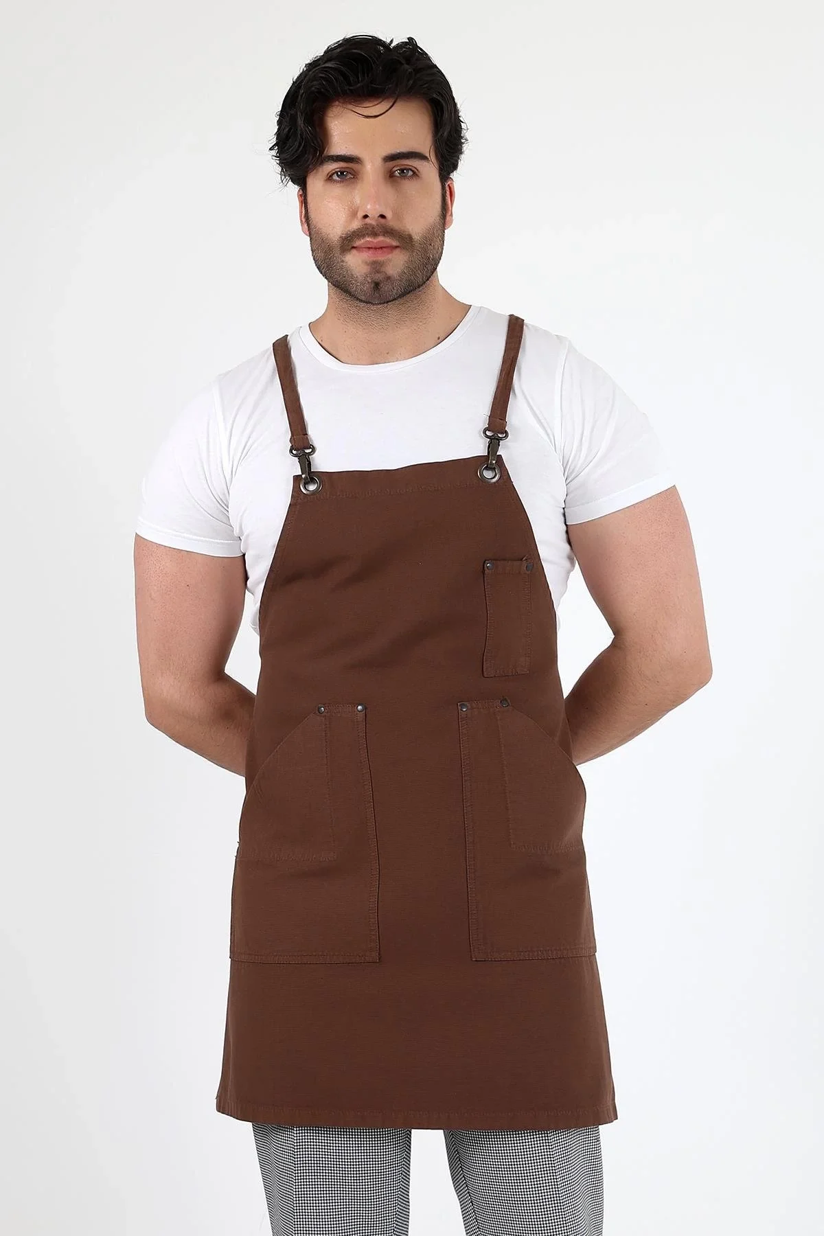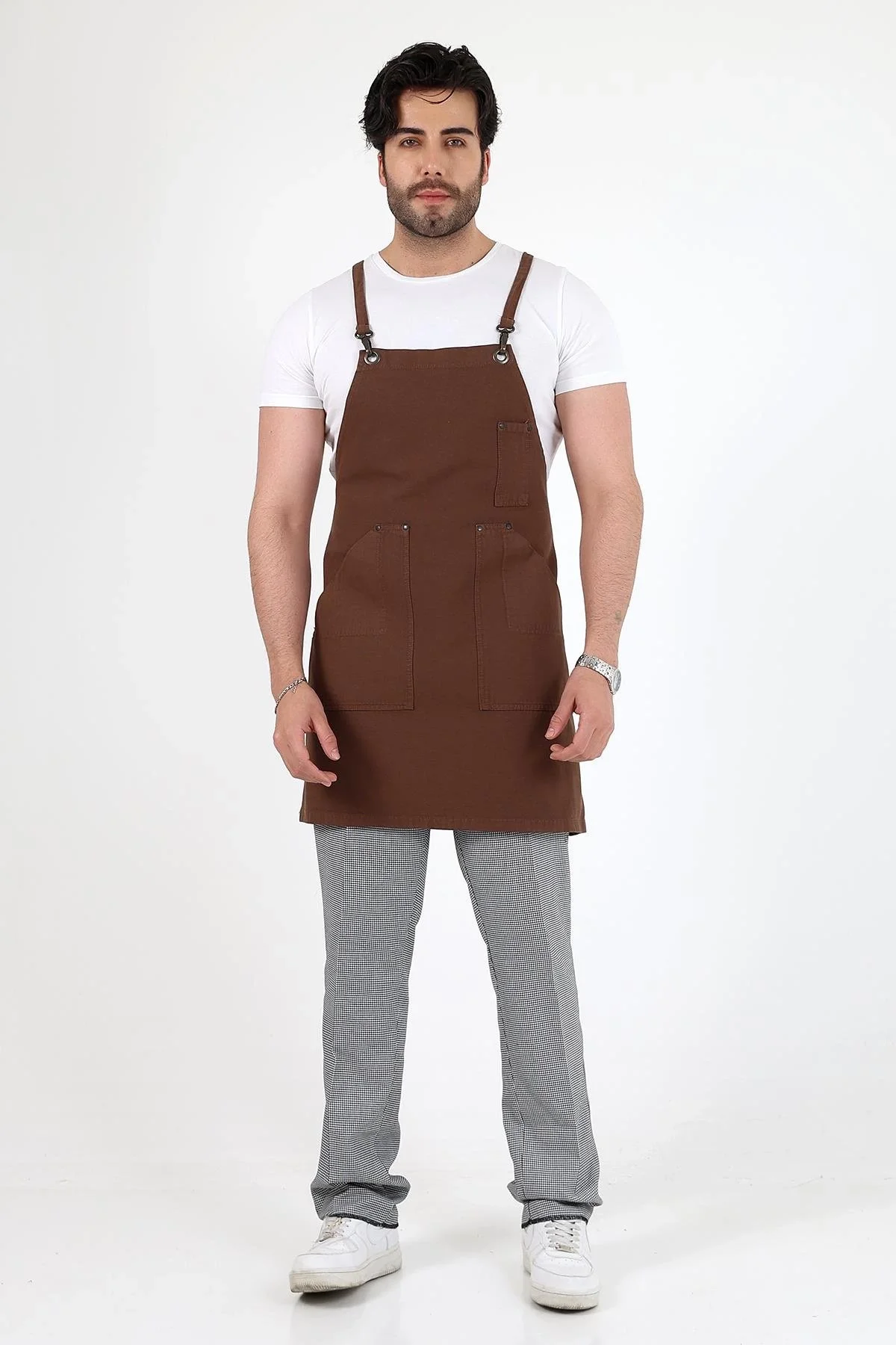 Barista Askılı Önlük Çift Cepli - Kahve