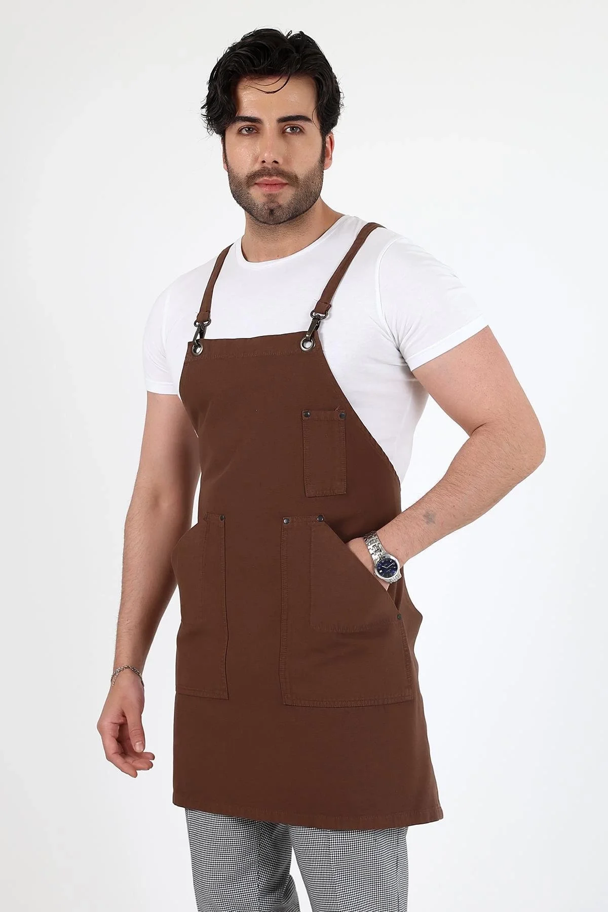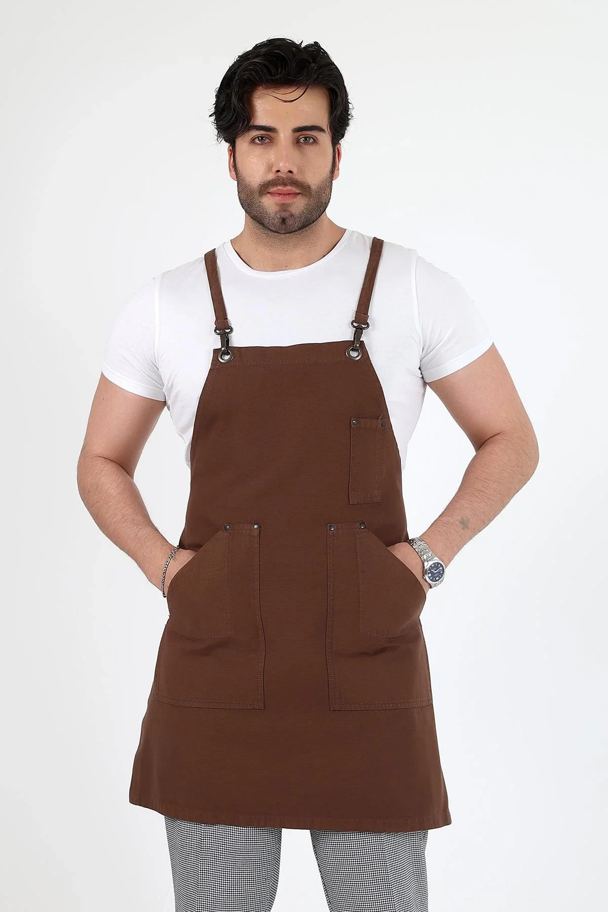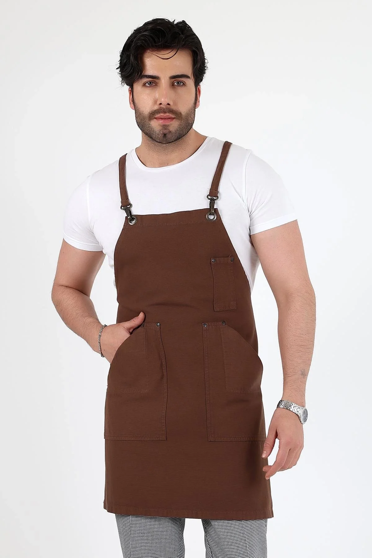 Barista Askılı Önlük Çift Cepli - Kahve