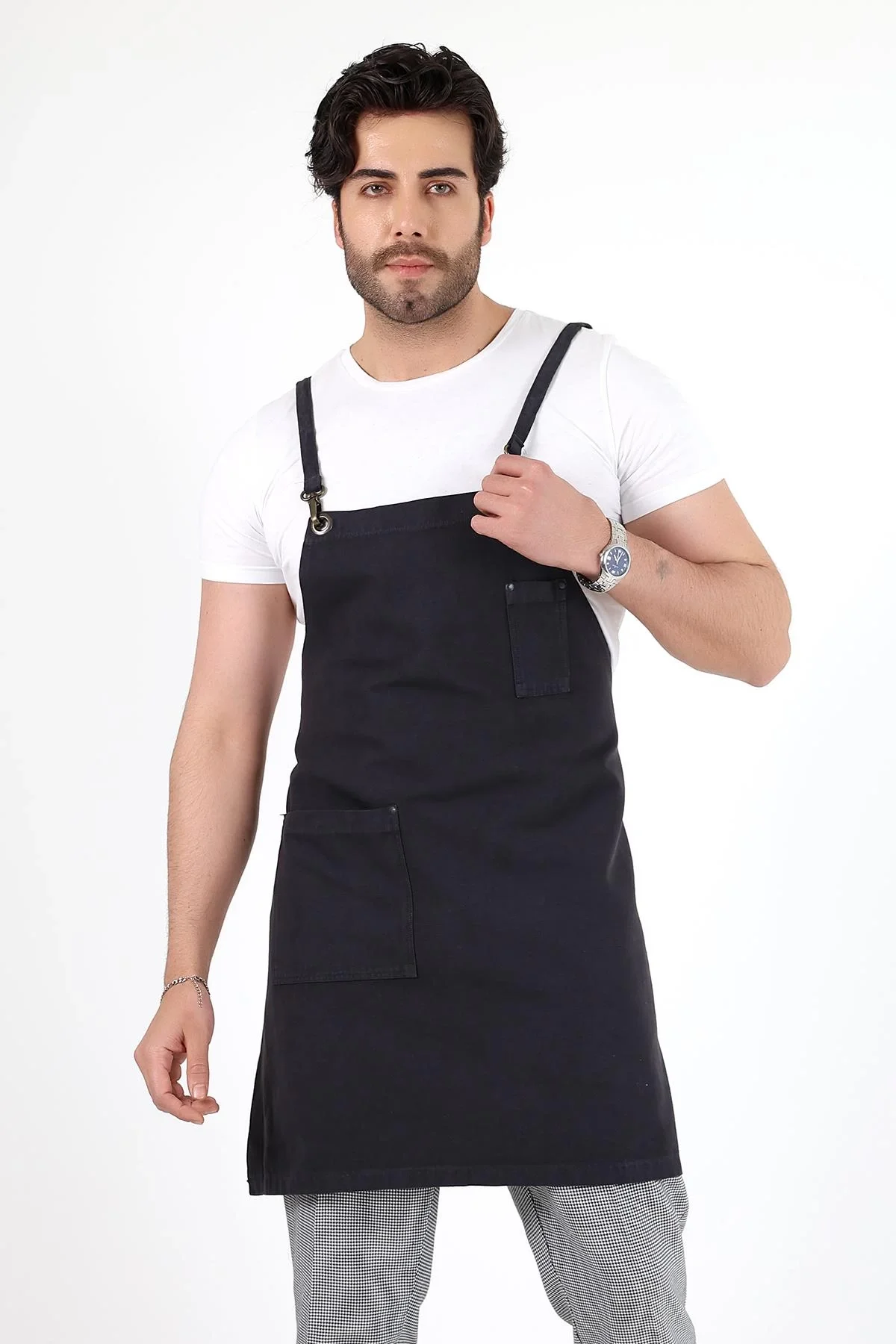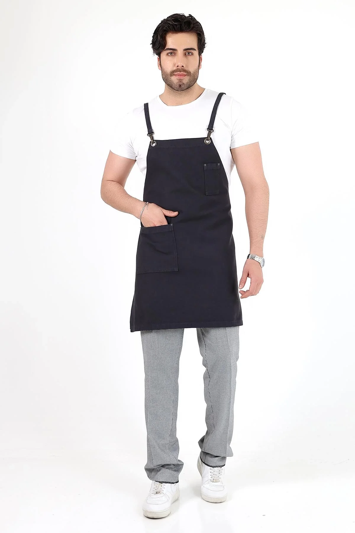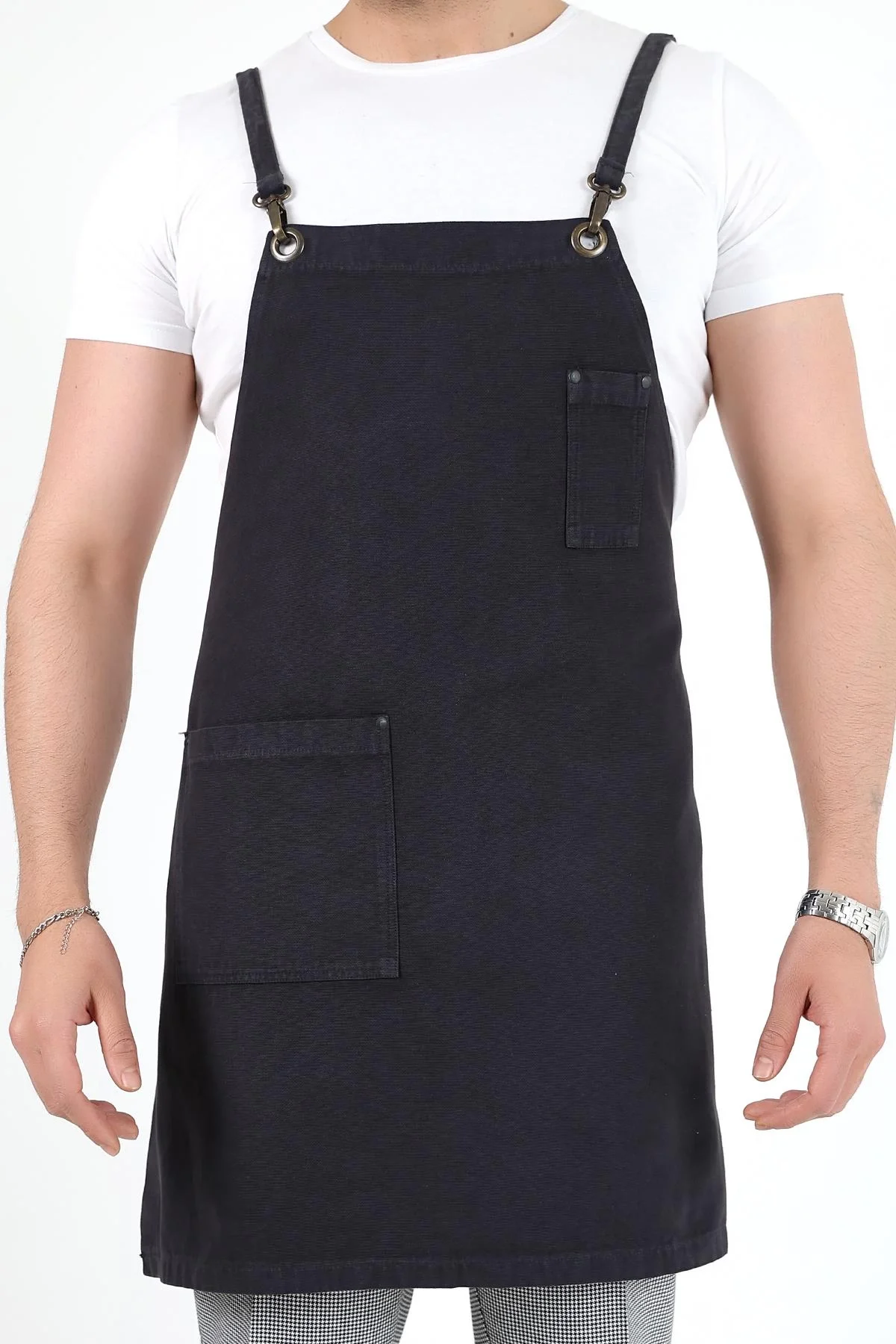 Barista Askılı Önlük Çift Cepli - Füme