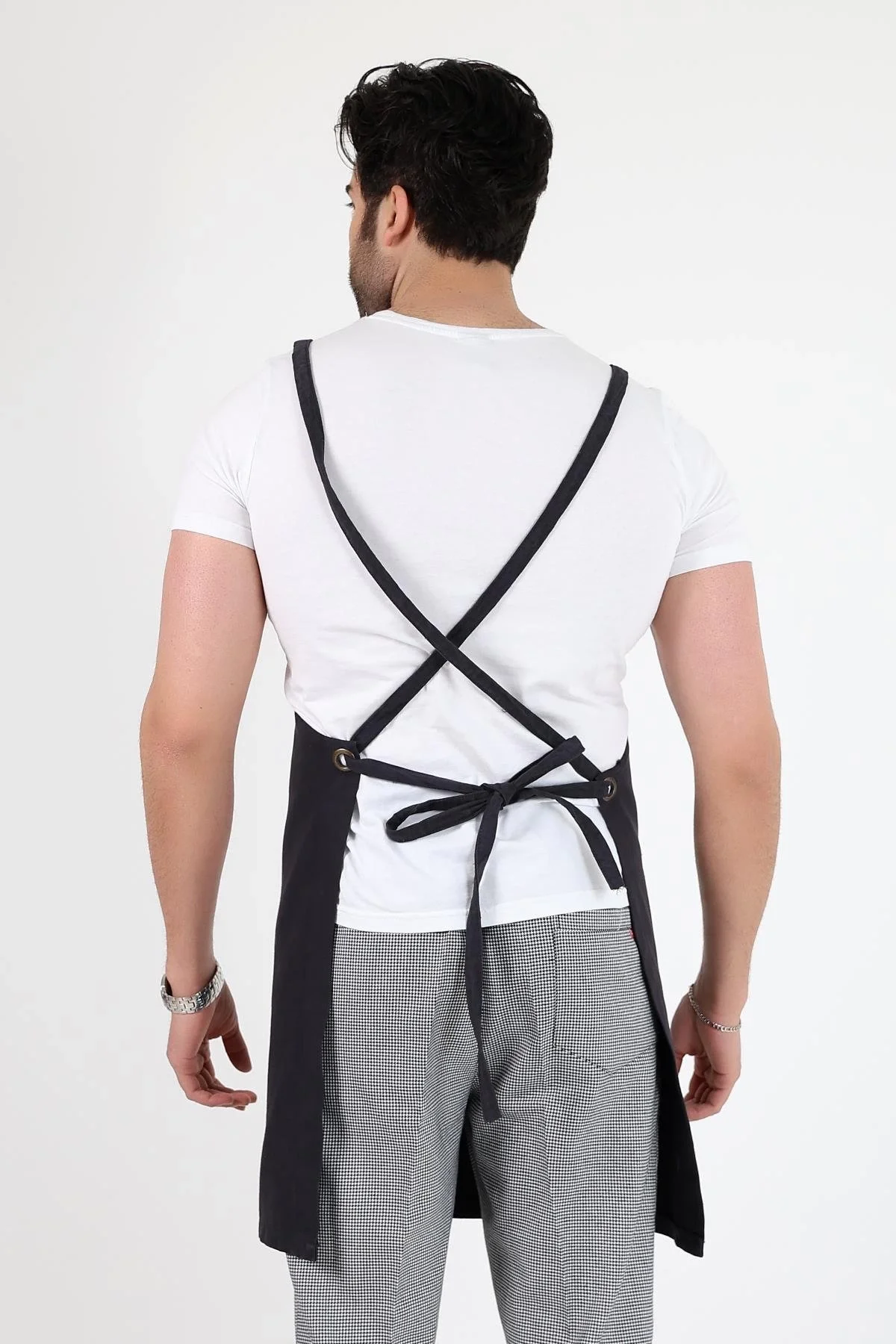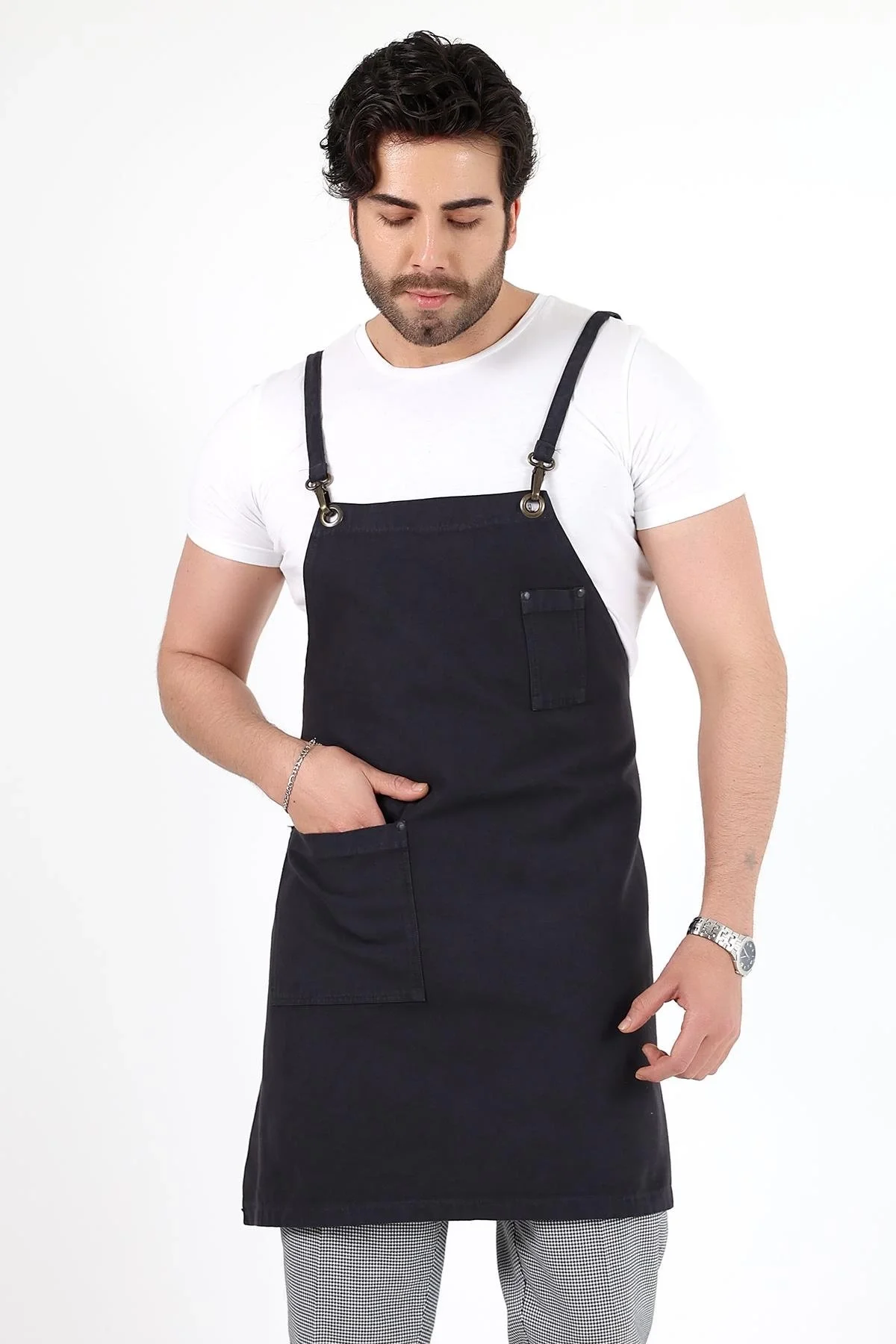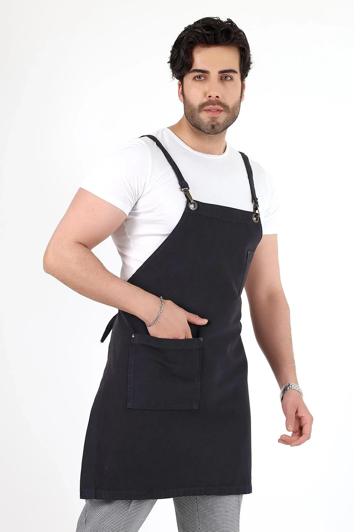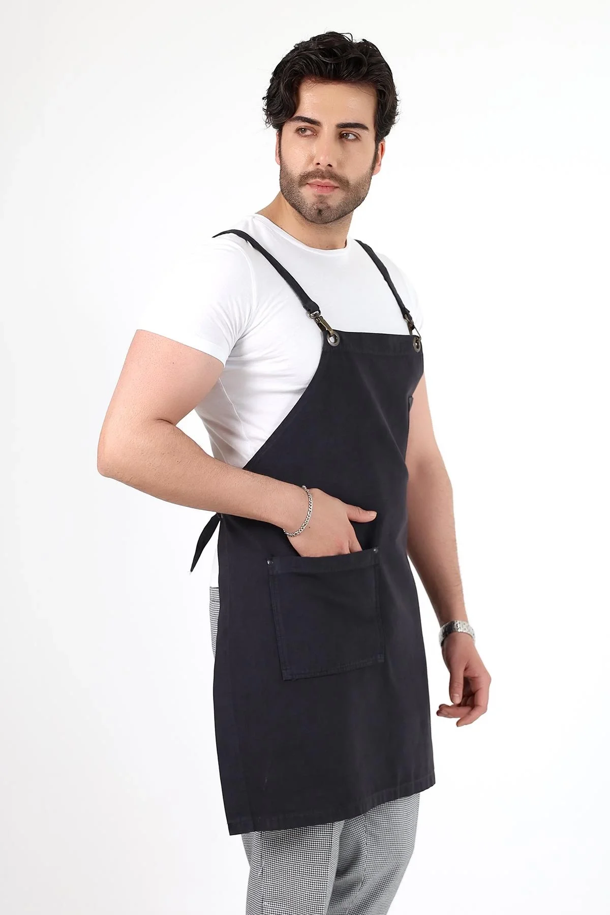 Barista Askılı Önlük Çift Cepli - Füme