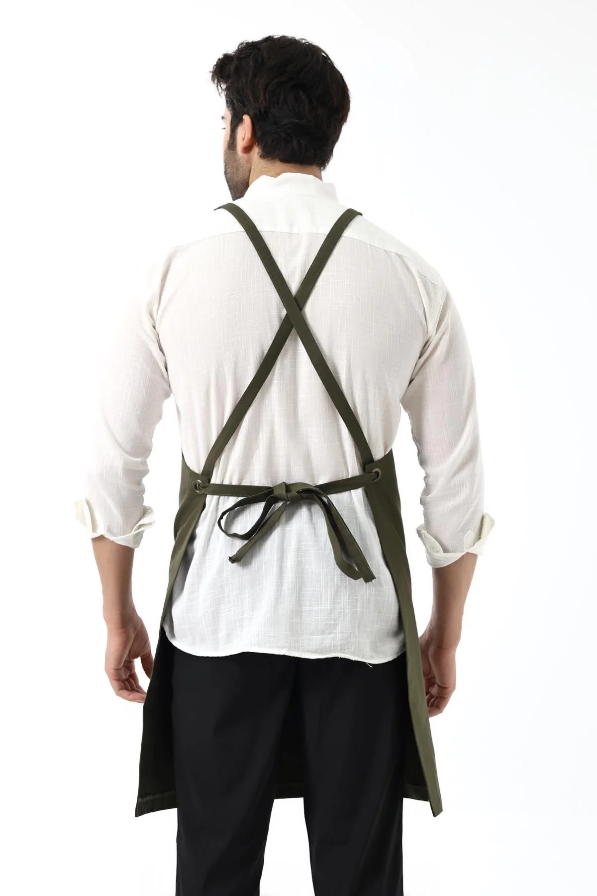 Barista Askılı Önlük Tek Cepli Deri Kemerli - Yeşil