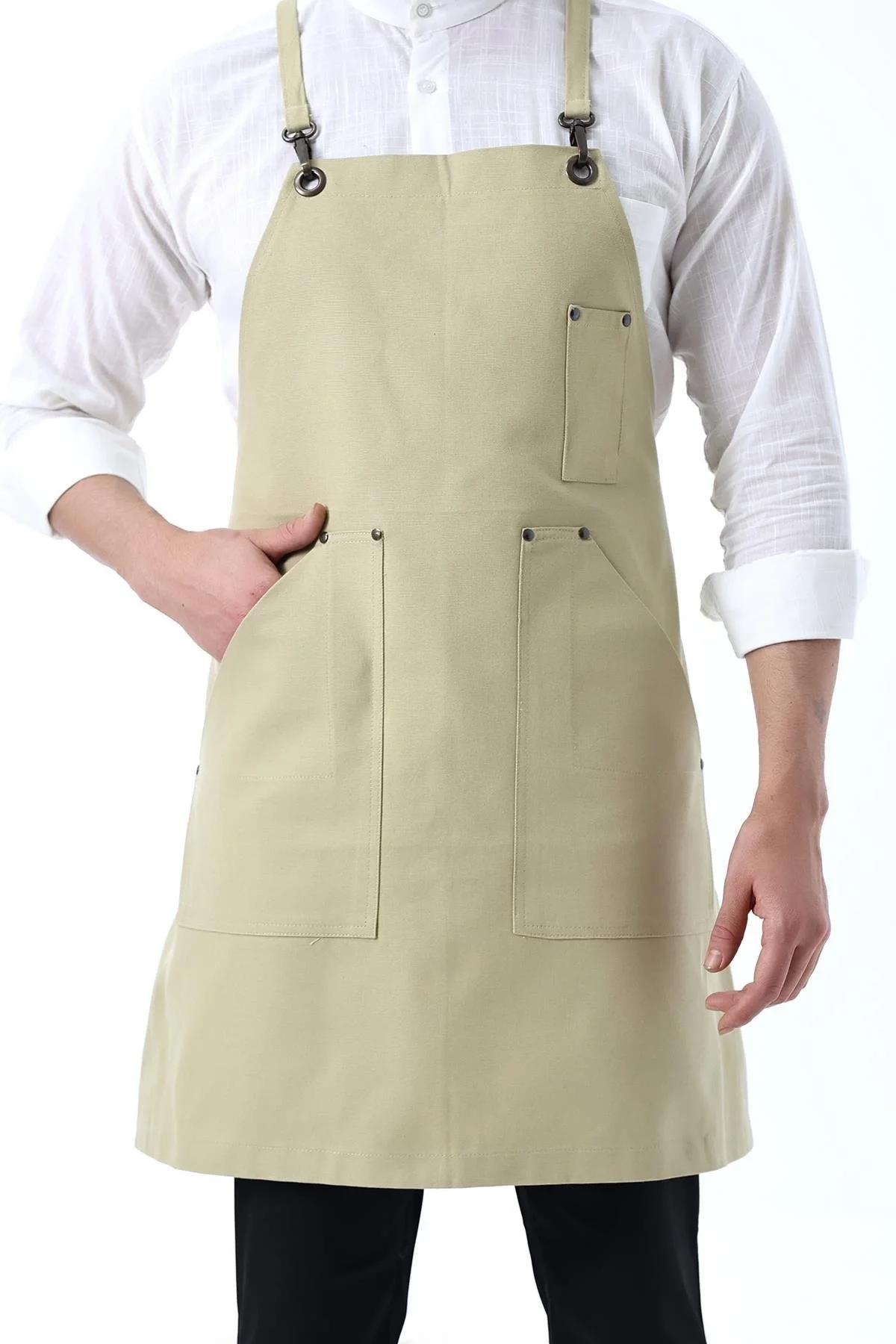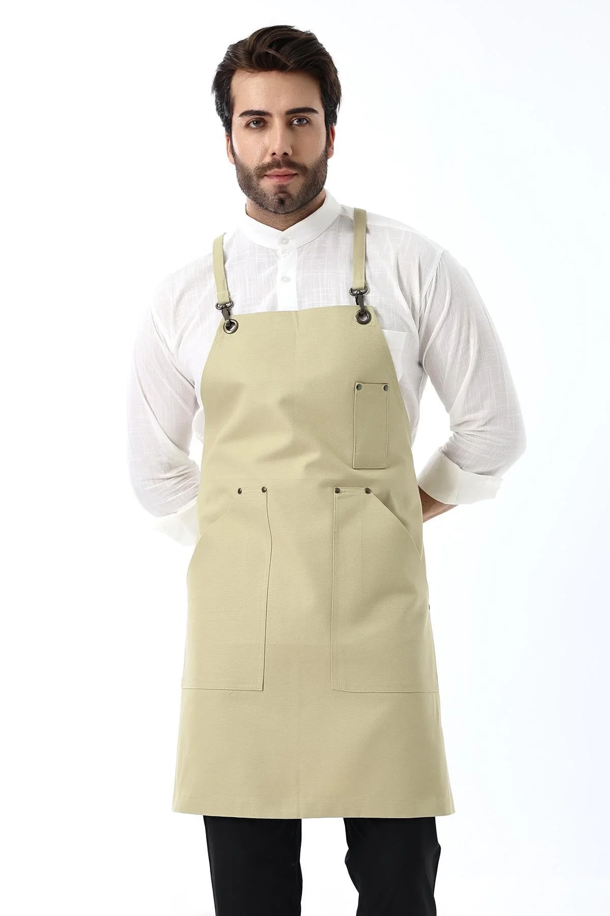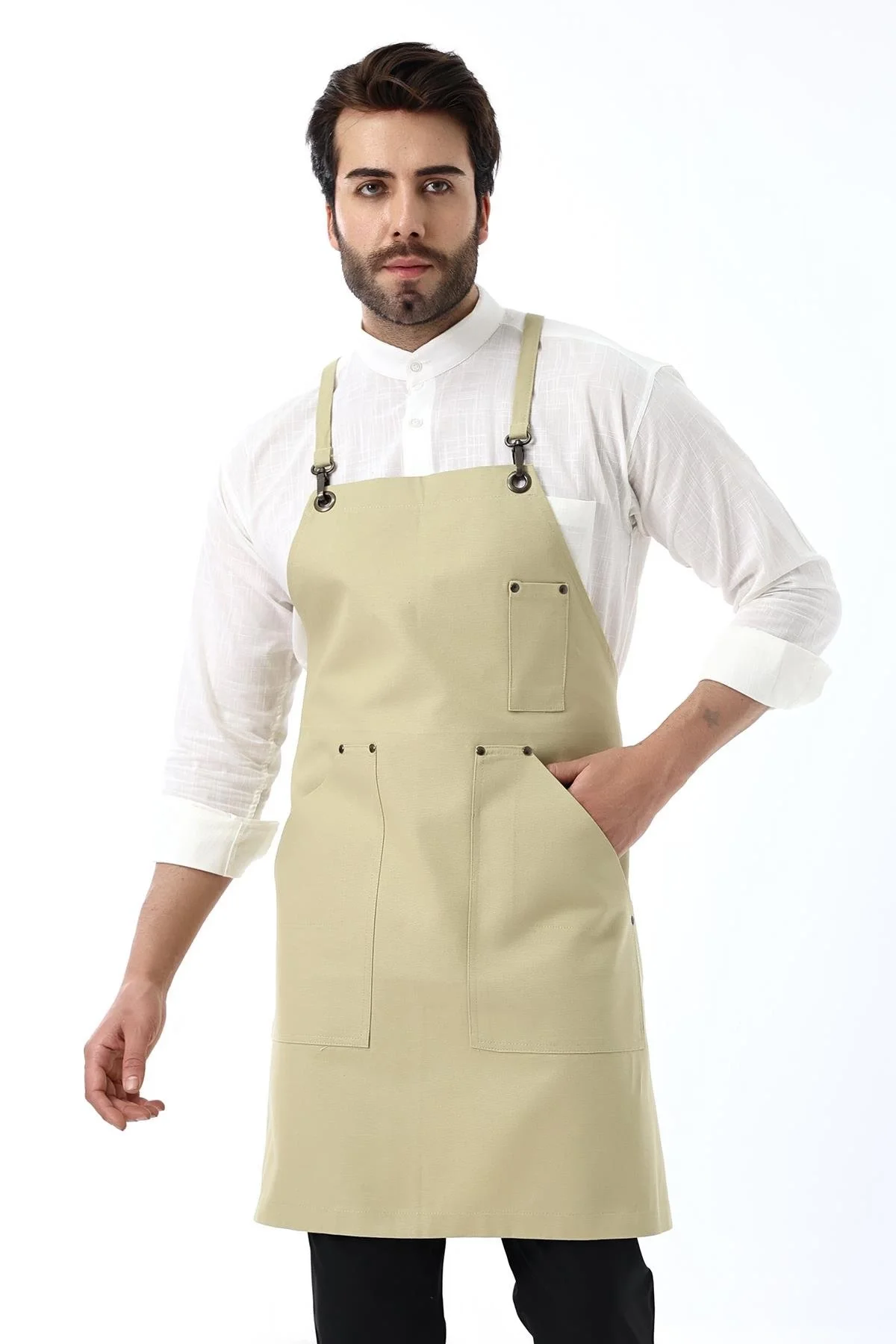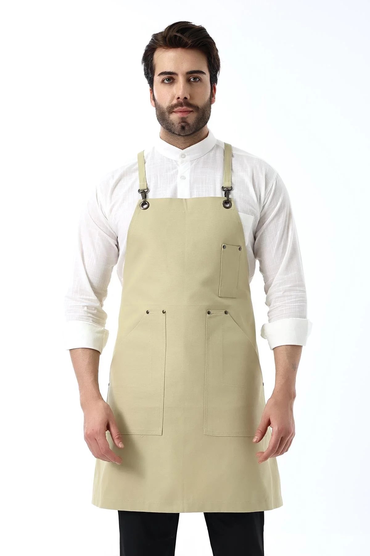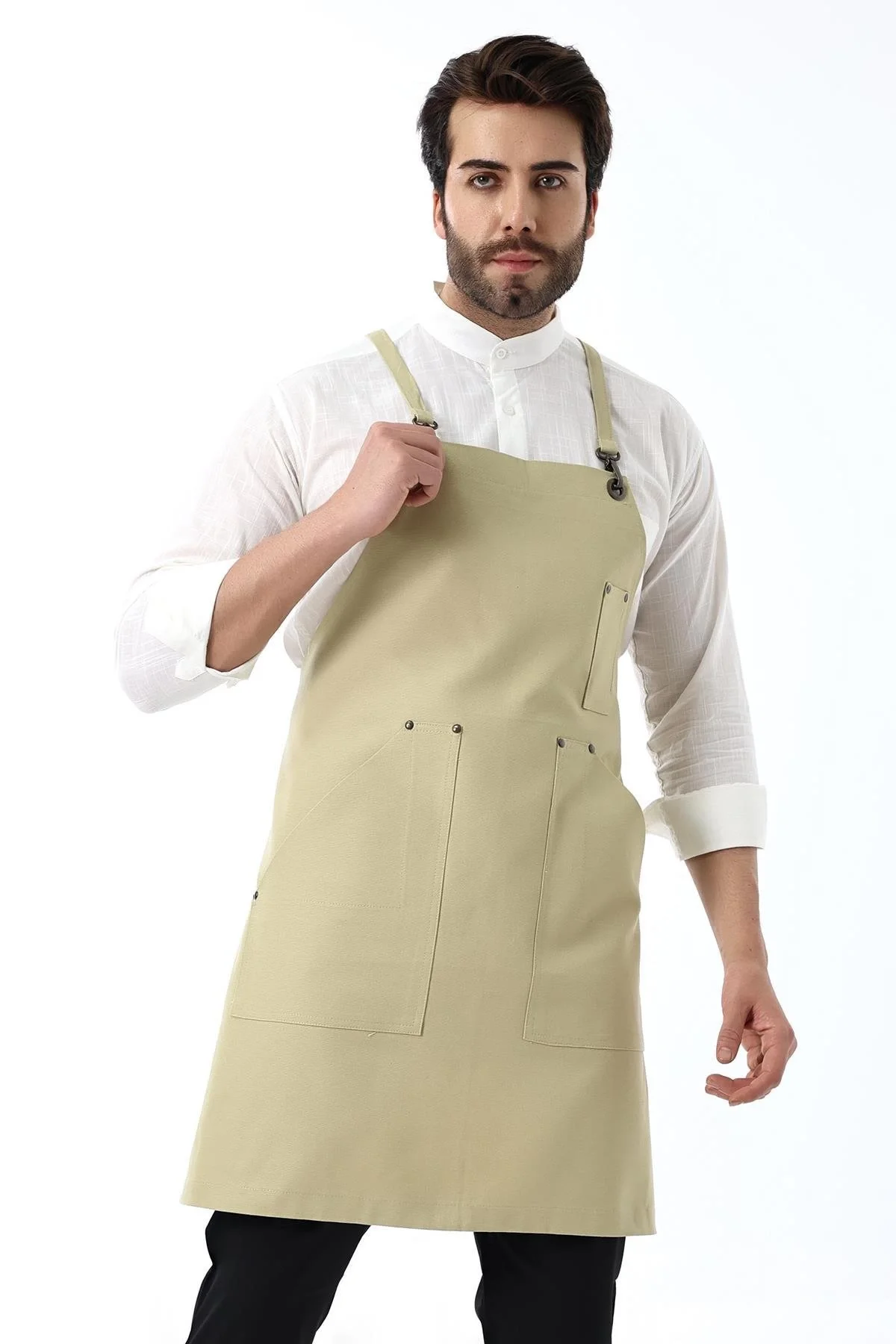 Barista Boyundan Askılı Önlük Kanguru Cepli - Bej