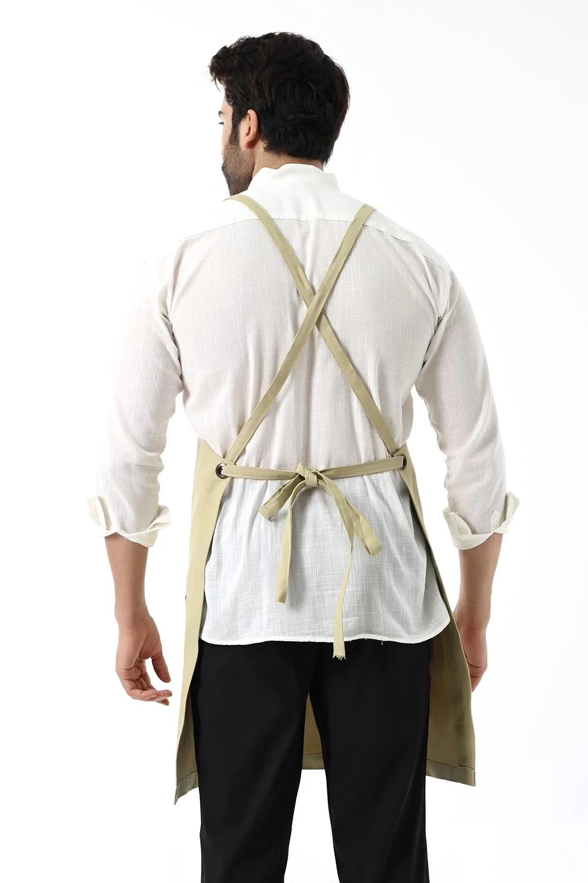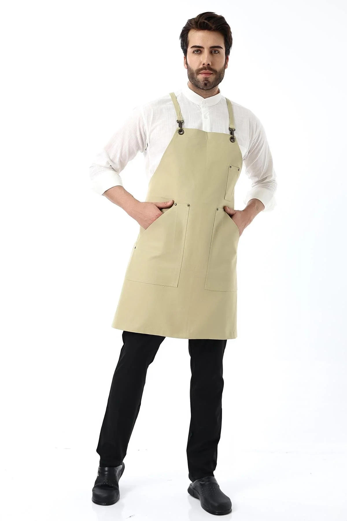Barista Boyundan Askılı Önlük Çift Cepli - Bej