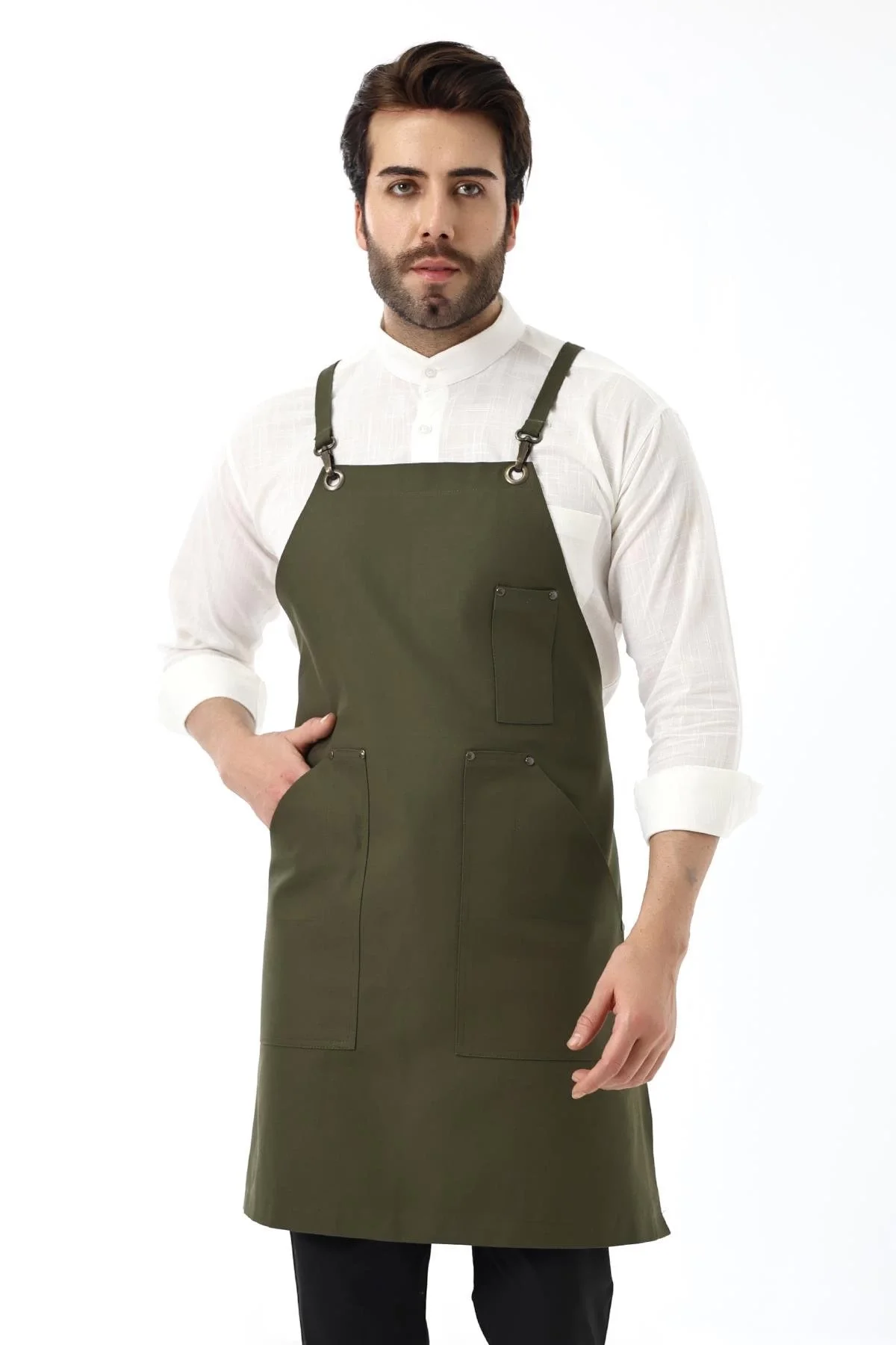 Barista Boyundan Askılı Önlük Çift Cepli - Yeşil