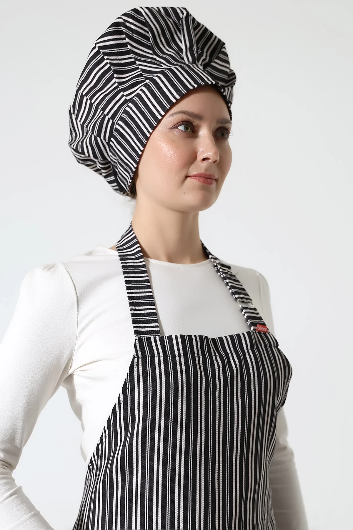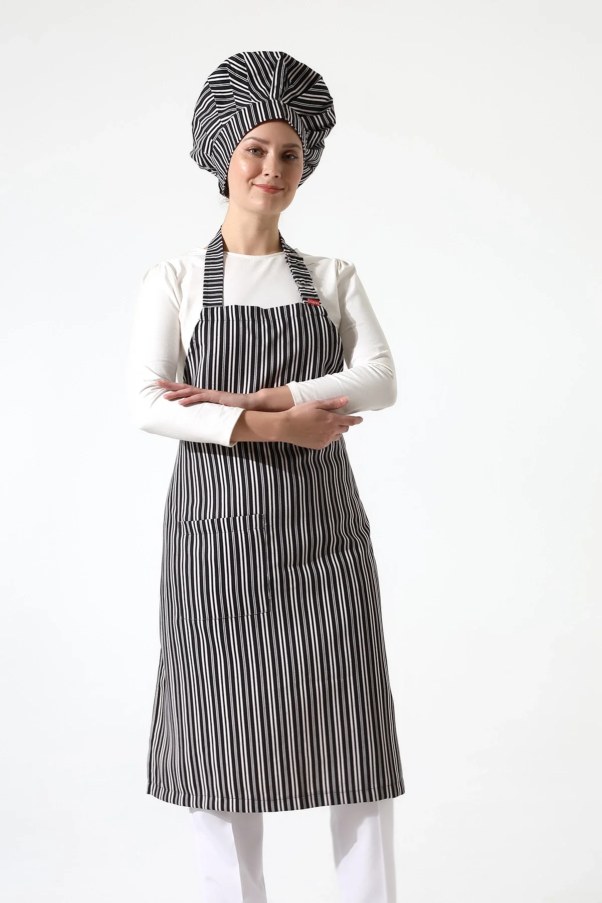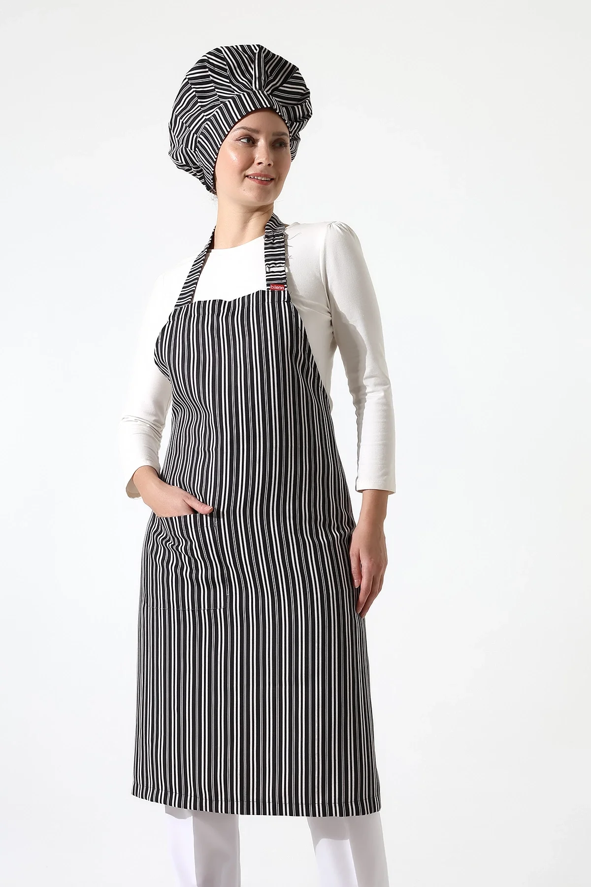 Desenli Askılı Önlük - 2502 Siyah Merdane