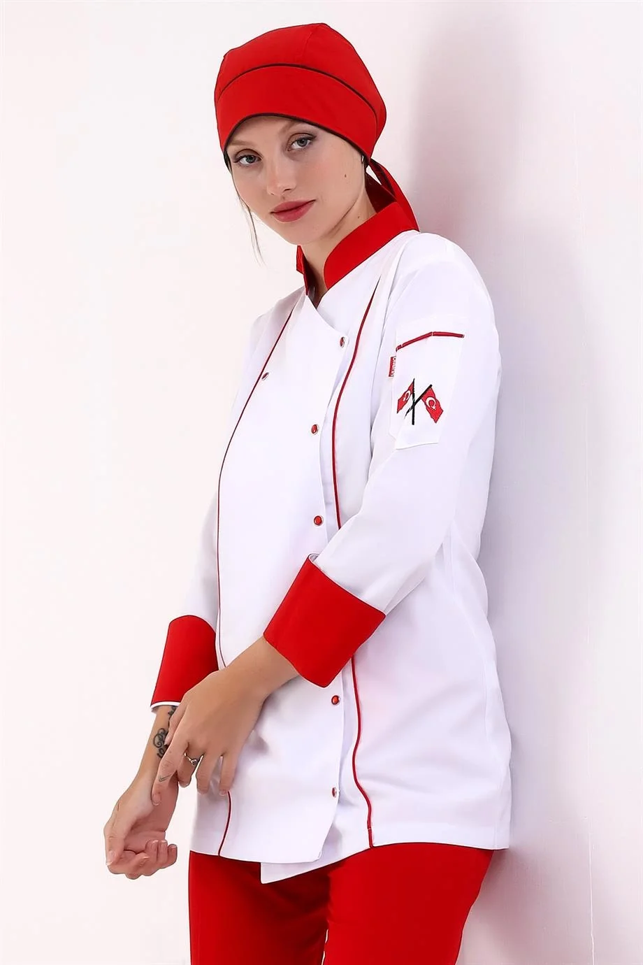 Kadın Aşçı Ceket 01 - Siyah Kırmızı Biye