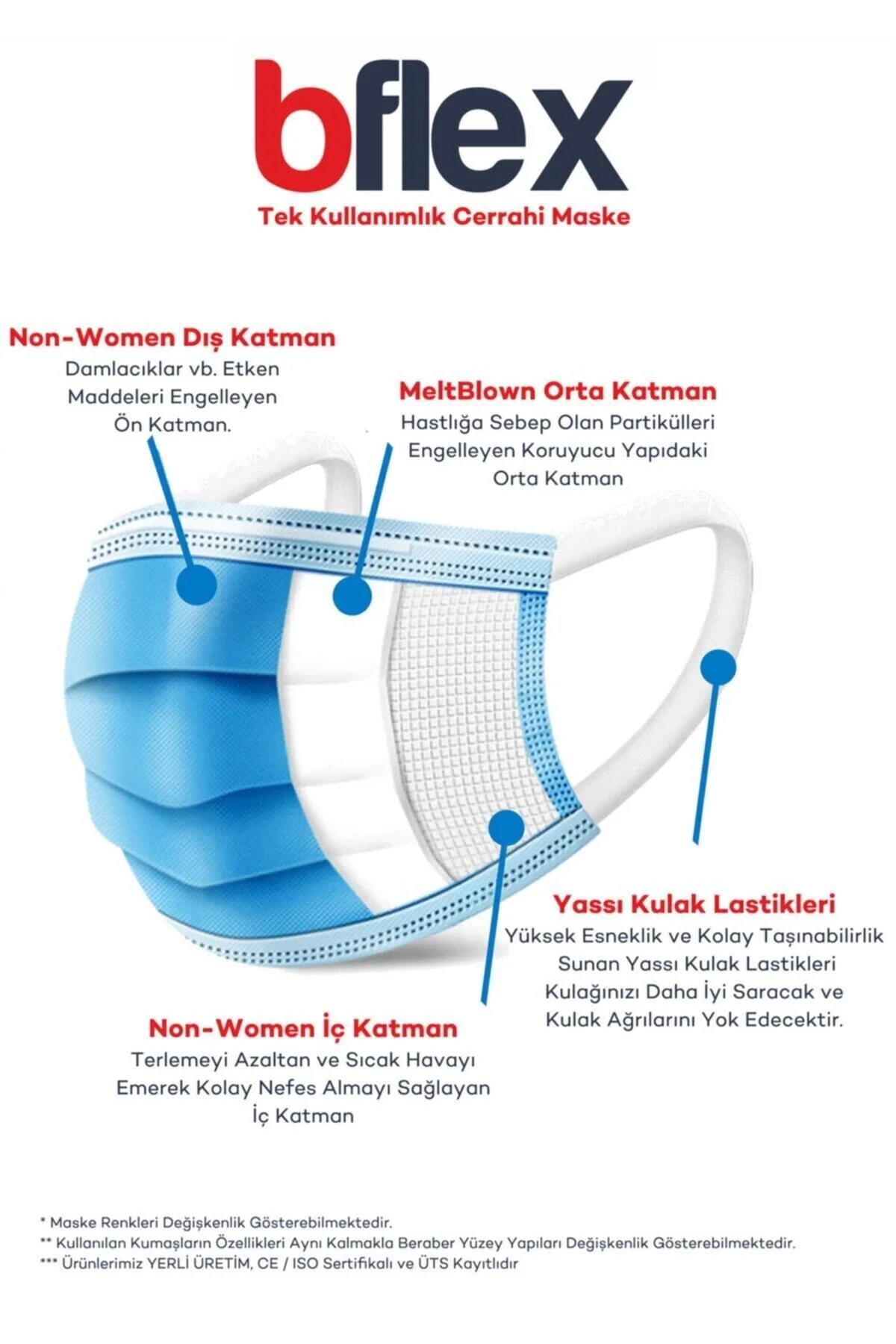 İNCE LASTİKLİ CERRAHİ MASKE 50 Lİ - BEYAZ - STANDART