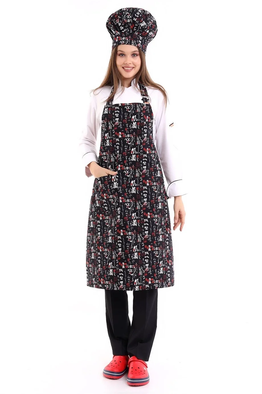 Desenli Askılı Önlük - 3802 Kılçık Siyah