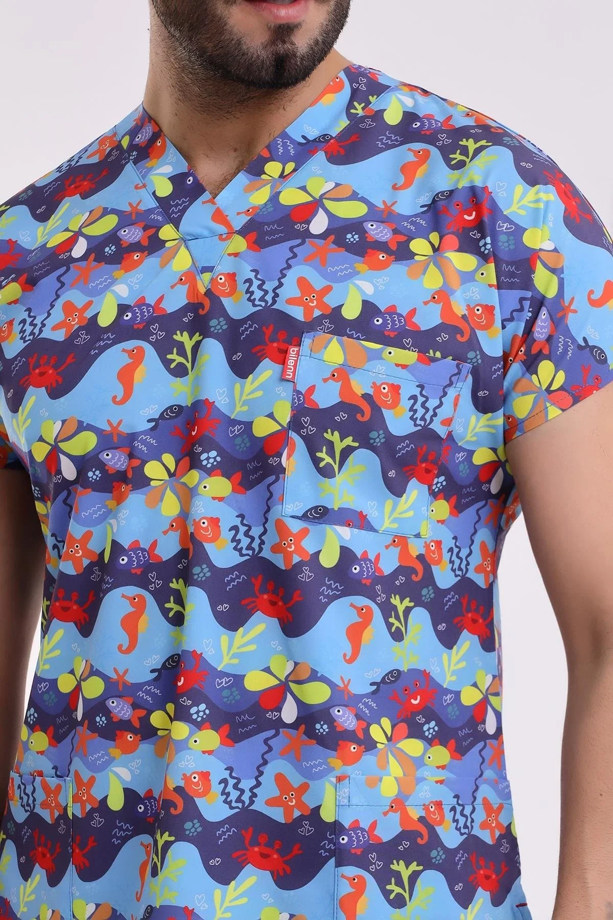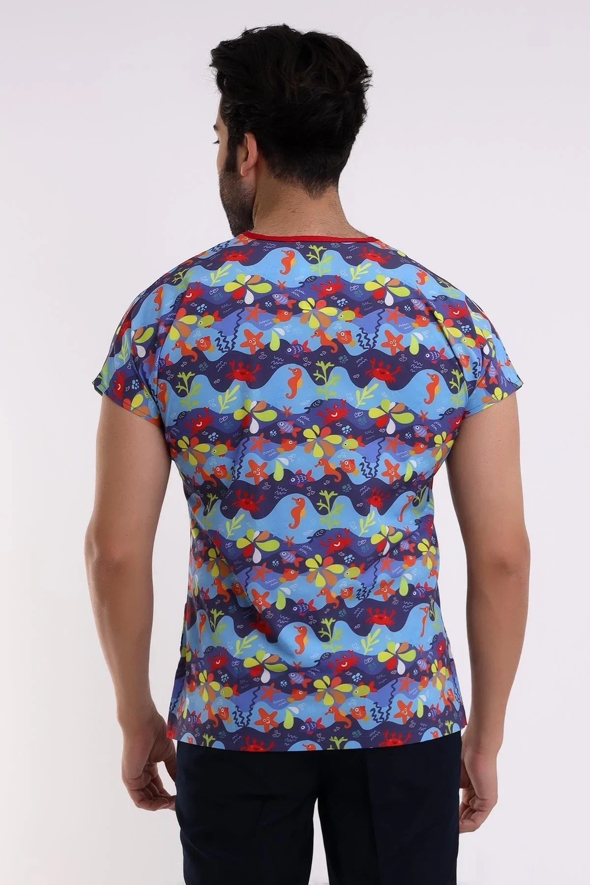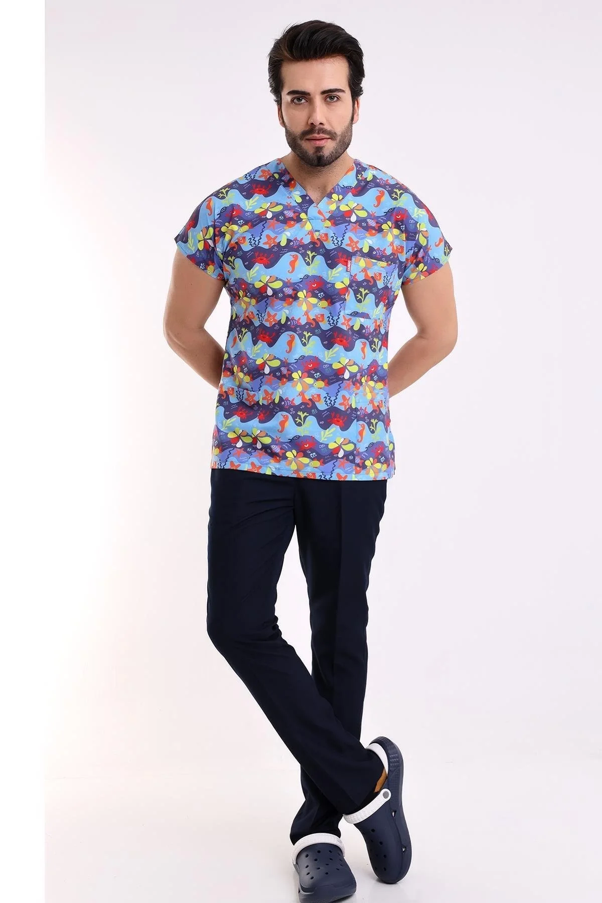 Yarasa Kol Dijital Unisex Desenli Üst - 6525 Lacivert Stetoskop
