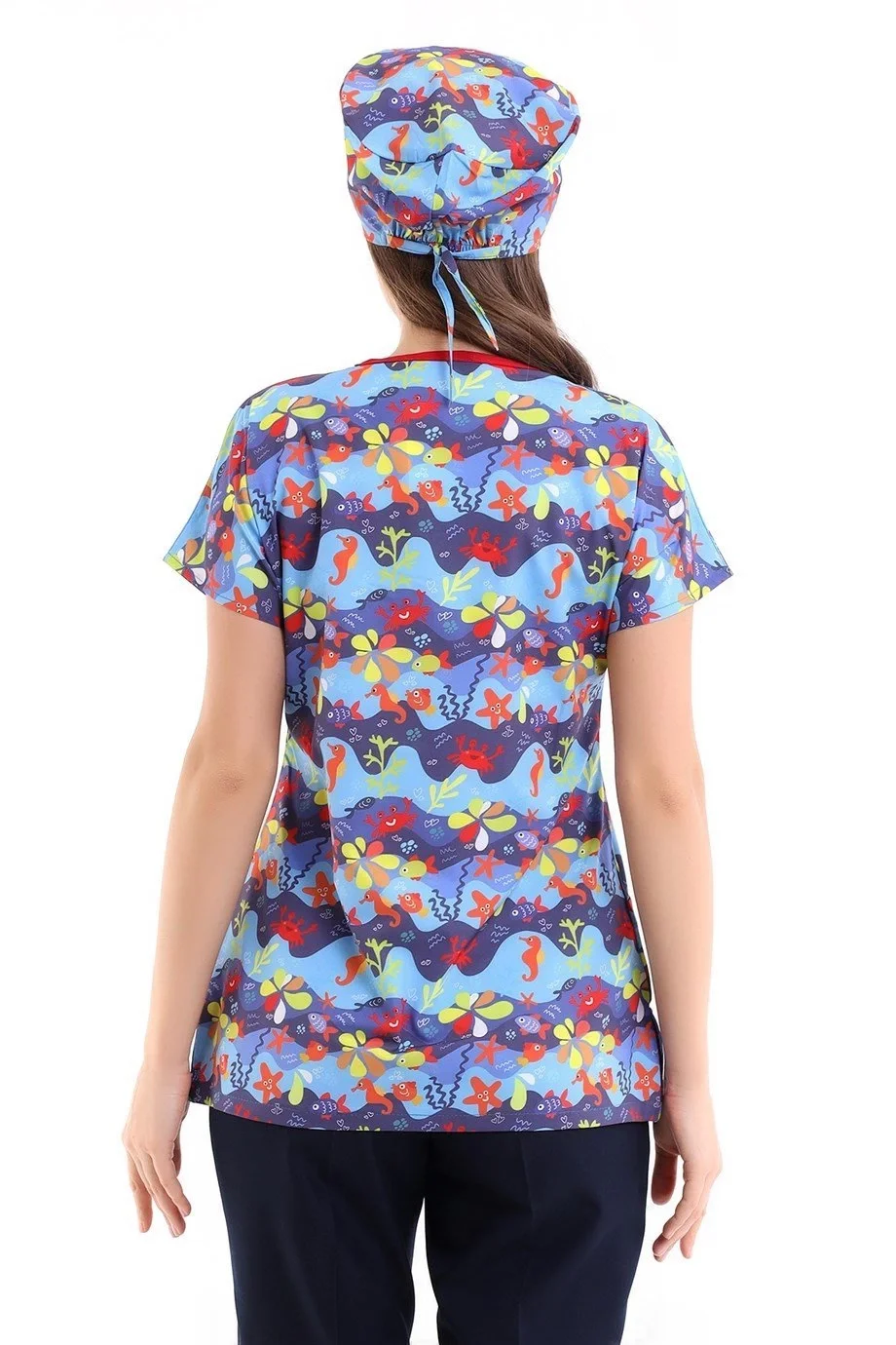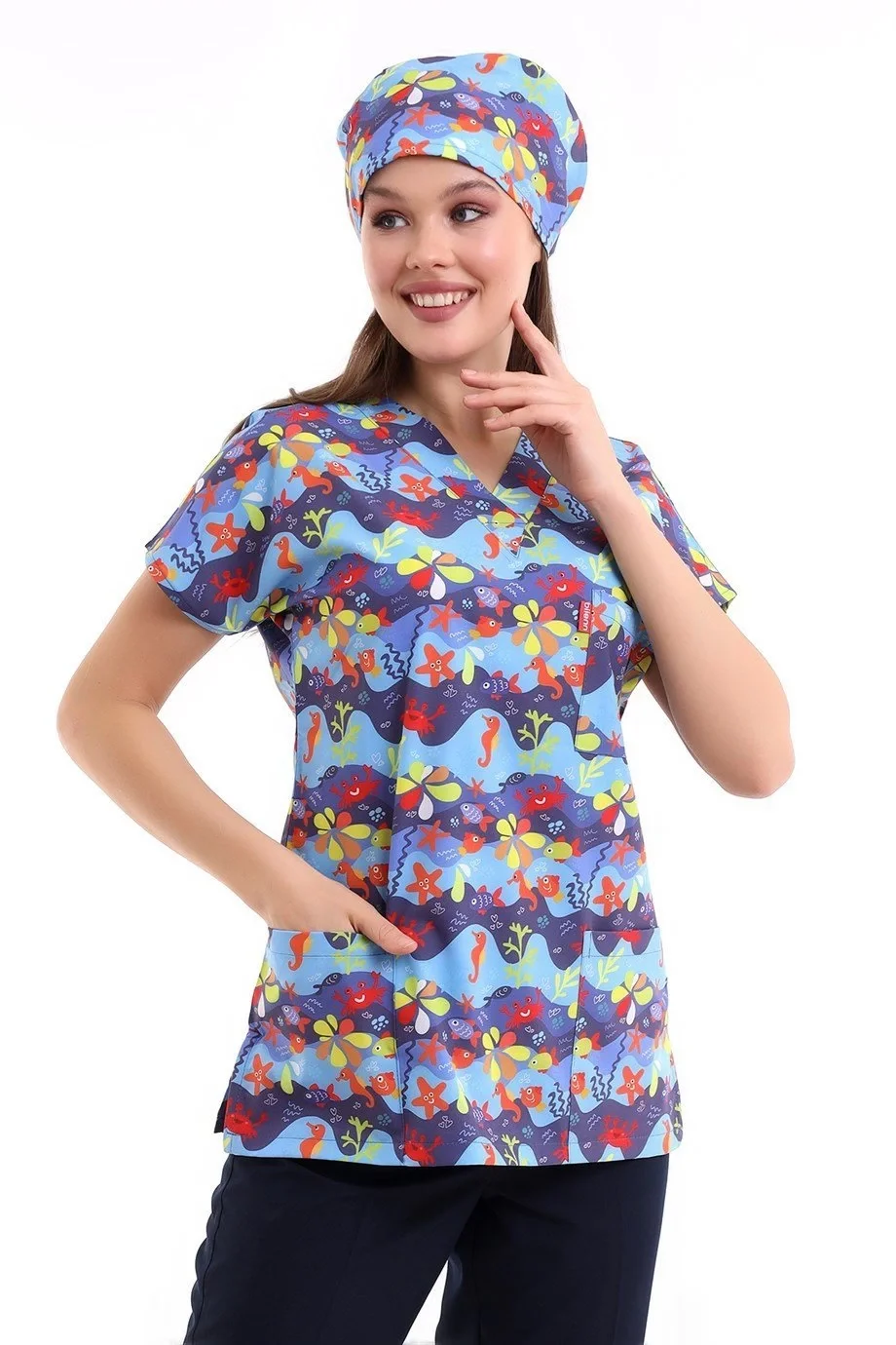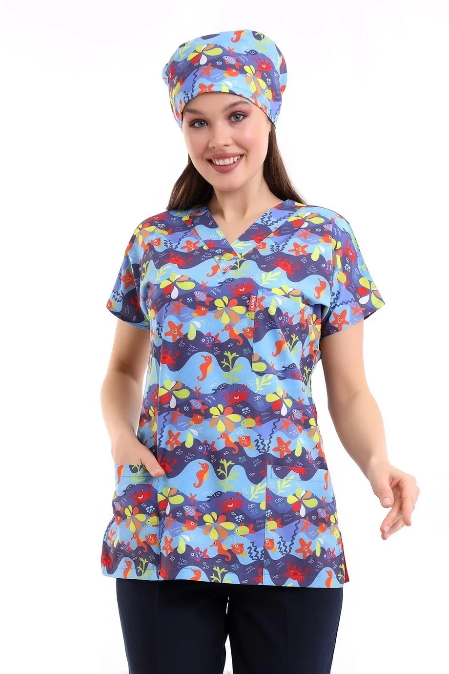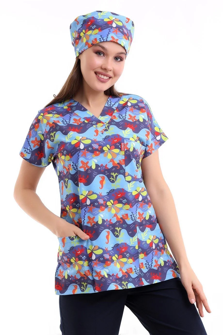 Yarasa Kol Dijital Unisex Desenli Üst - 6525 Lacivert Stetoskop