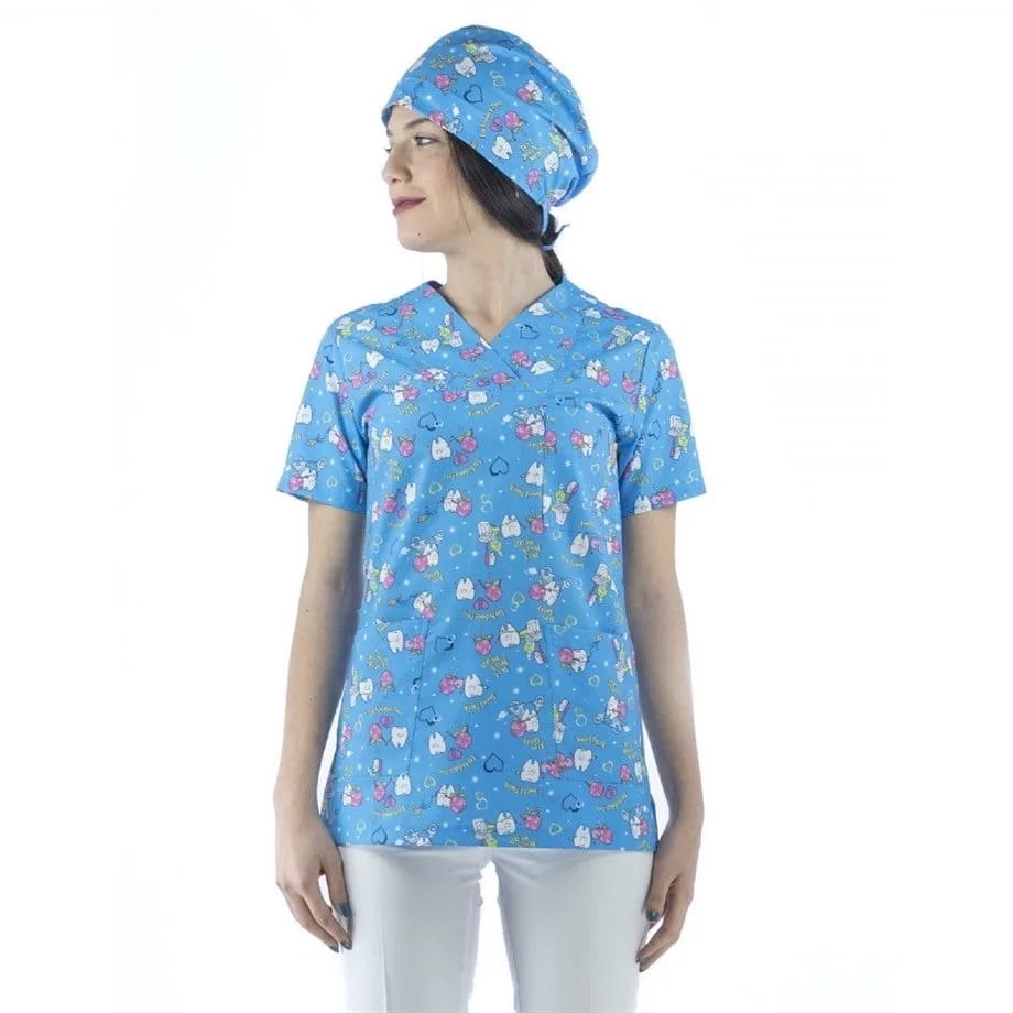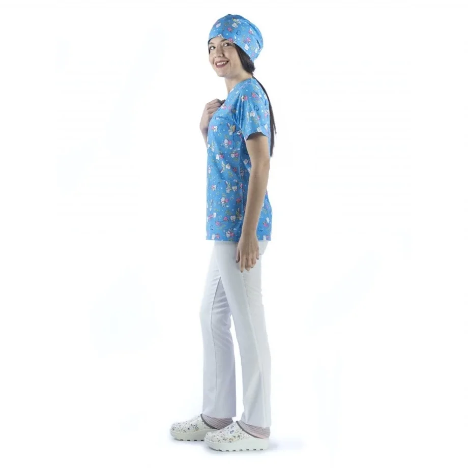 Desenli Tek Üst Scrubs Forma