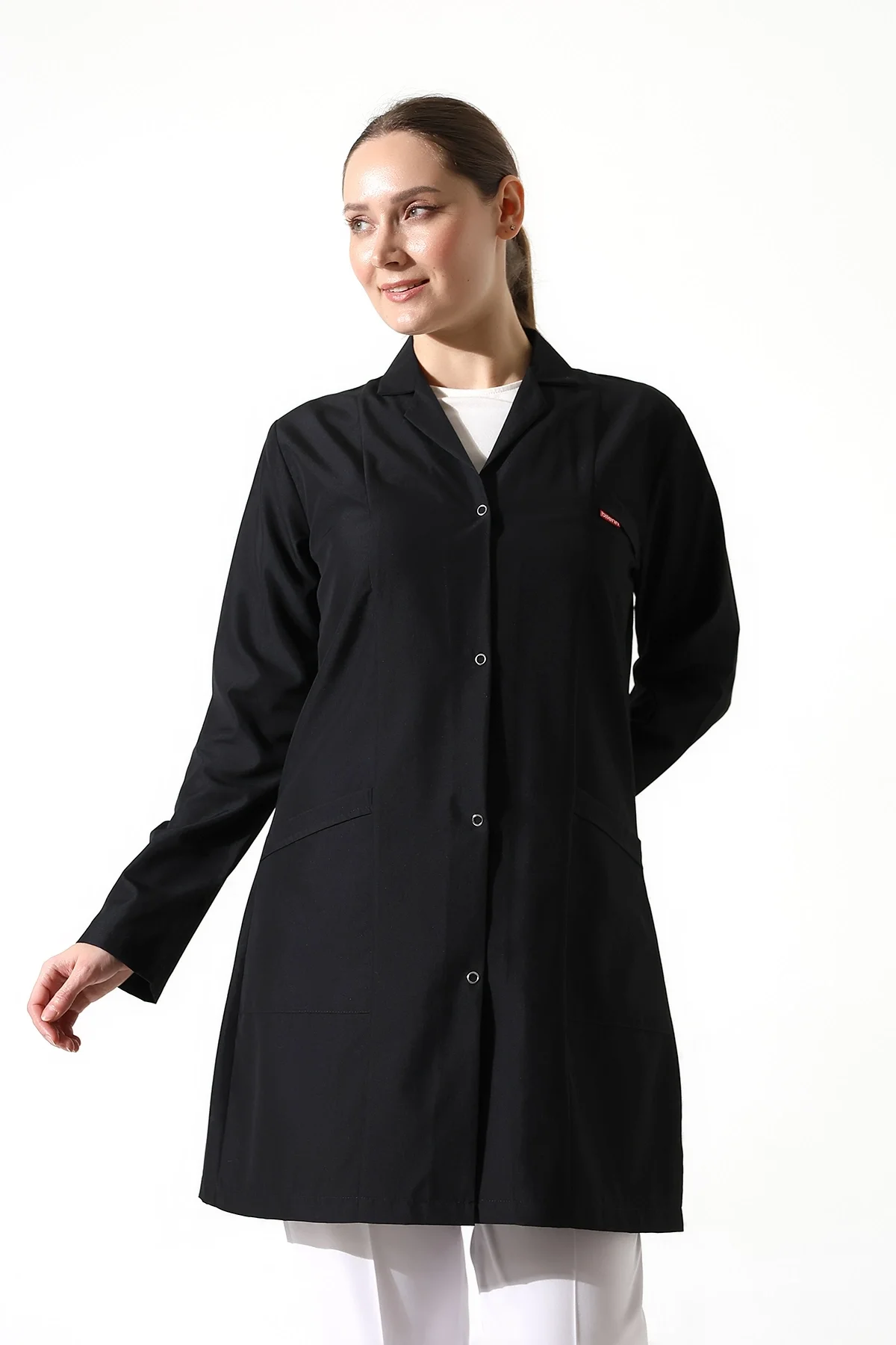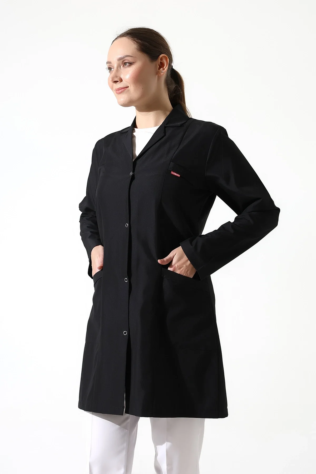 Doktor Öğretmen Kadın Önlük Ara Boy Ceket Yaka - Pöti Kare Lacivert