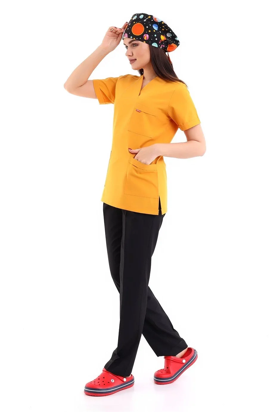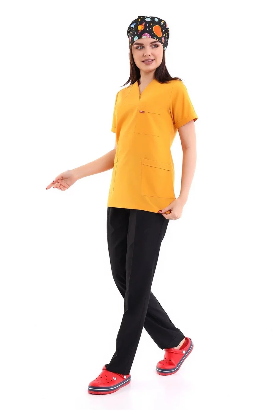 Desenli Tek Üst Scrubs Forma