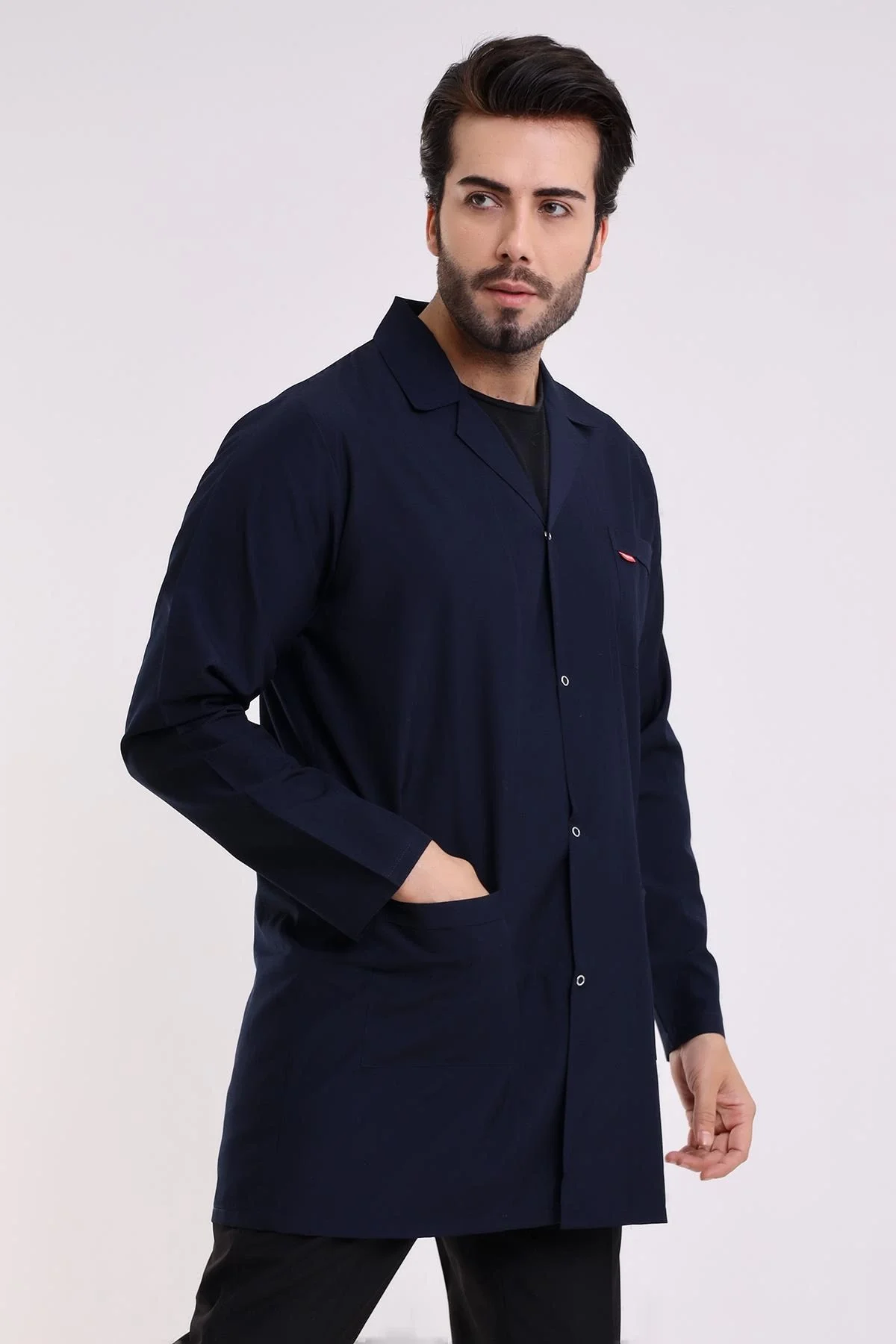 Doktor Öğretmen Erkek Önlük Ara Boy Ceket Yaka - 56 Koyu Saks