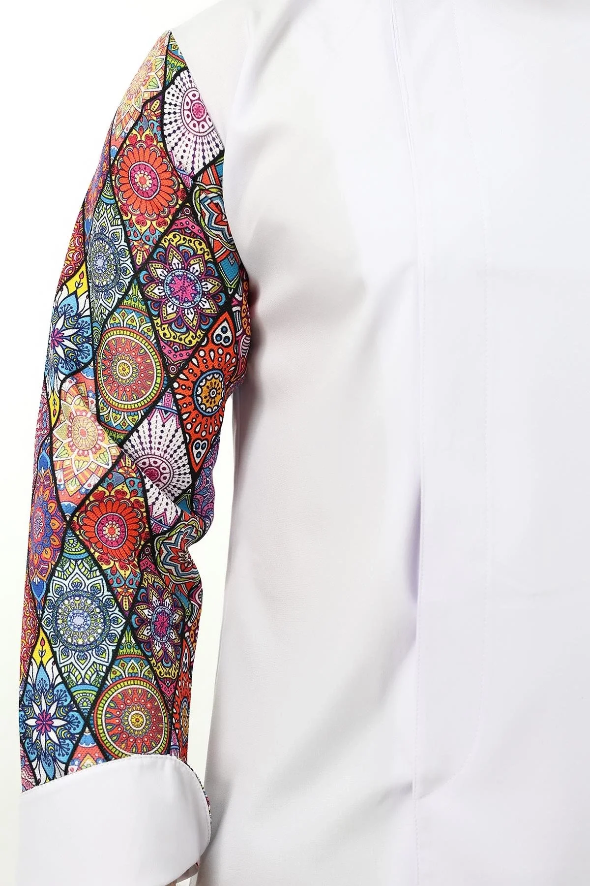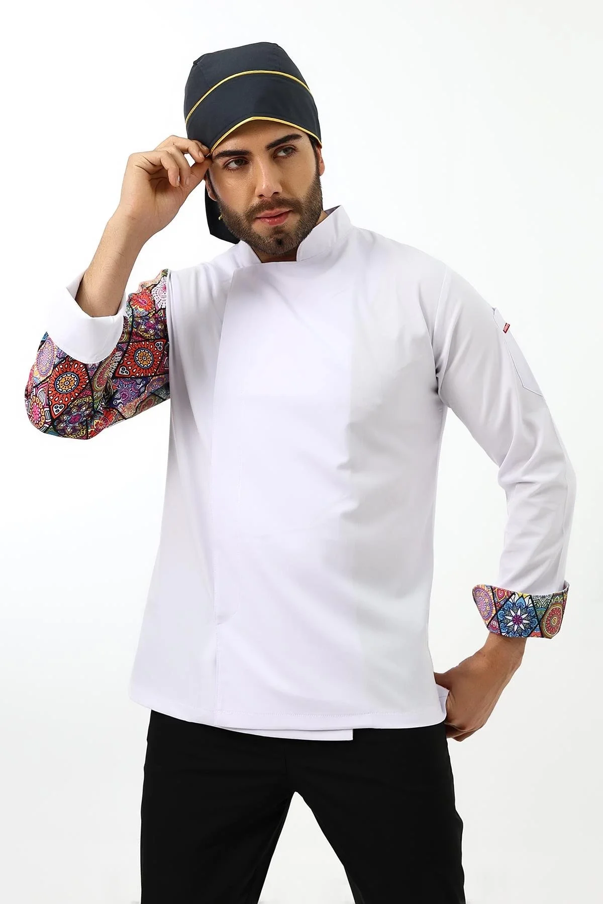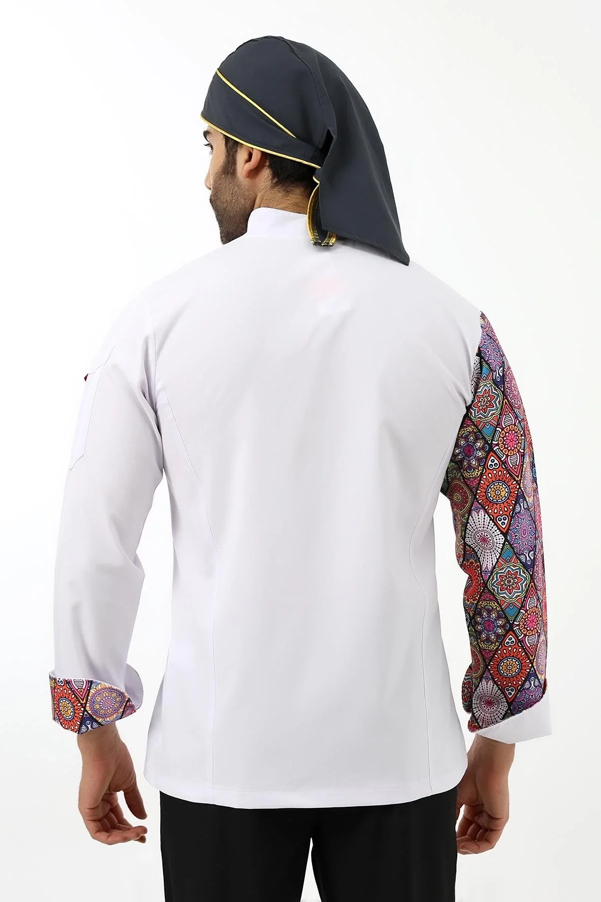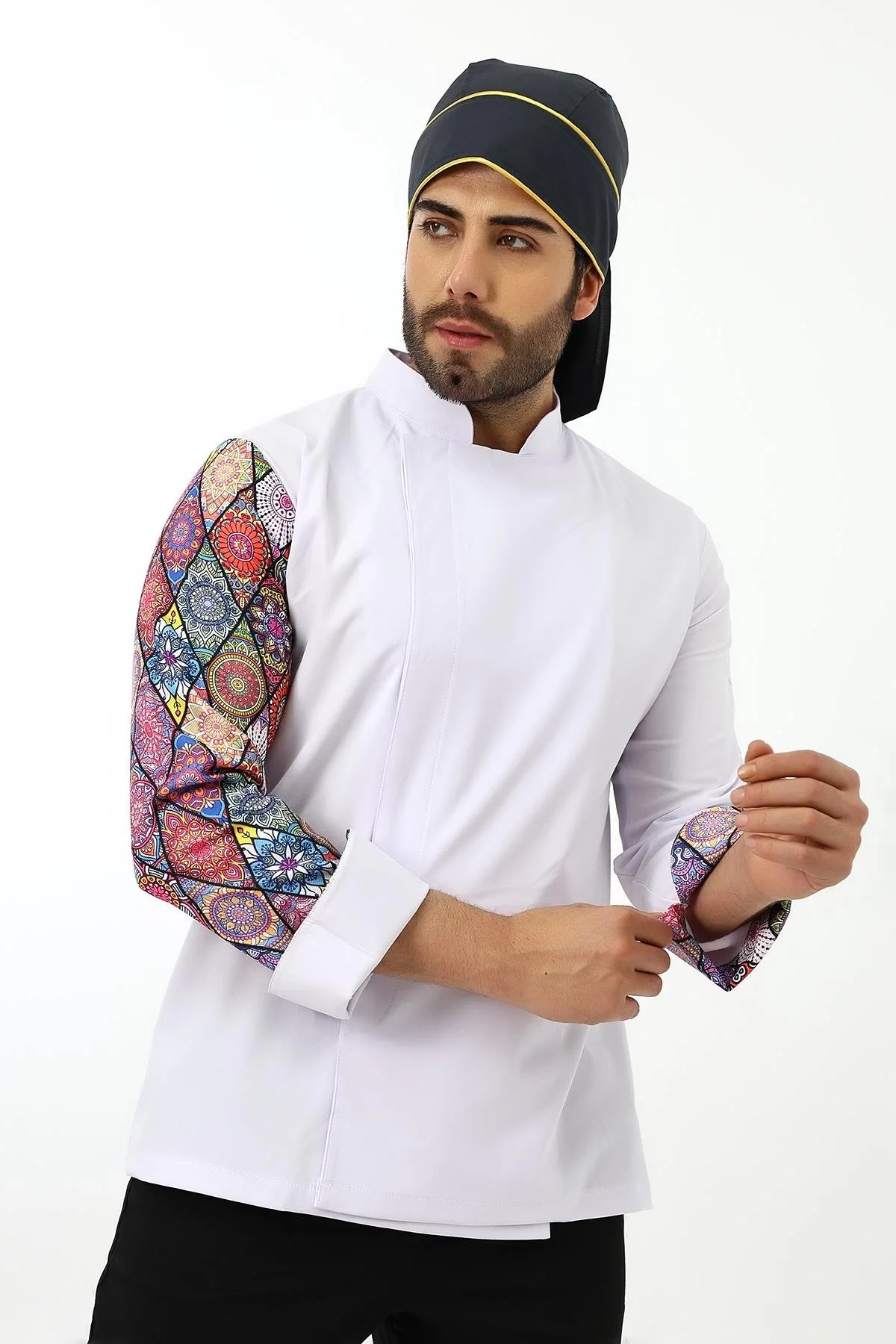 Erkek Likralı Kol Desenli Aşçı Ceket - 6401 Beyaz Renkli Daire
