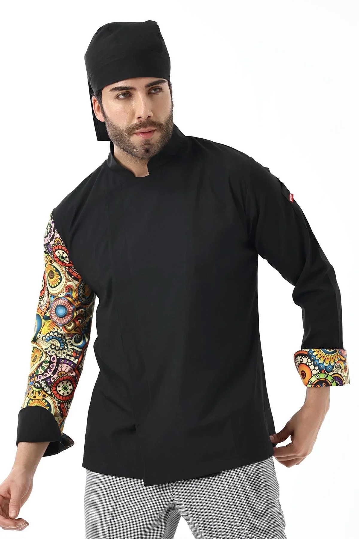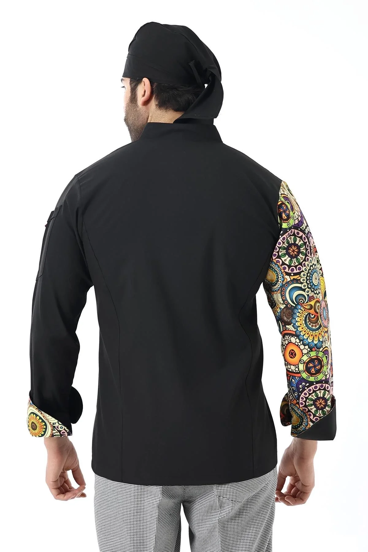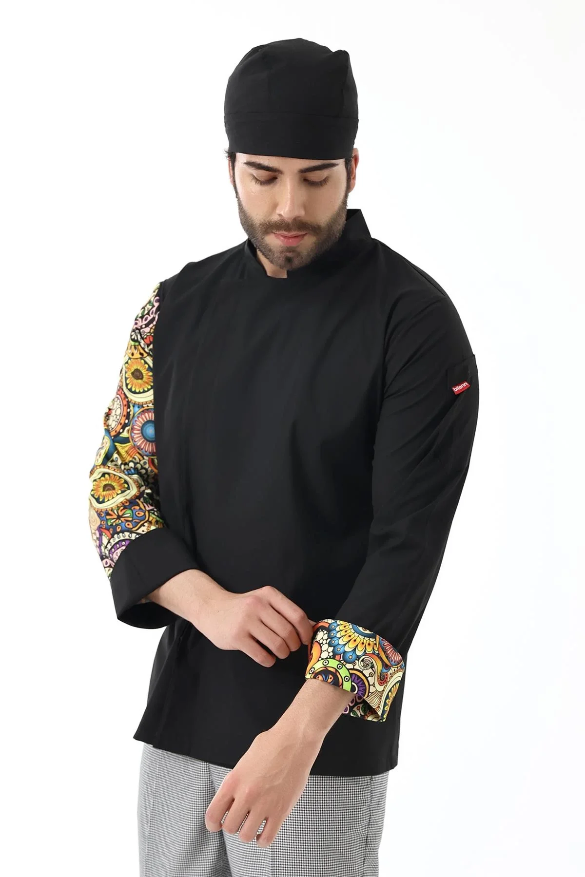 Erkek Likralı Kol Desenli Aşçı Ceket - 6403 Siyah Çini