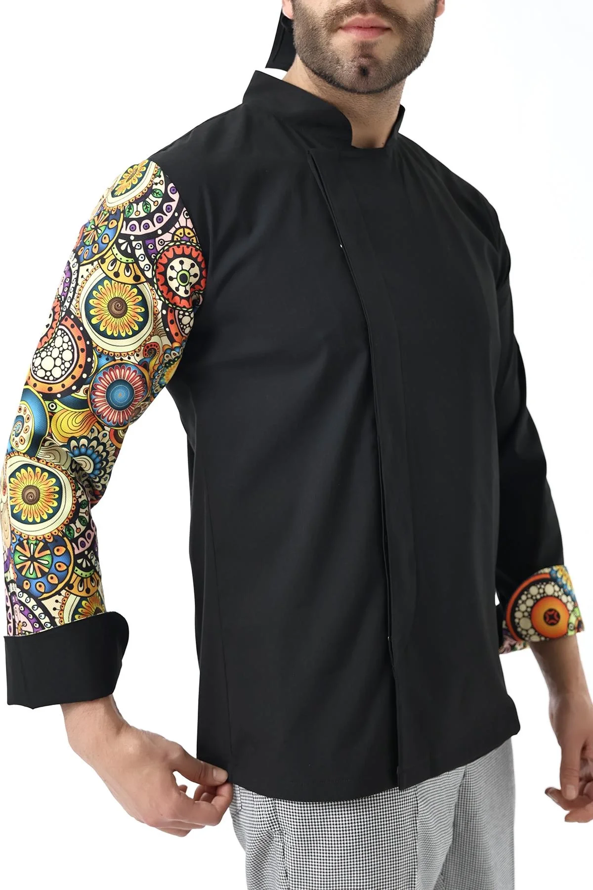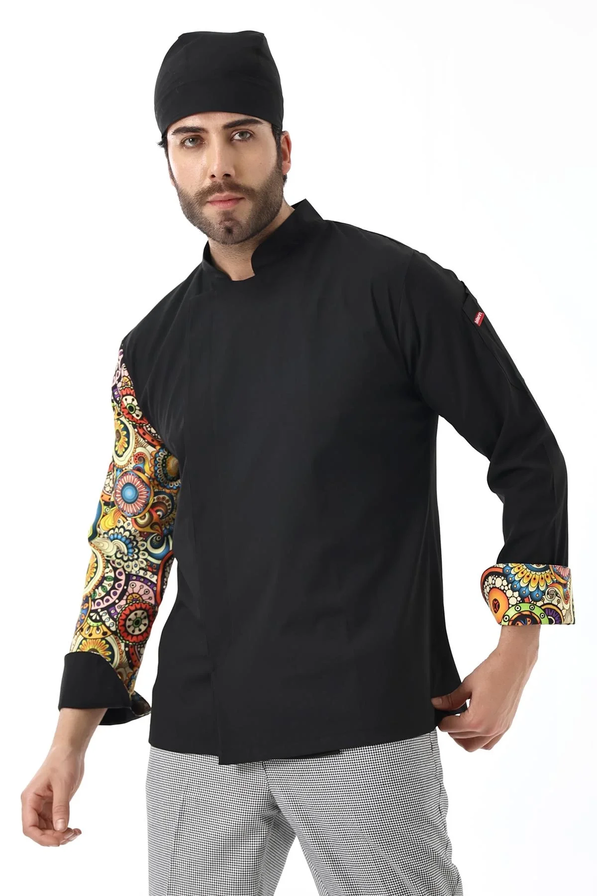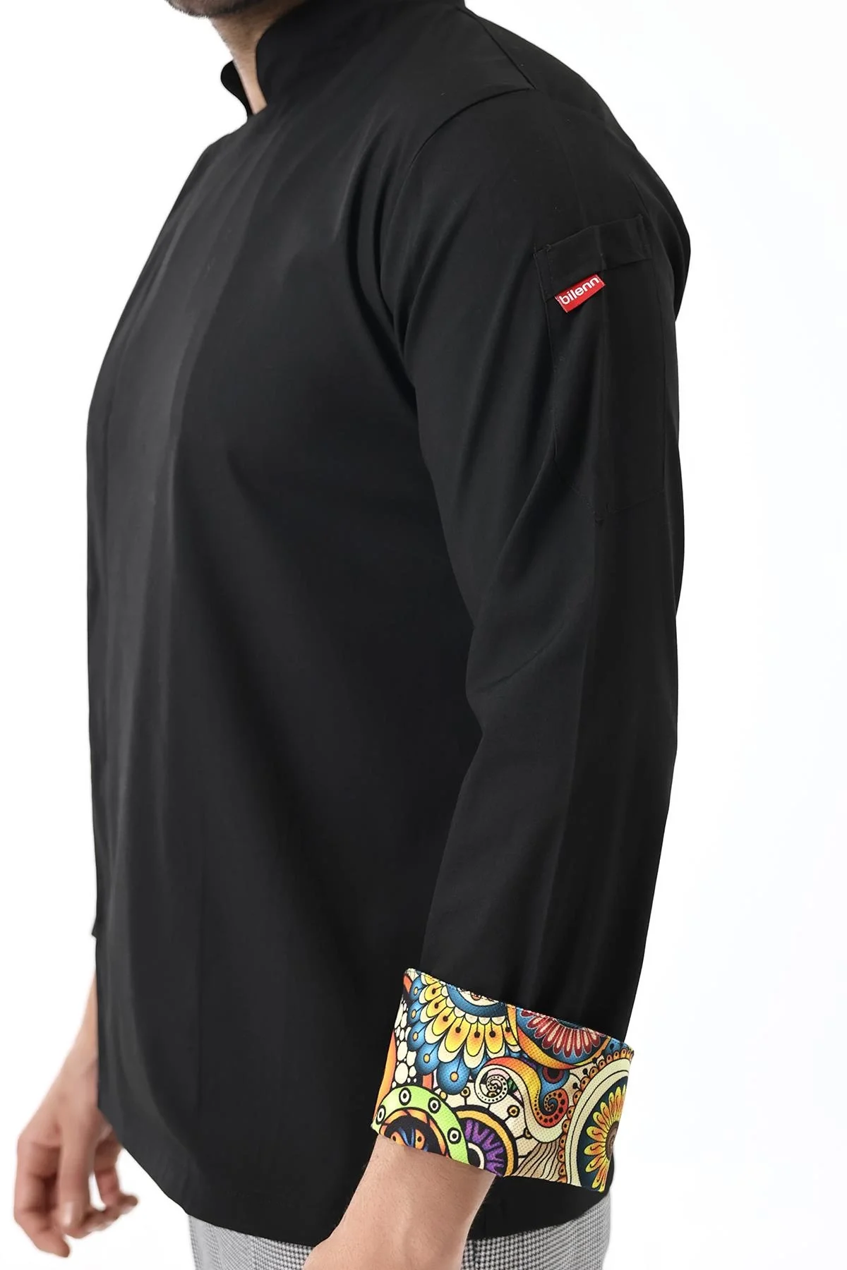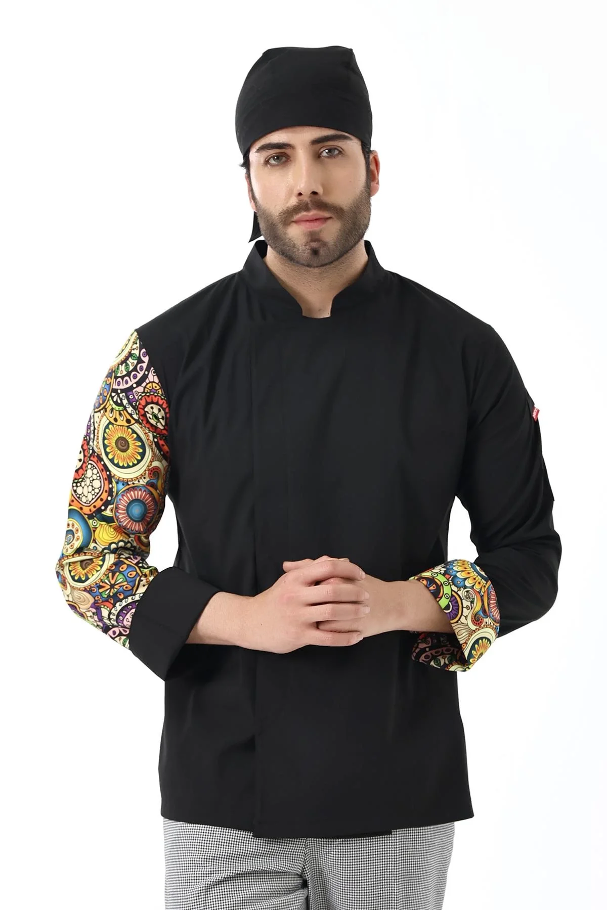 Erkek Likralı Kol Desenli Aşçı Ceket - 6403 Siyah Çini
