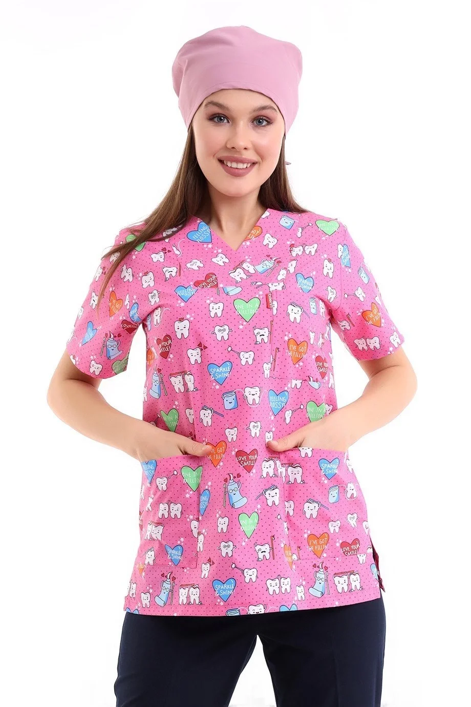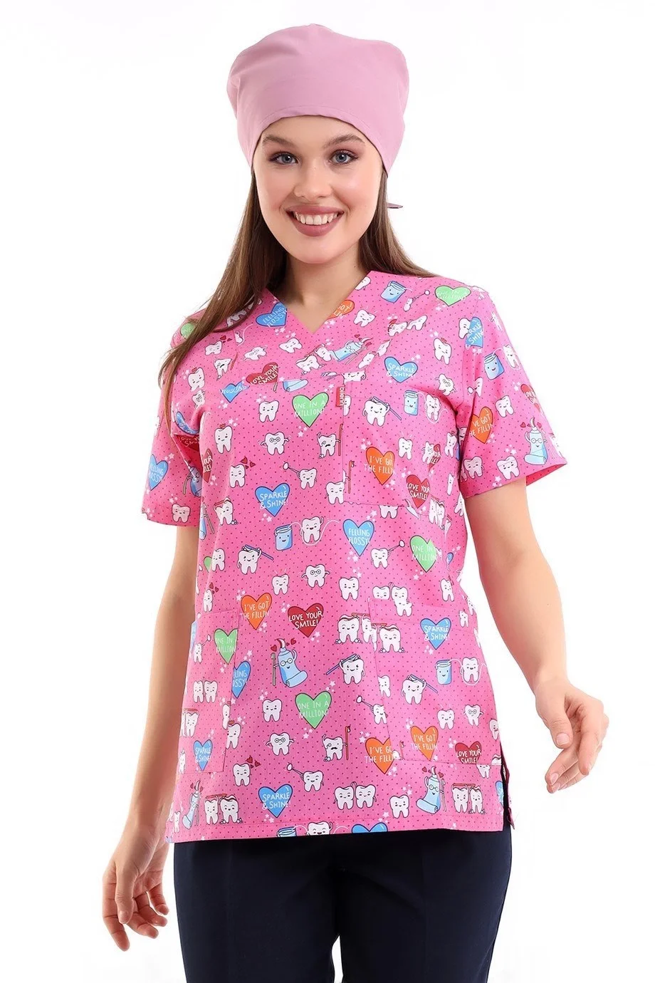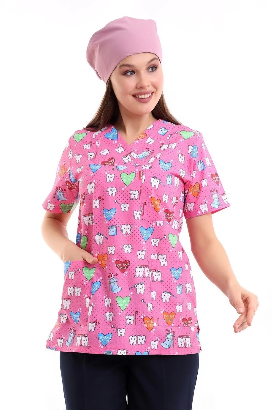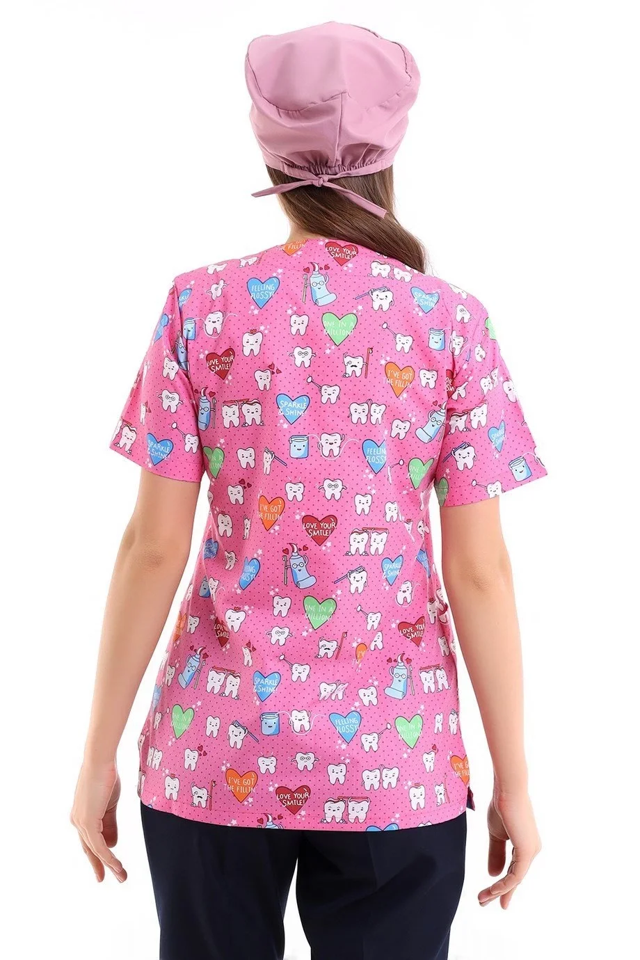 Zarf Yaka Desenli Üst - 4101 Smile Diş