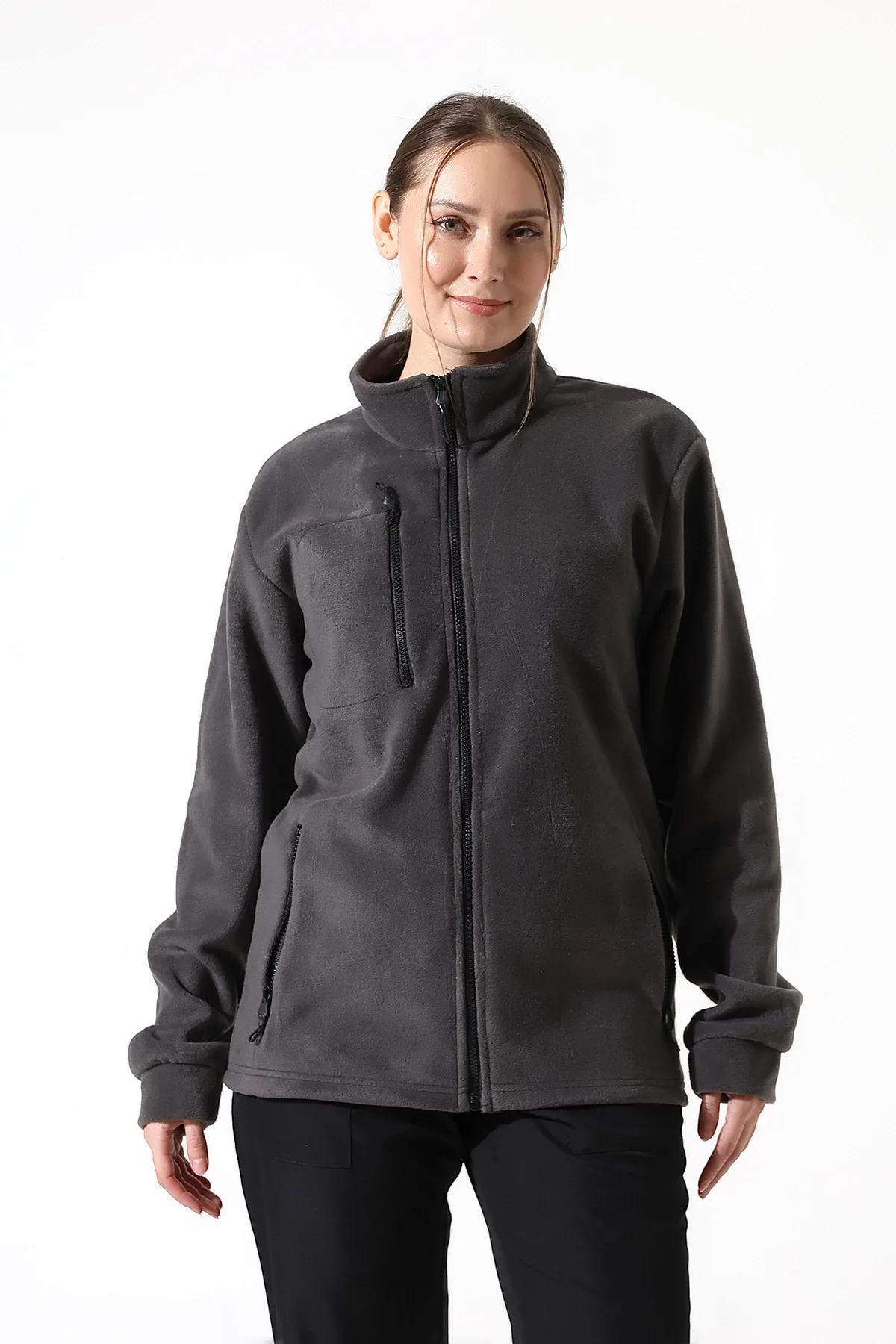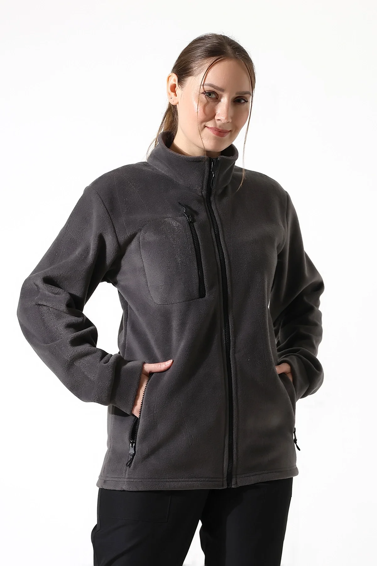 Sağ, sol ve göğüste bir adet fermuarlı cep bulunmaktadır.