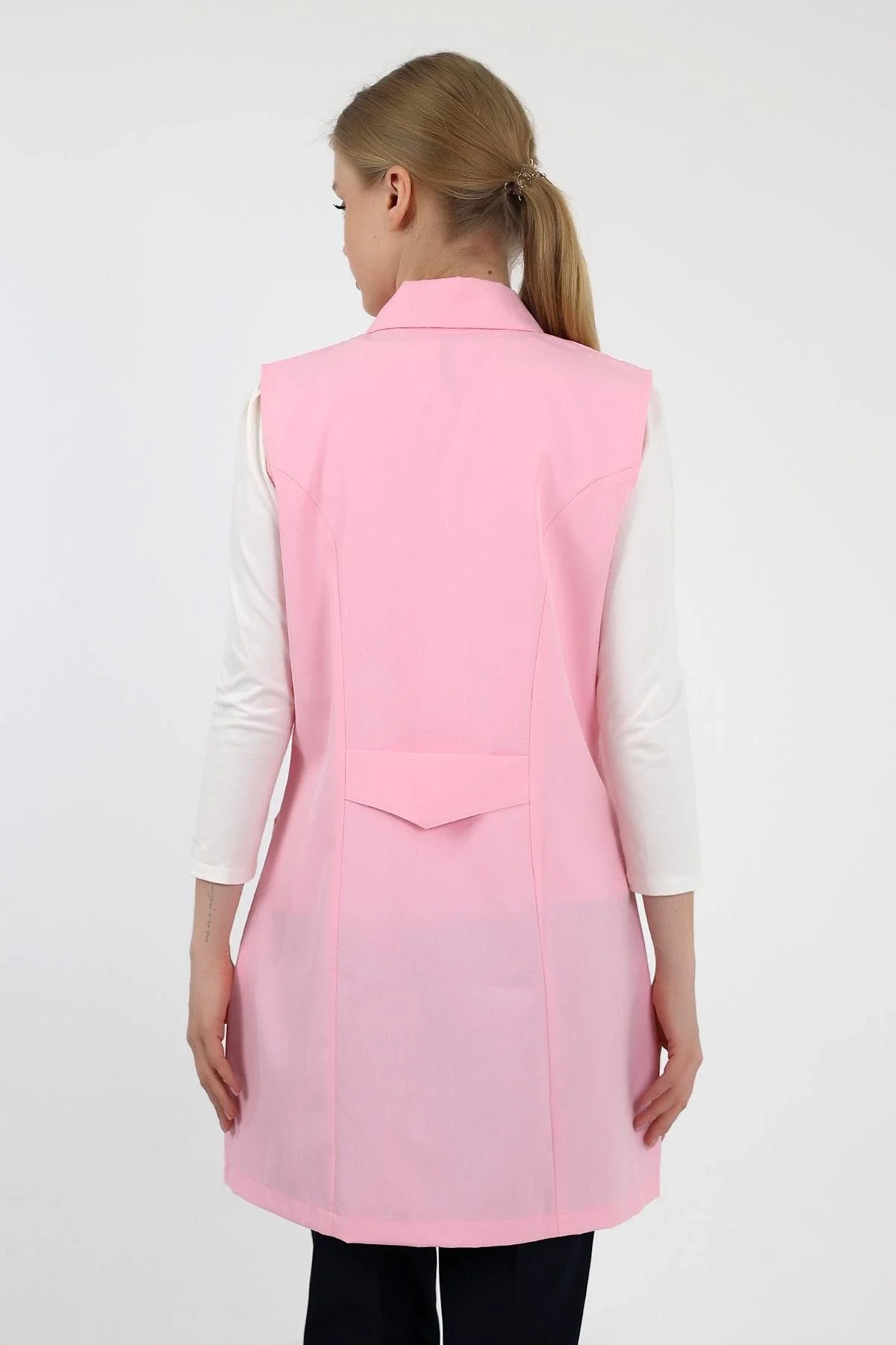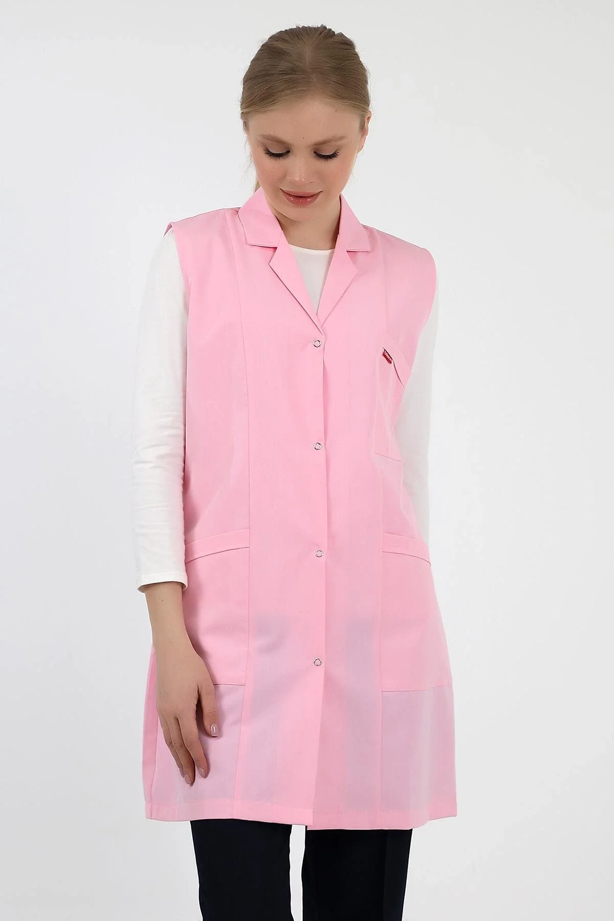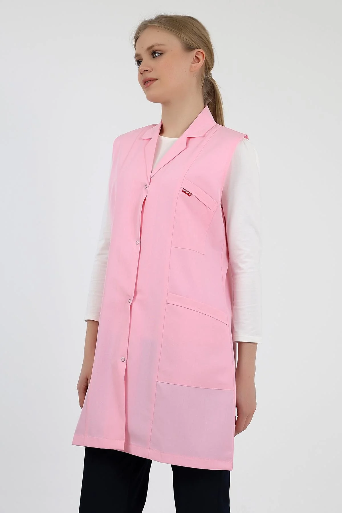 Doktor Öğretmen Kadın Önlük Ara Boy Ceket Yaka - 12 Açık Pembe