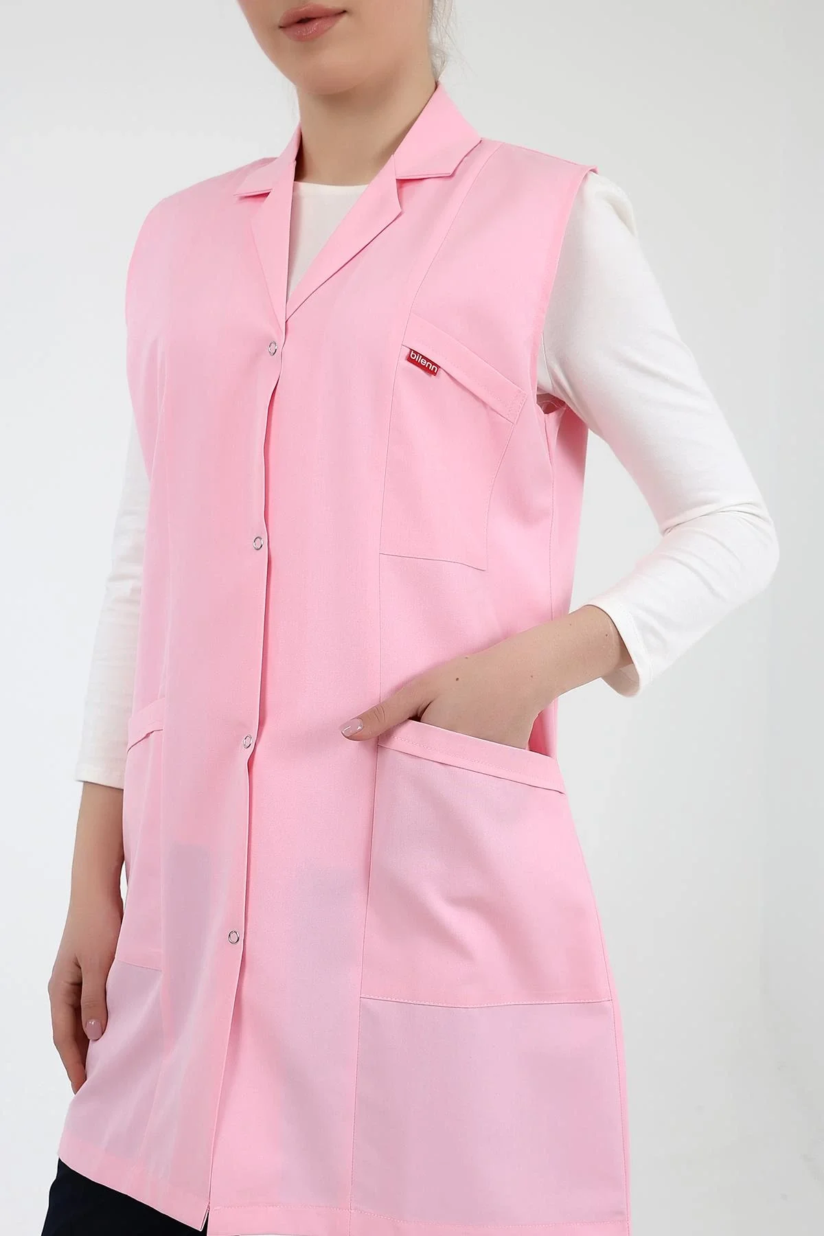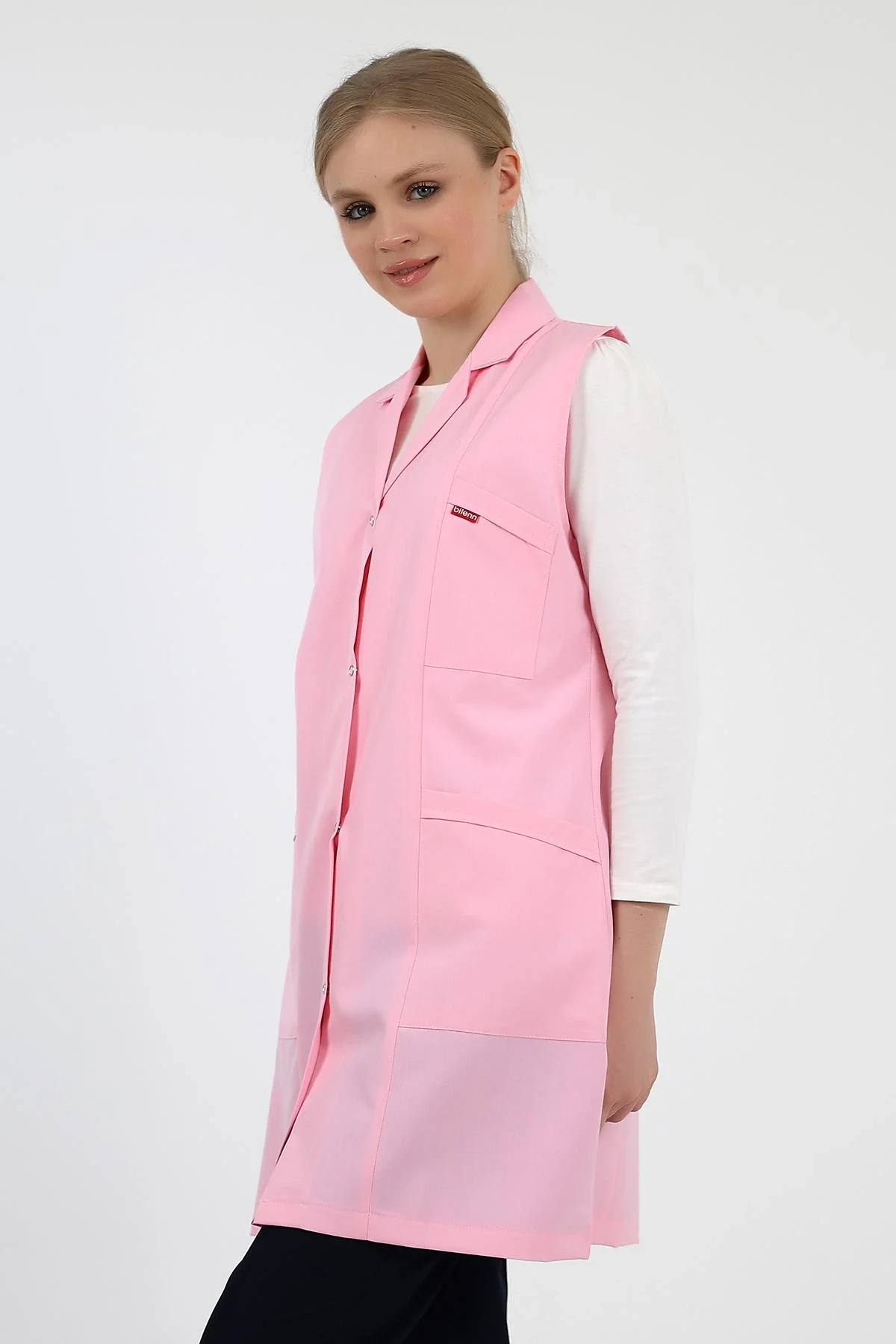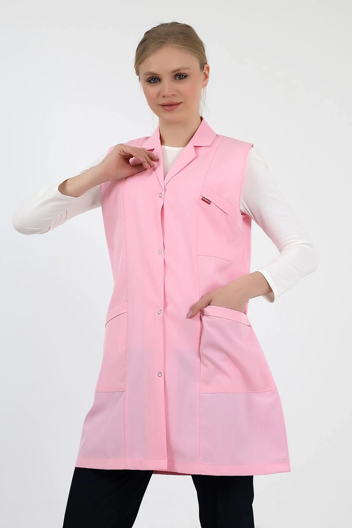 Doktor Öğretmen Kadın Önlük Ara Boy Ceket Yaka - 12 Açık Pembe