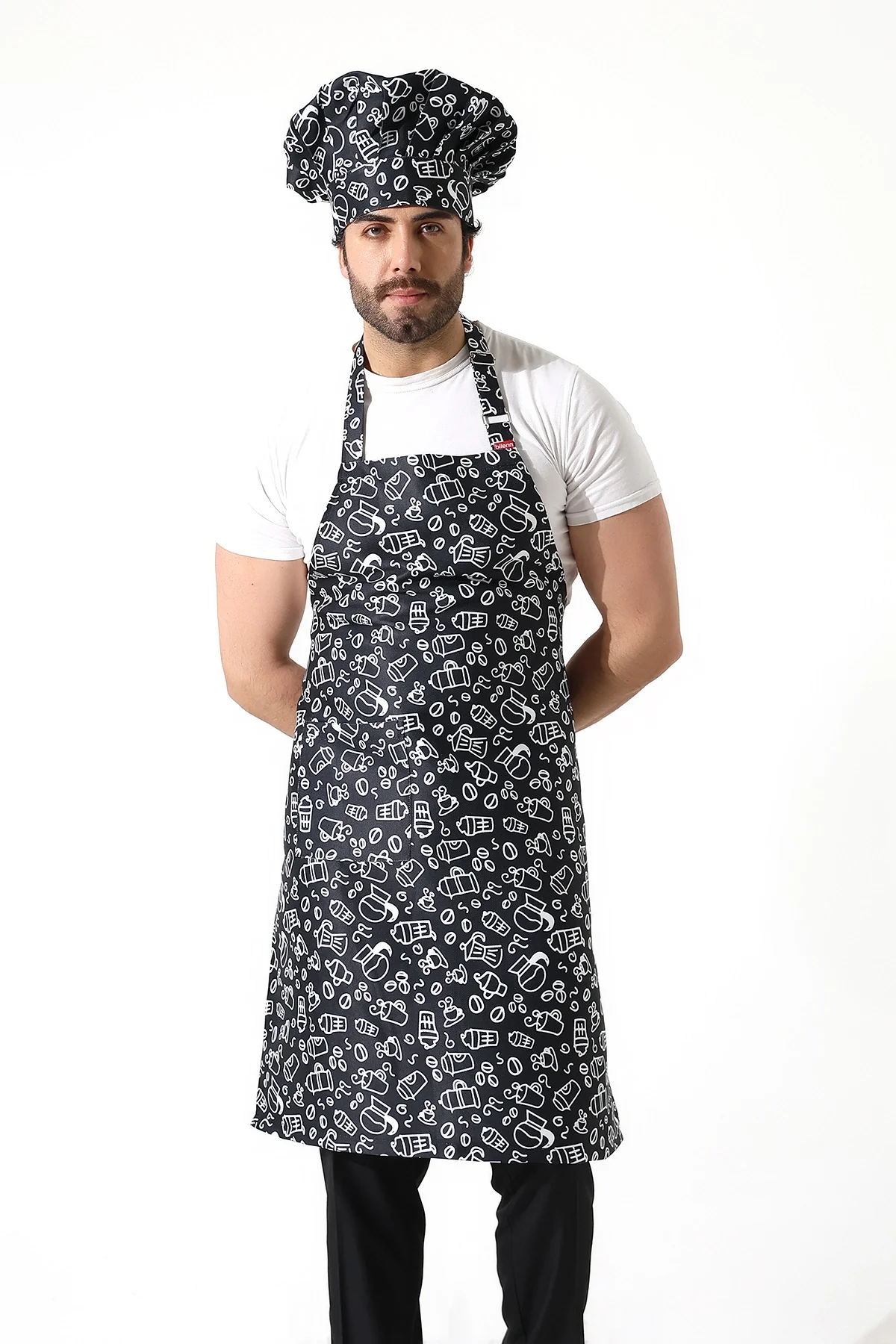 Desenli Askılı Önlük - 3802 Kılçık Siyah