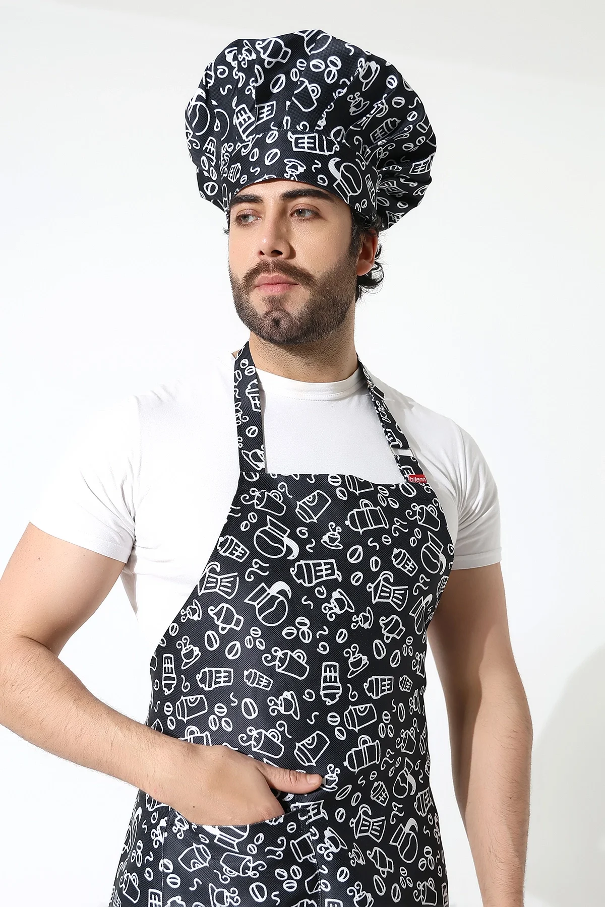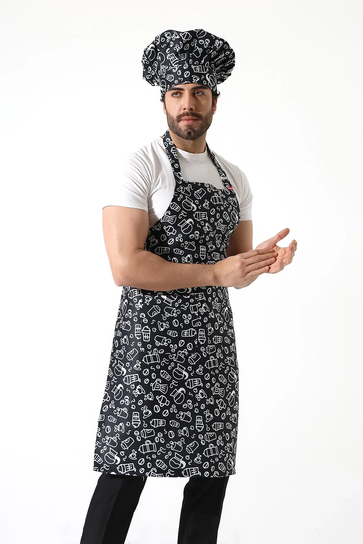 Desenli Askılı Önlük - 2502 Siyah Merdane