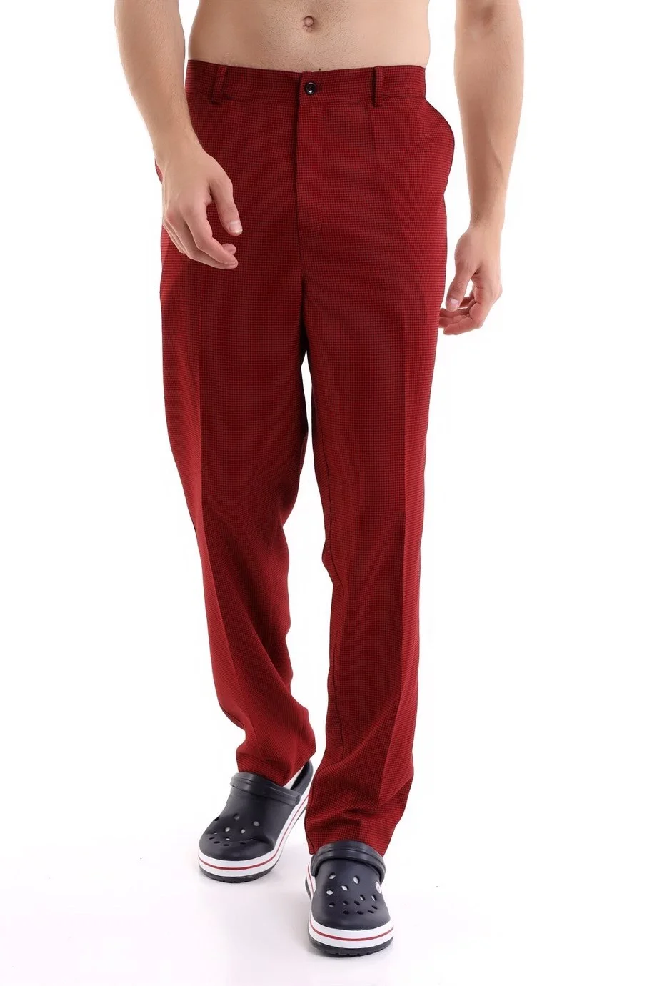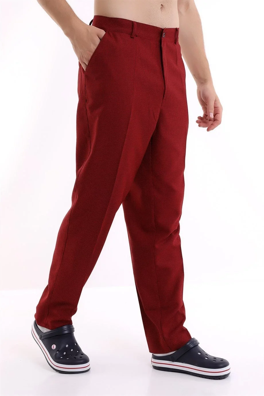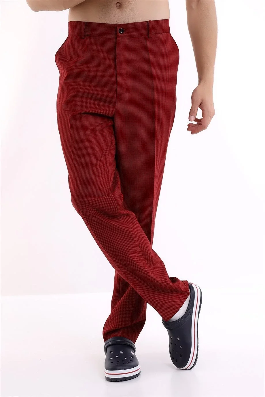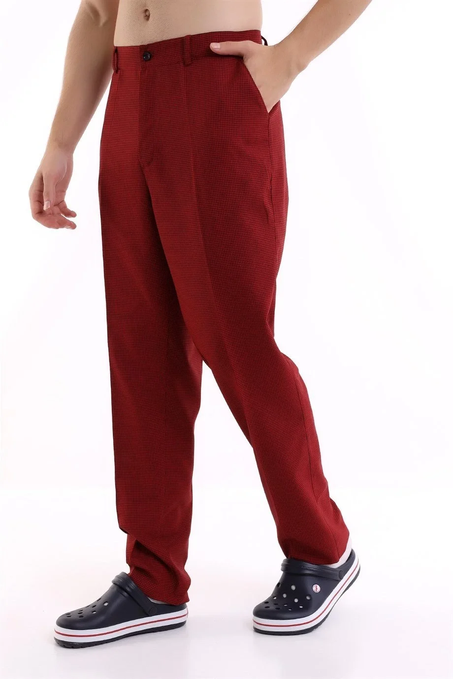 Aşçı Pantolon - 403 Kaz Ayağı Kırmızı-Siyah