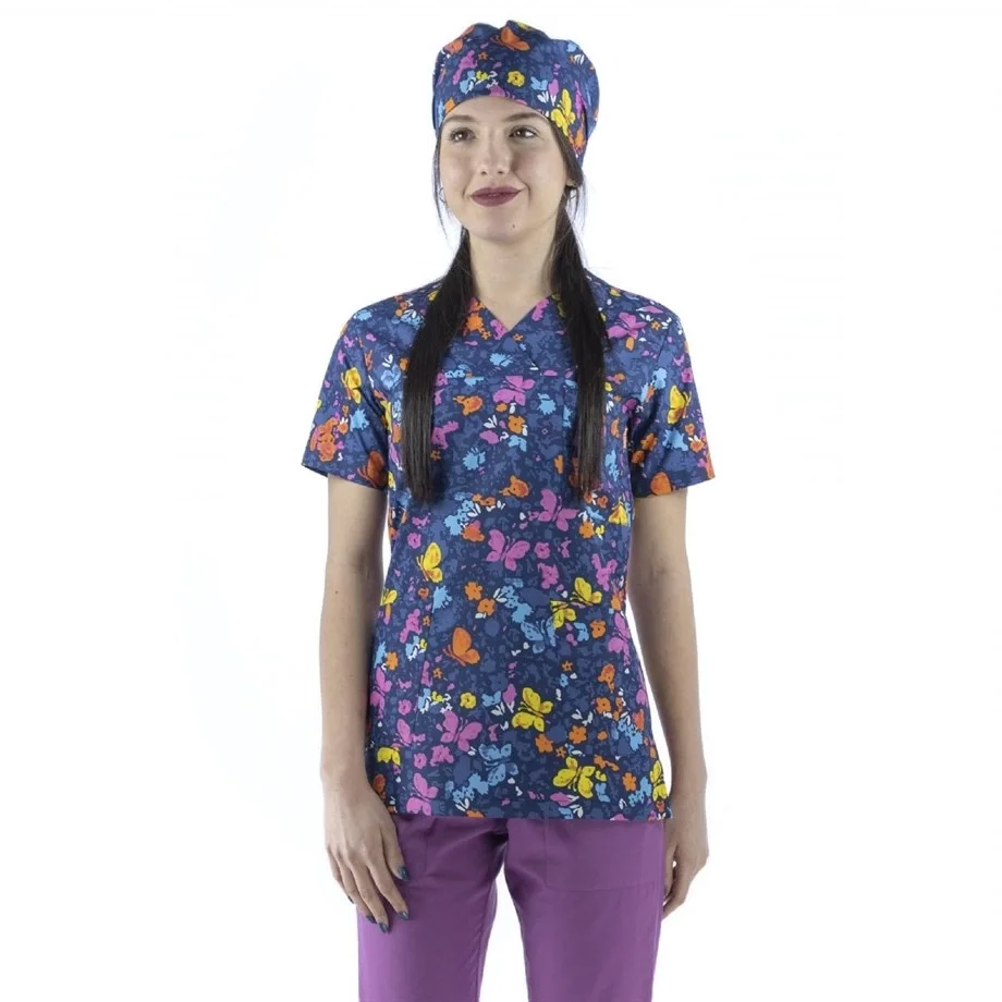 Desenli Tek Üst Scrubs Forma