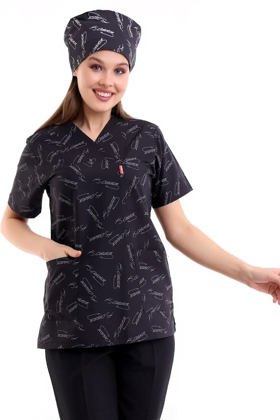 Desenli Tek Üst Scrubs Forma