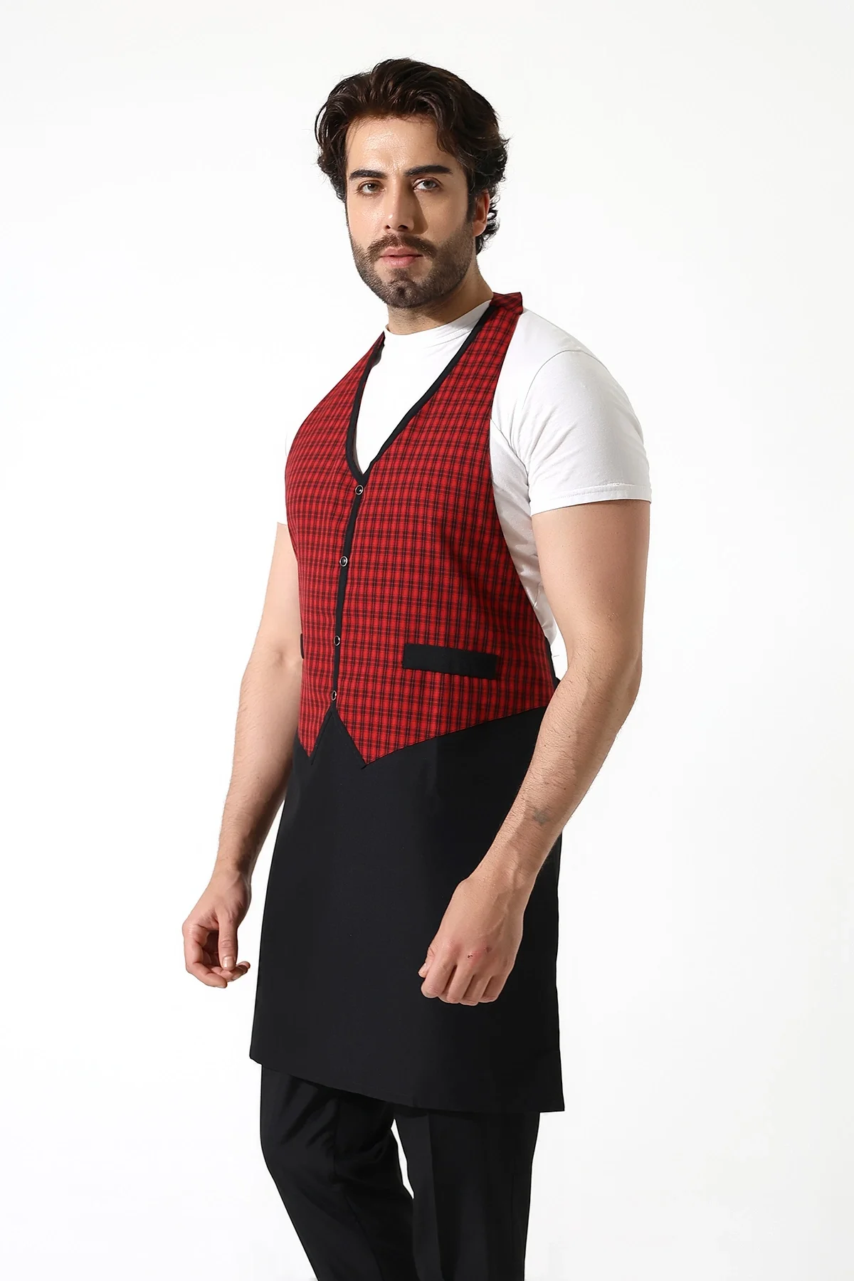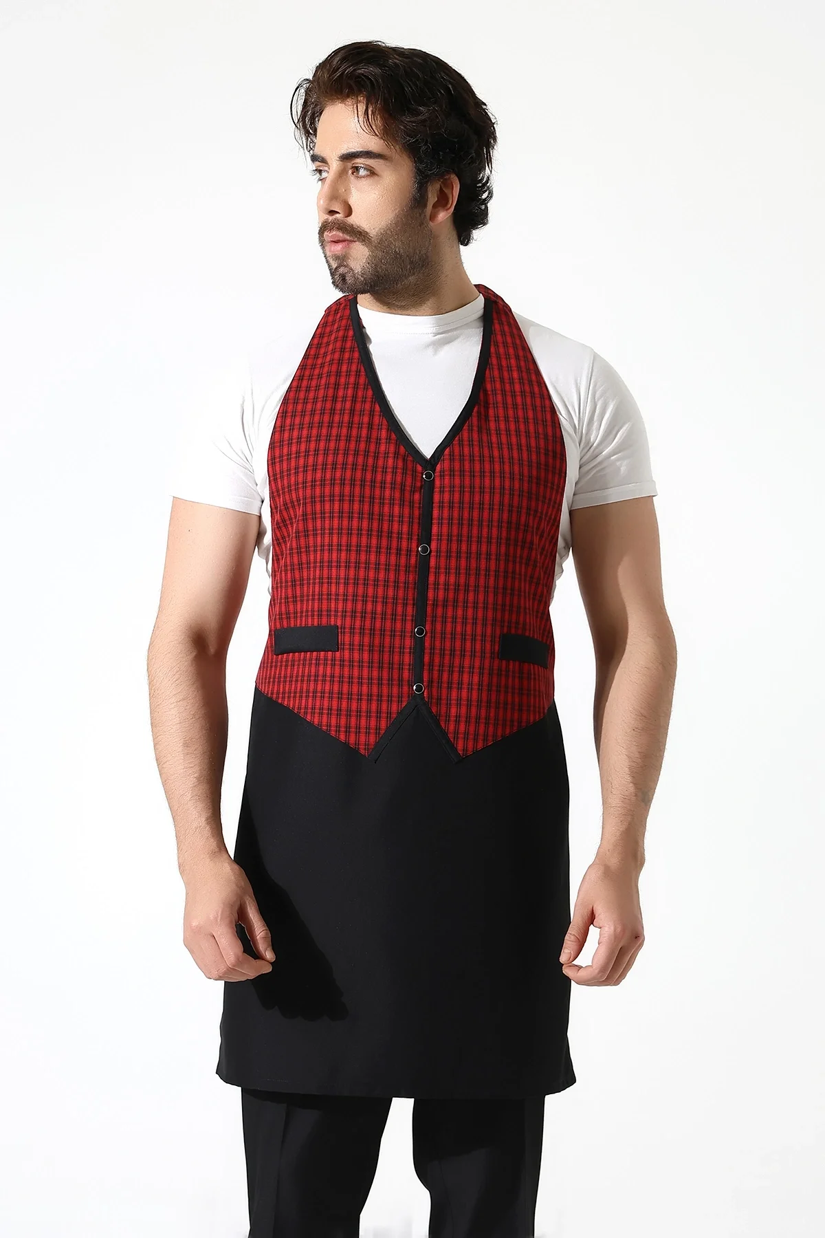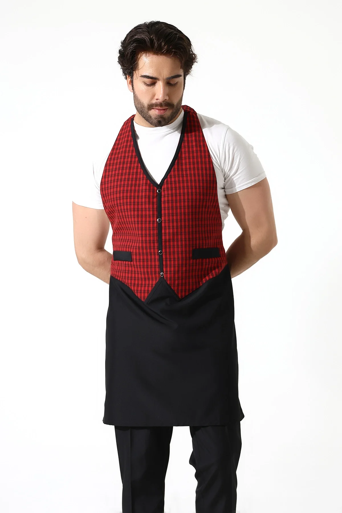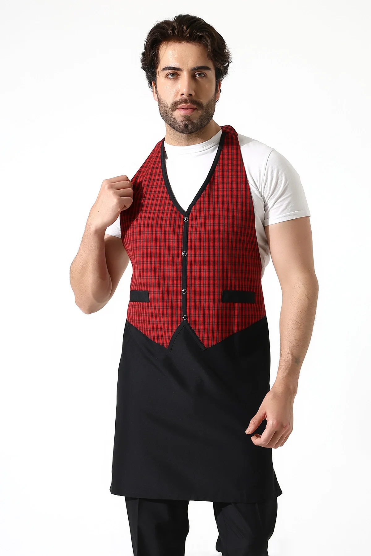 Askılı Yelekli Önlük - 403 Kazayağı Kırmızı-Siyah