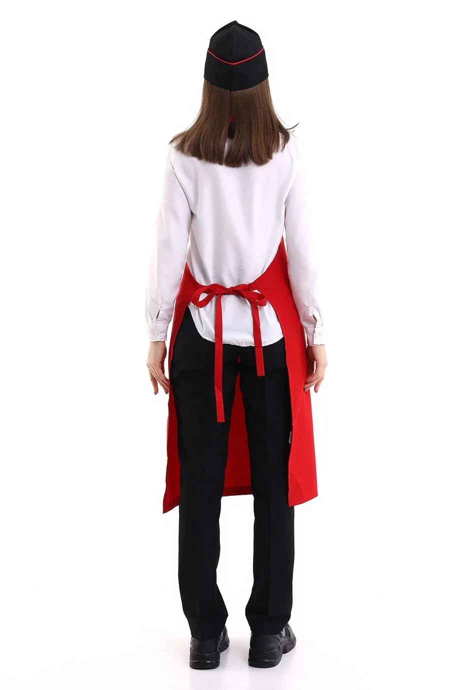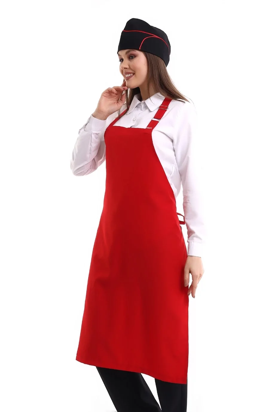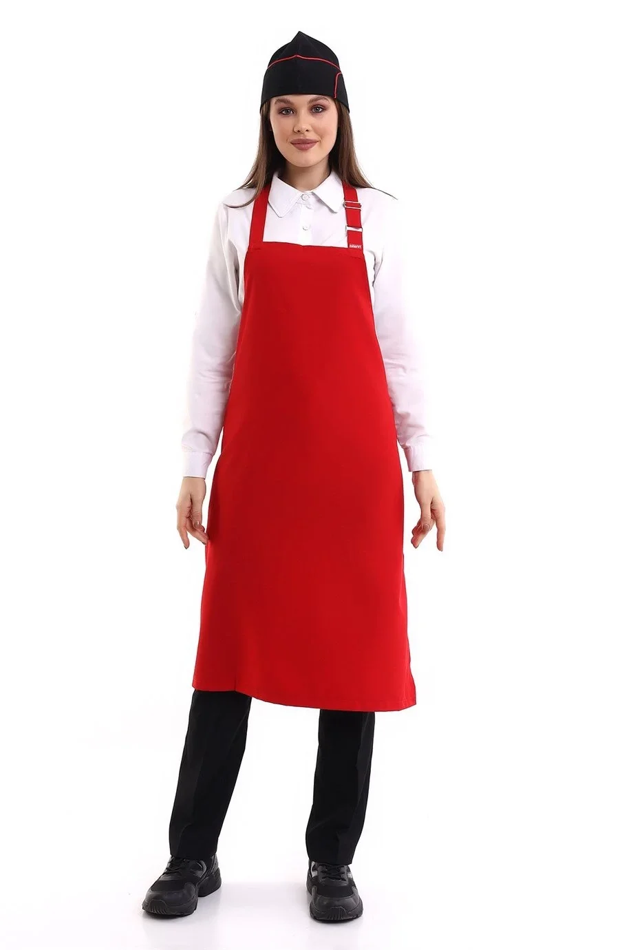 Barista Askılı Önlük Çift Cepli Deri Kemerli Bordo