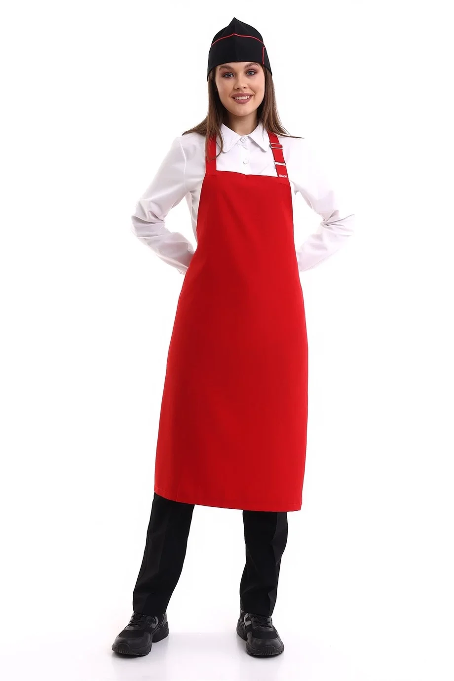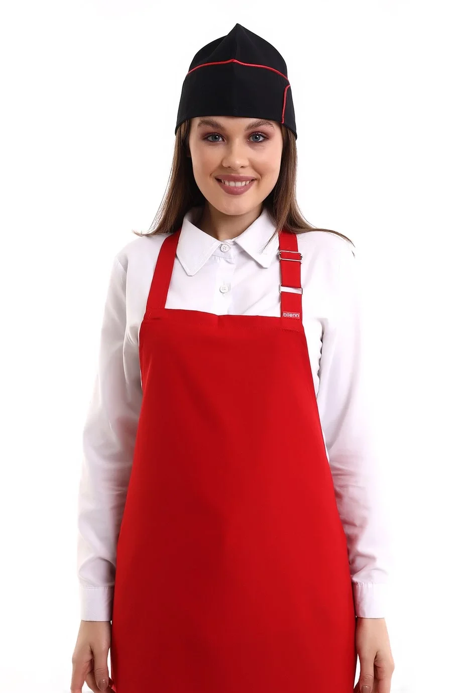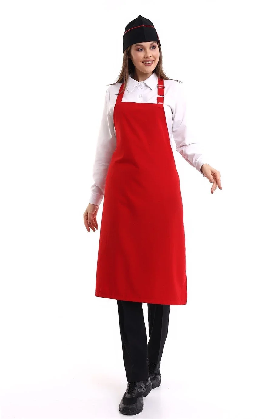 Barista Askılı Önlük Çift Cepli Deri Kemerli Bordo