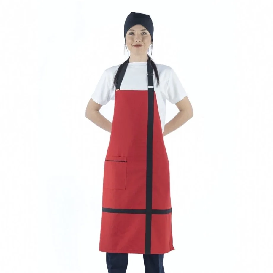 Barista Askılı Önlük Tek Cepli Deri Kemerli - Bordo